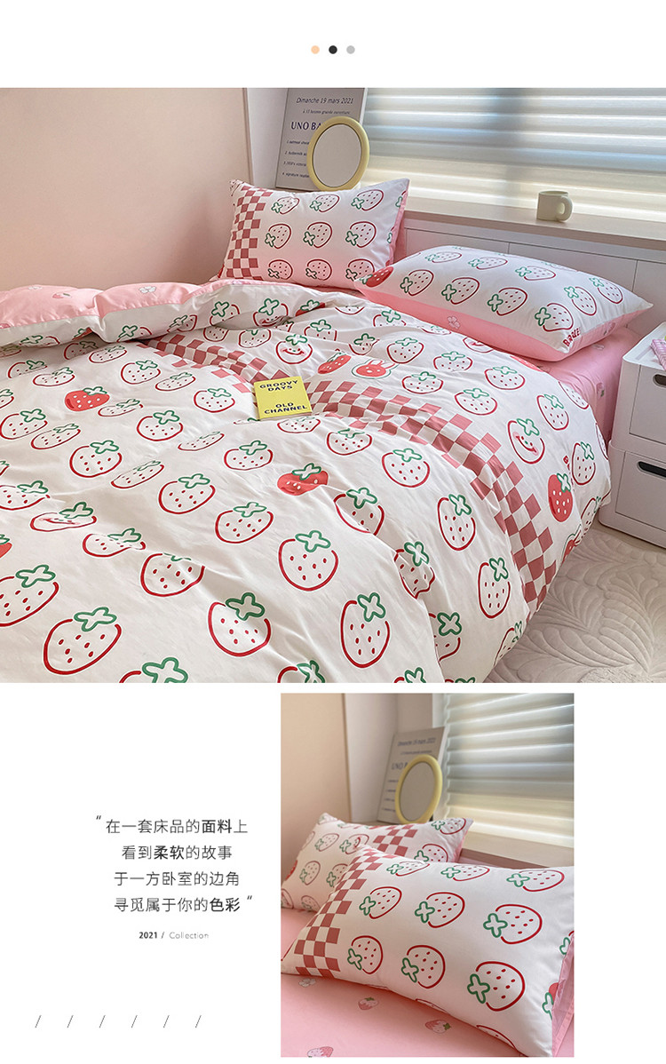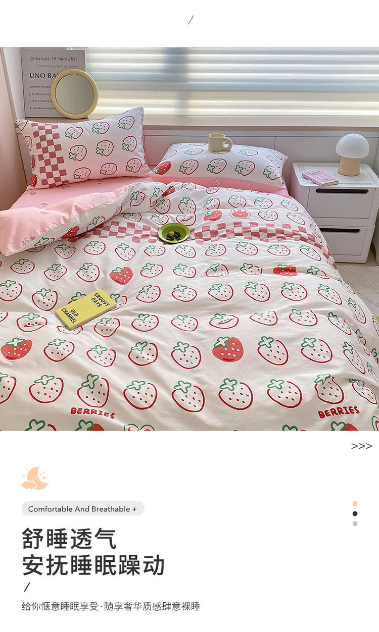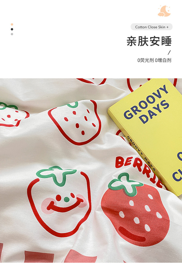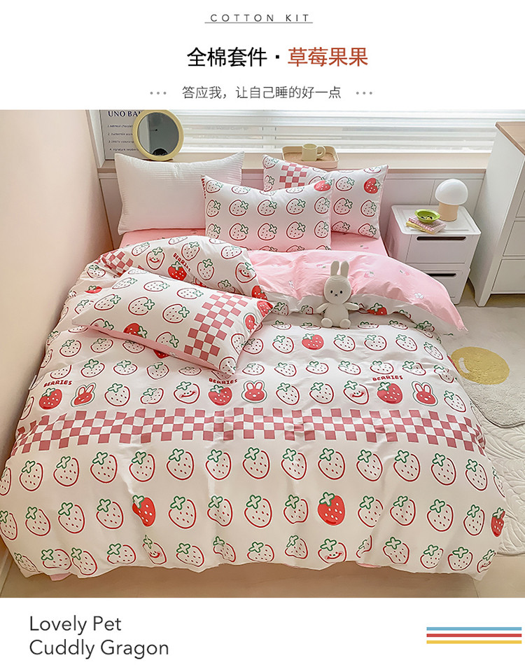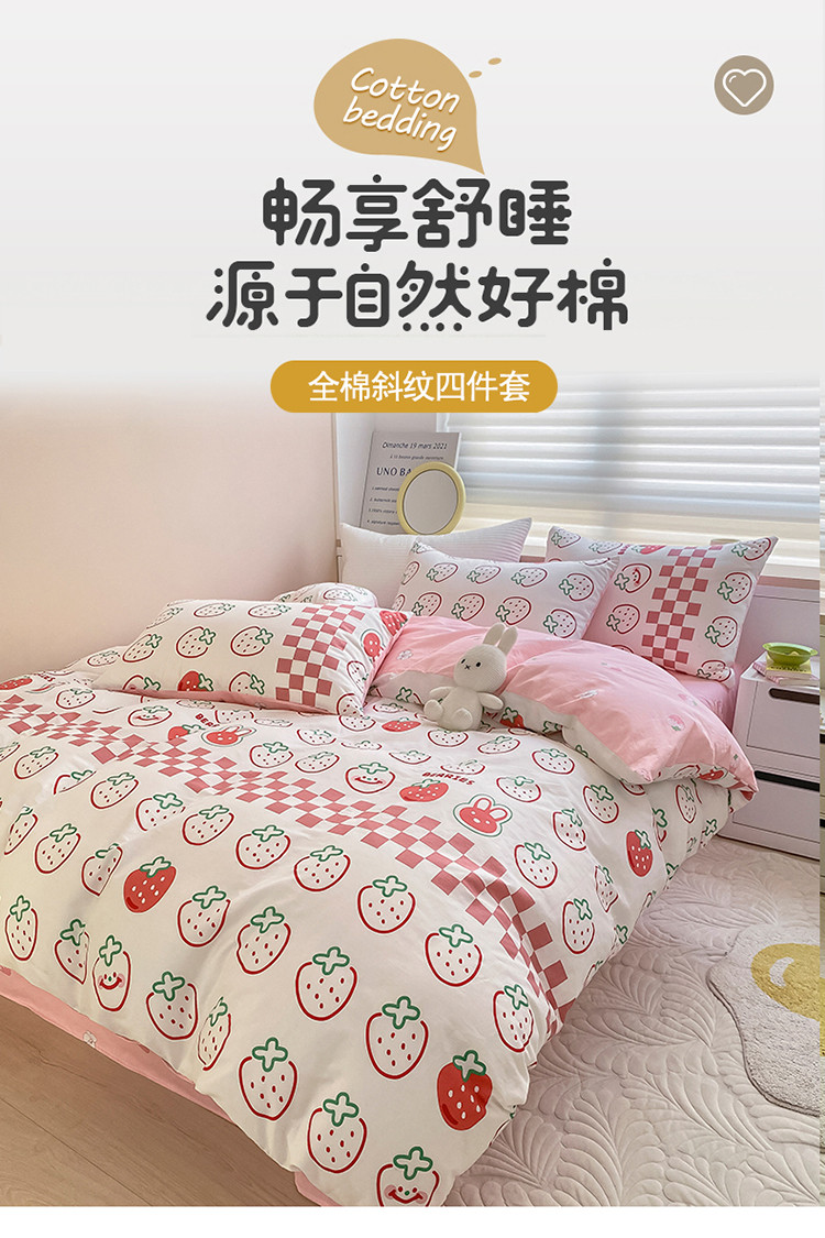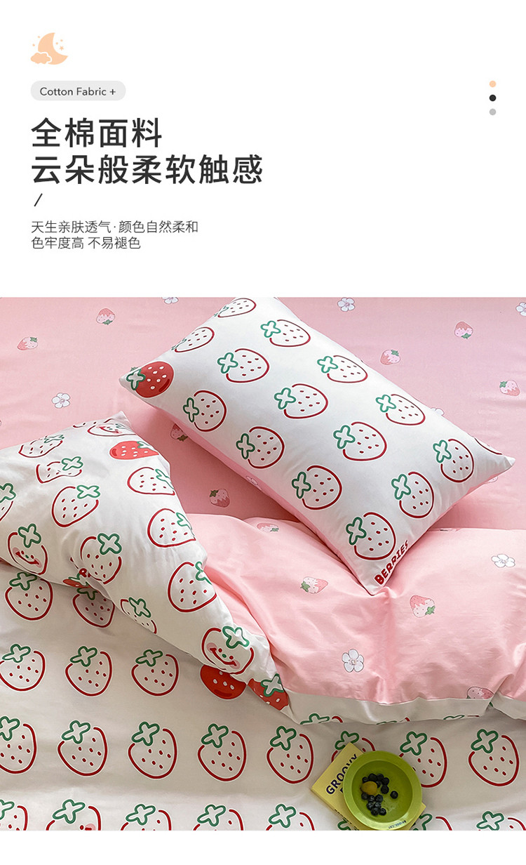 当前位置: 91家纺网 > 商品网购 > 床品套件 > 四件套 > 全棉普通四件套 > 麦伦家居 2022新款小清新卡通系列全棉斜纹四件套 草莓果果