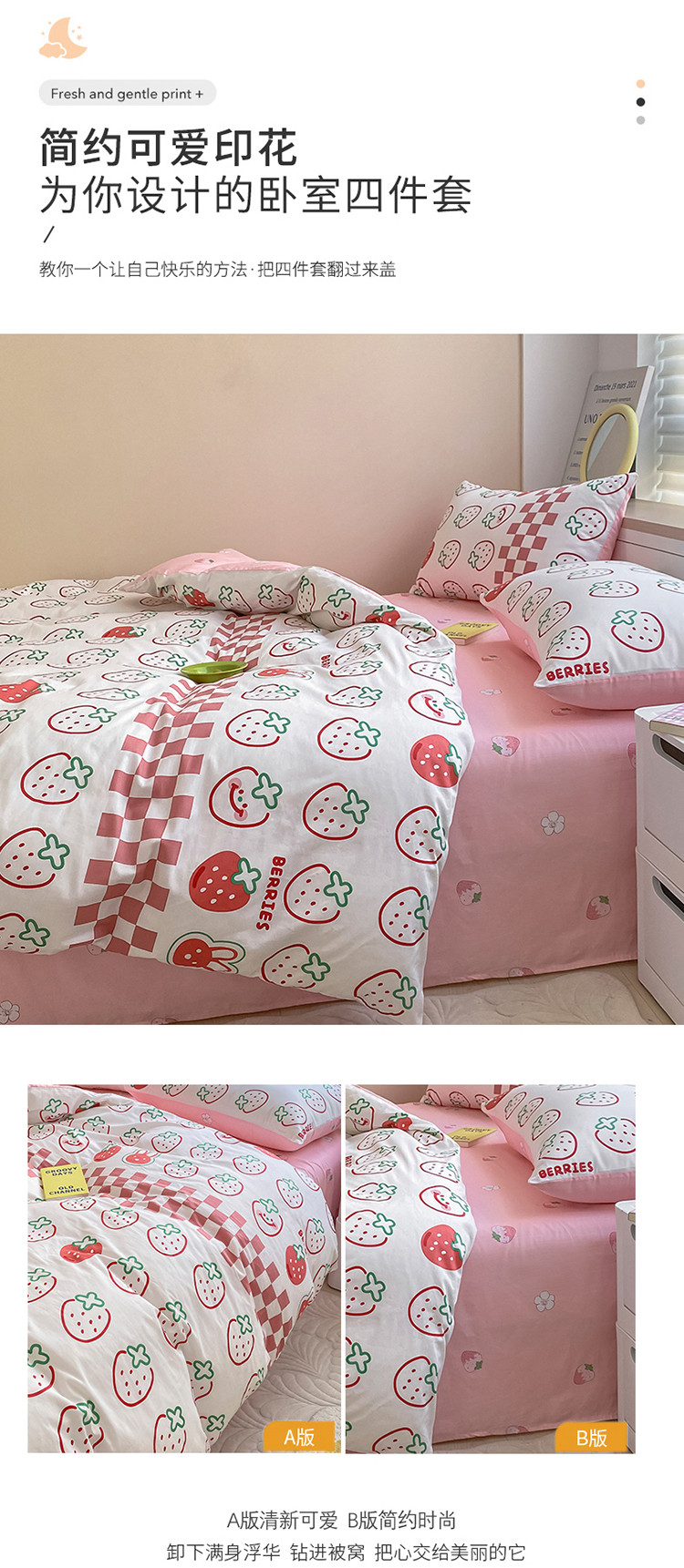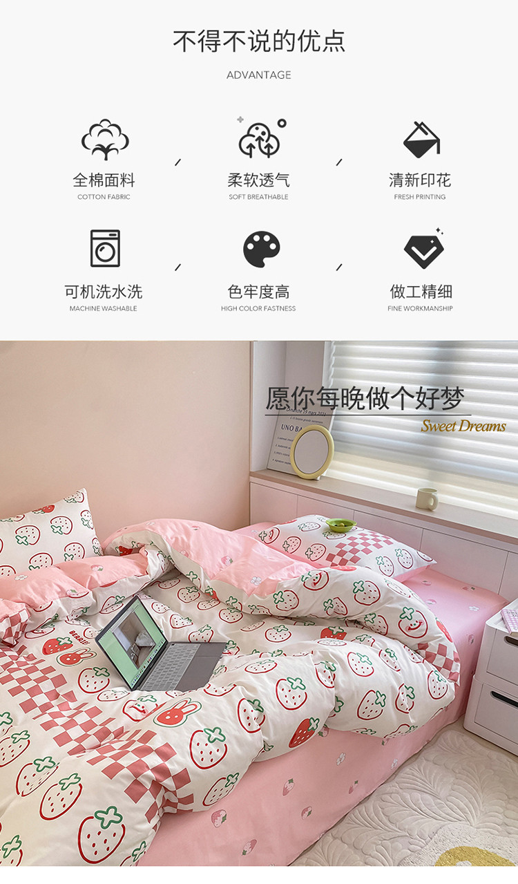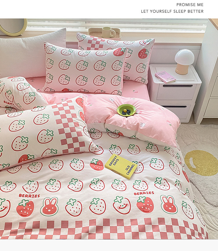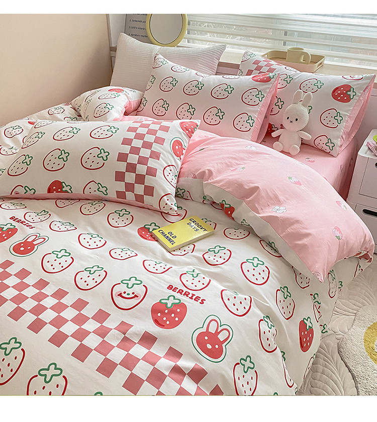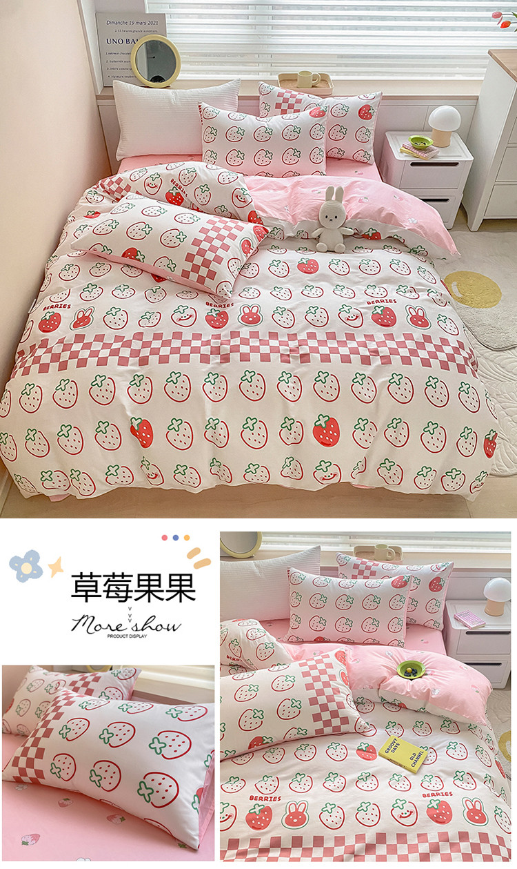 当前位置: 91家纺网 > 商品网购 > 床品套件 > 四件套 > 全棉普通四件套 > 麦伦家居 2022新款小清新卡通系列全棉斜纹四件套 草莓果果