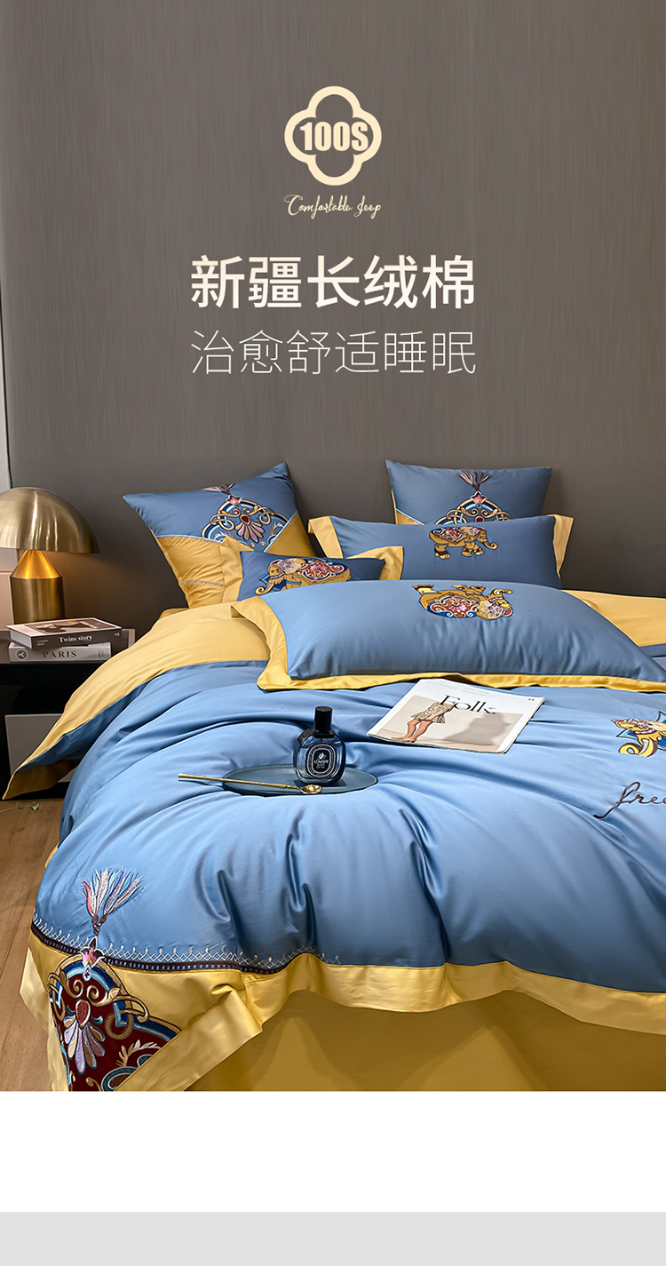 总 铭动2023高端纯棉100支刺绣长绒棉轻奢四件套欧式纯棉