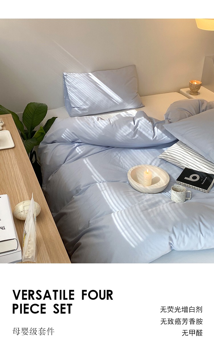 北欧风ins纯棉水洗棉床四件套全棉简约被套床单上三件套床笠