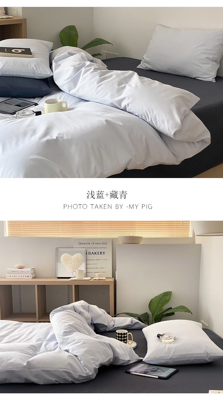 北欧风ins纯棉水洗棉床四件套全棉简约被套床单上三件套床笠,白色+藏青,藏青+浅蓝,鹅黄+螺旋藻绿,鹅黄+牛油果,螺旋藻绿+鹅黄,千夏紫+水貂灰,千夏紫+薇薇紫,薇薇紫+浅灰,浅蓝+鹅黄,浅蓝+白色,浅蓝+藏青