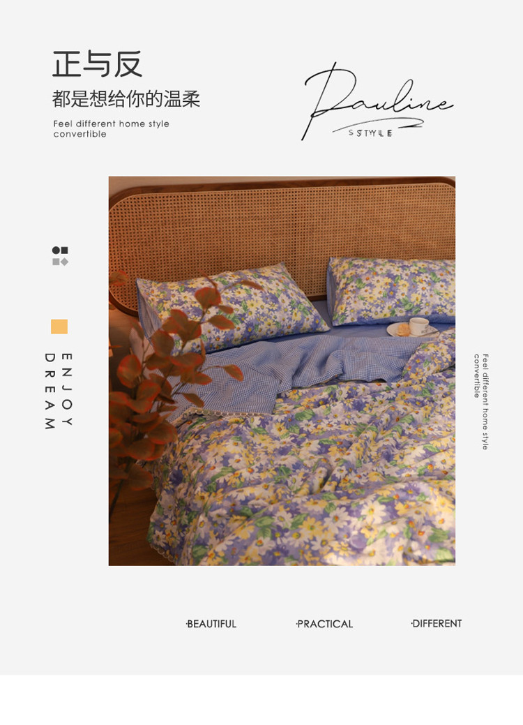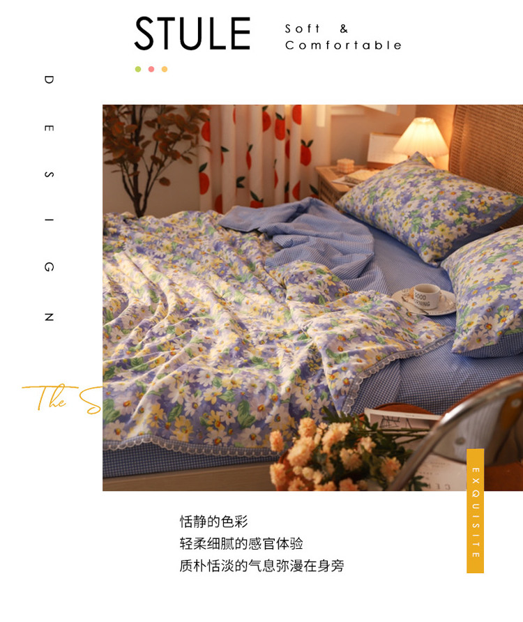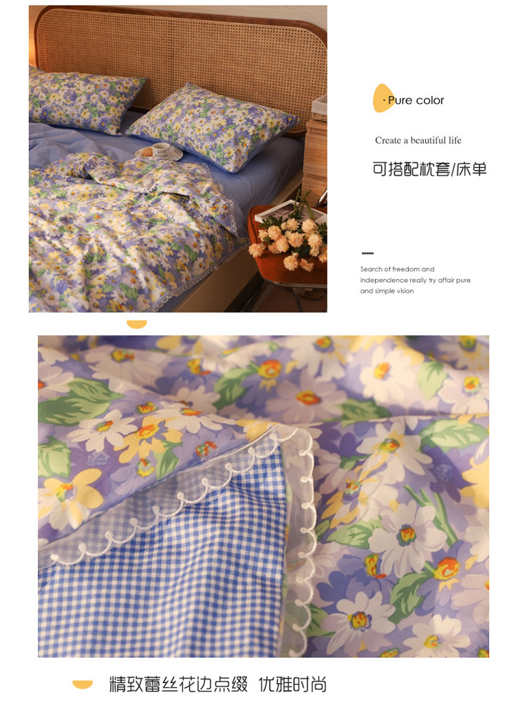• 91家纺网 家纺一手货源 找家纺 寐居 2022新款全棉13370夏被四件套 花海-蓝
