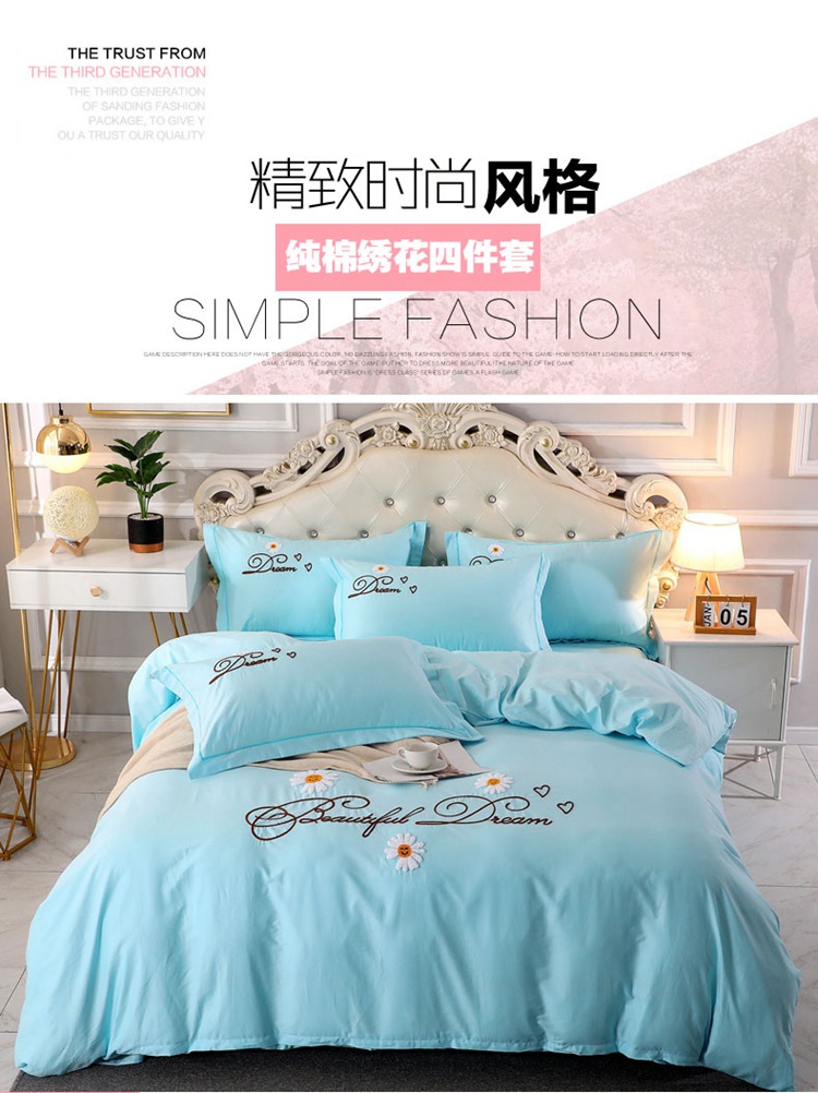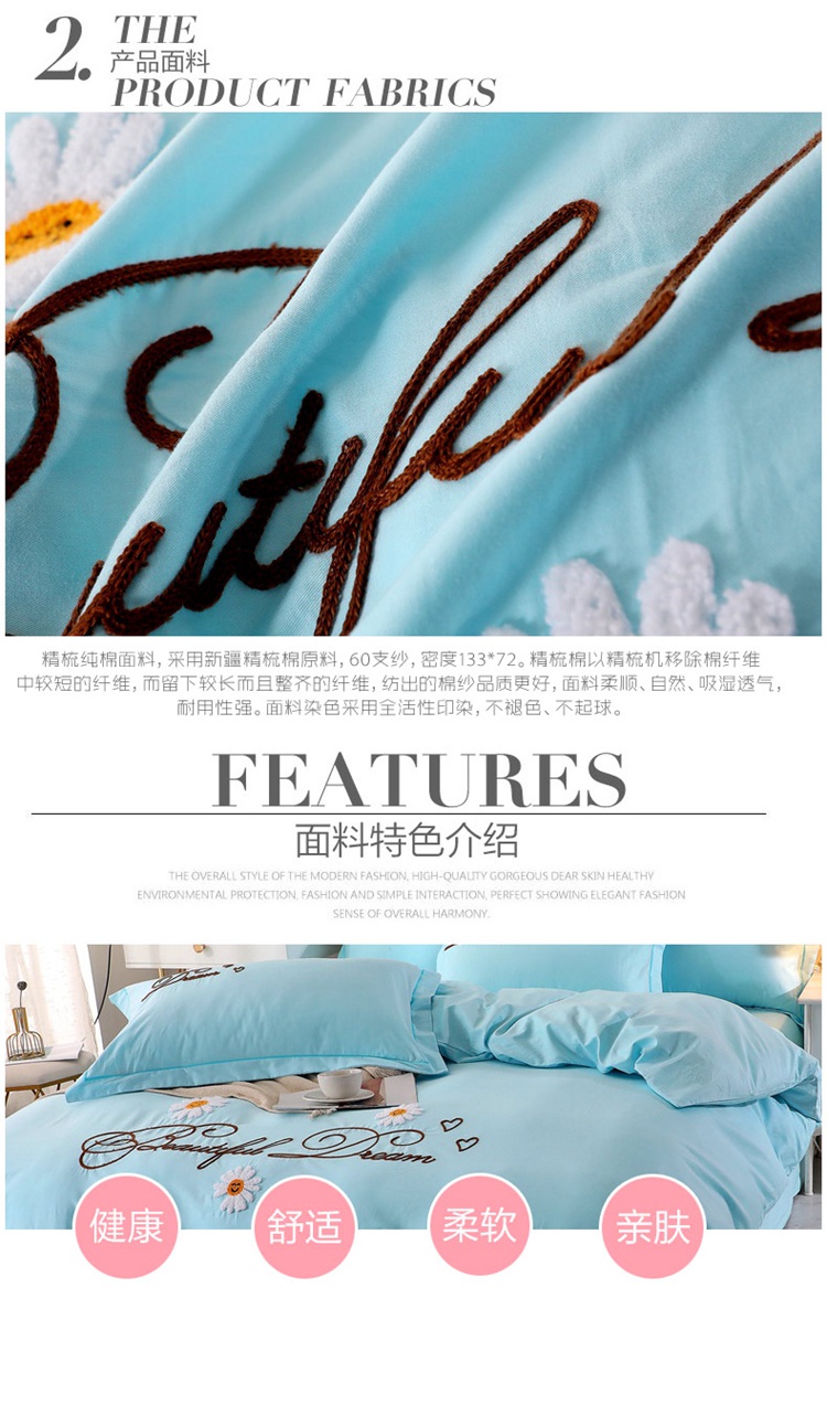 商品名称:2022晶缦雏菊全棉13372毛巾绣四件套 美梦雏菊-天蓝