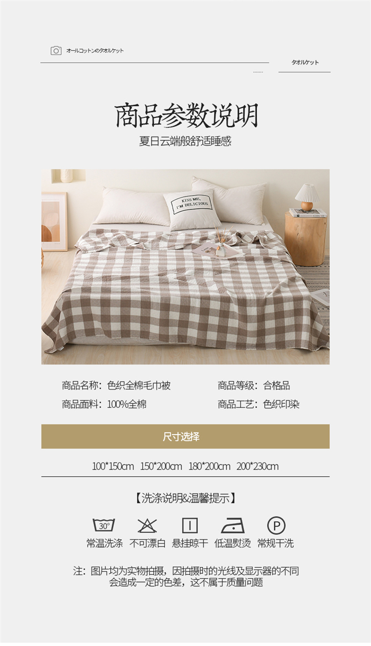 商品名称:雯雨 2022新款无印风纱布毛巾被夏被直播 素雅驼
