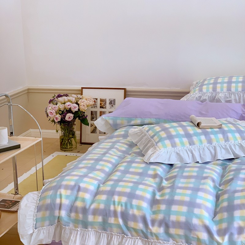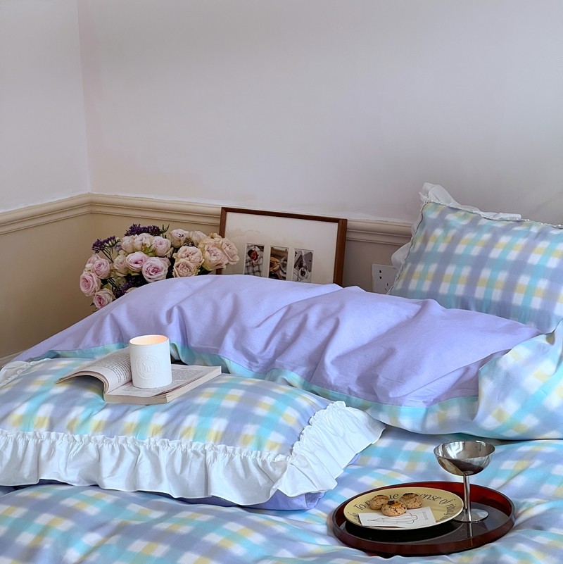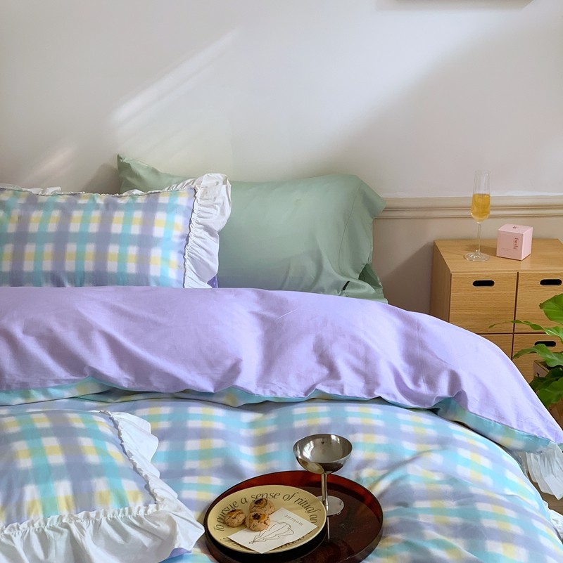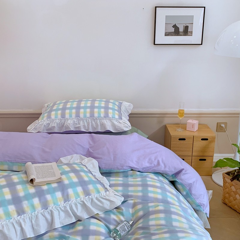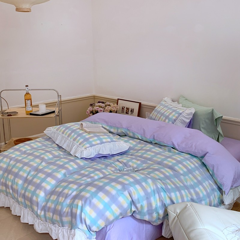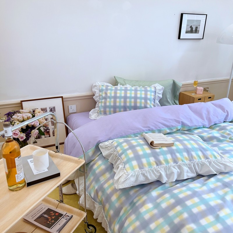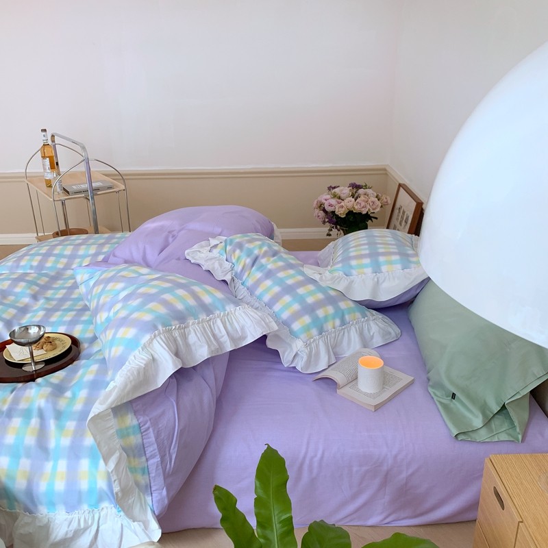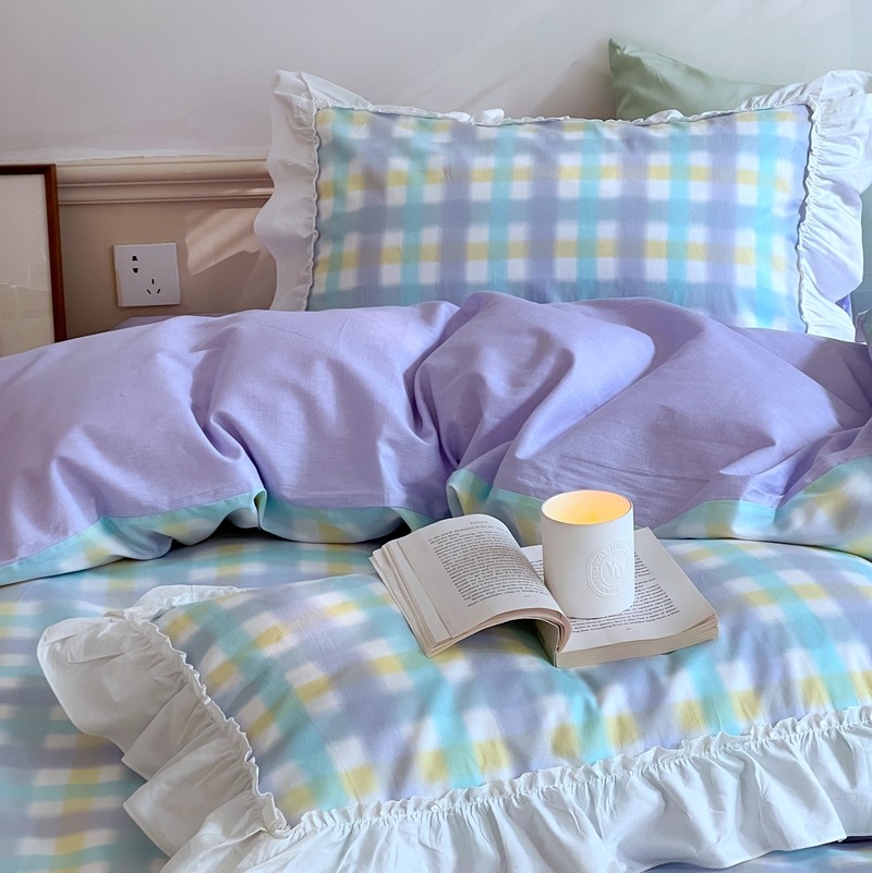 昔可2022新款花边格子系列四件套 罗马假日紫