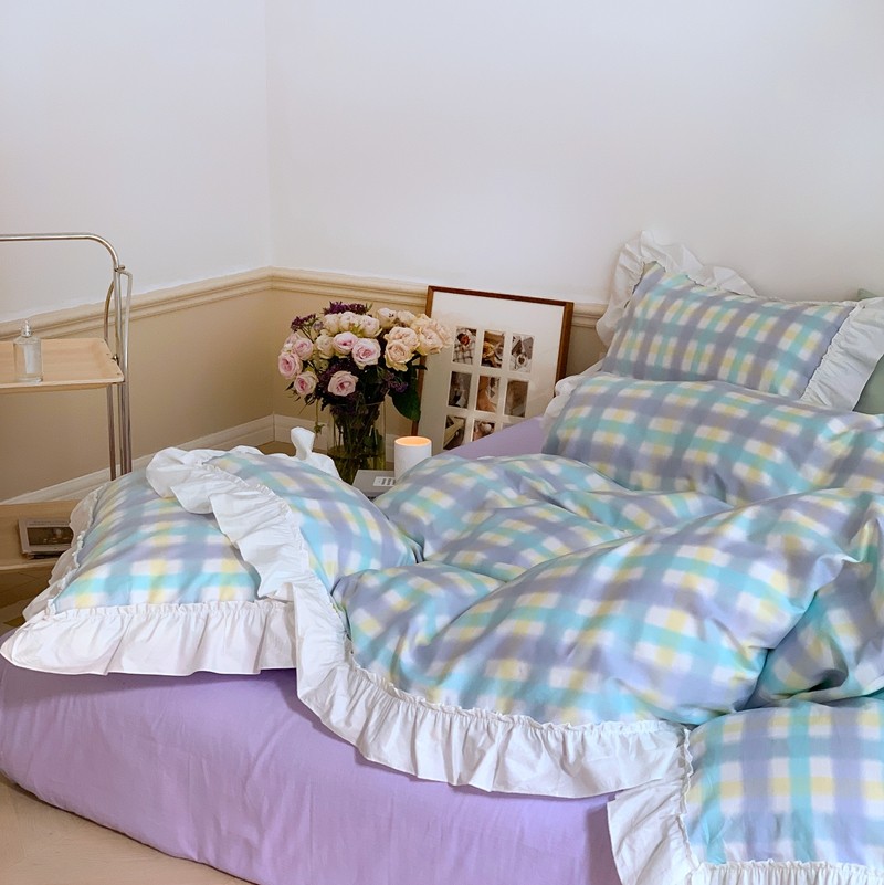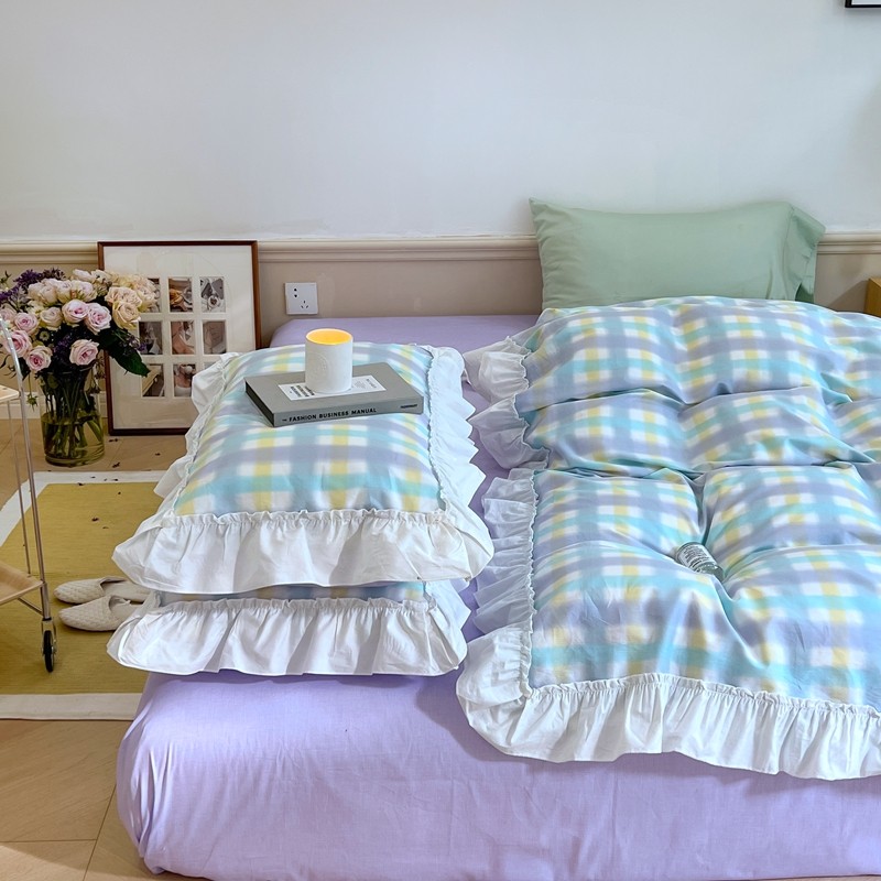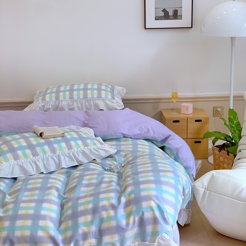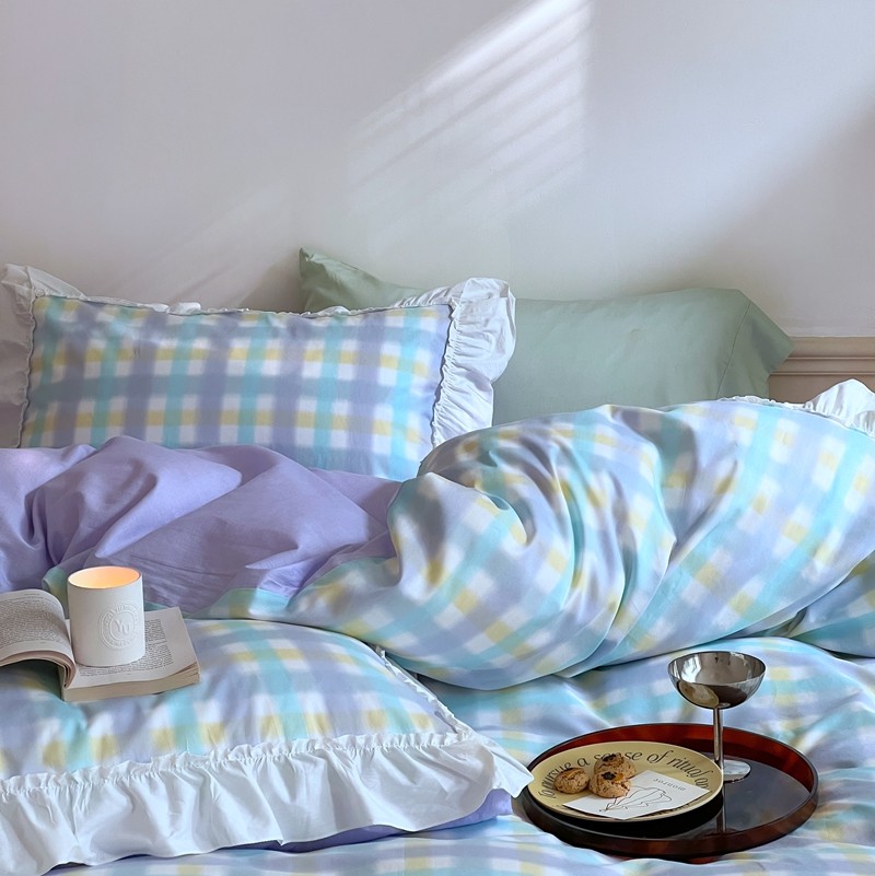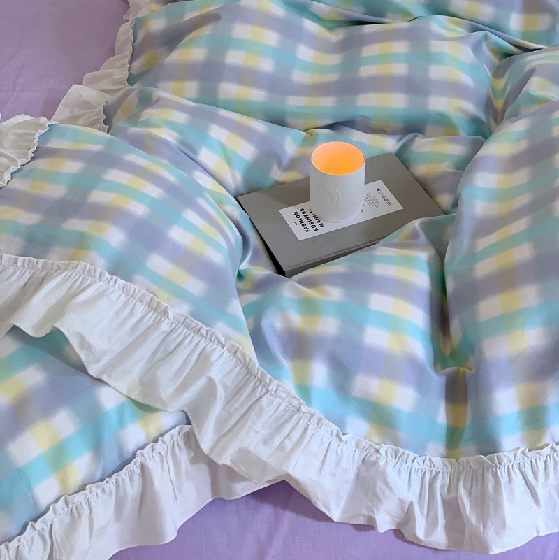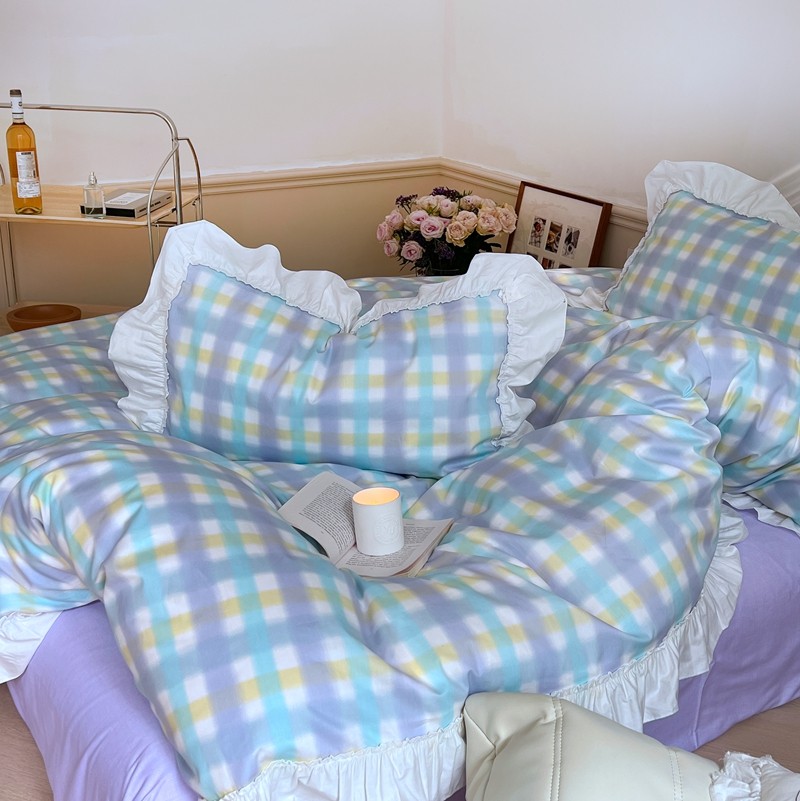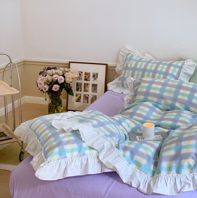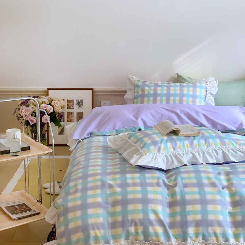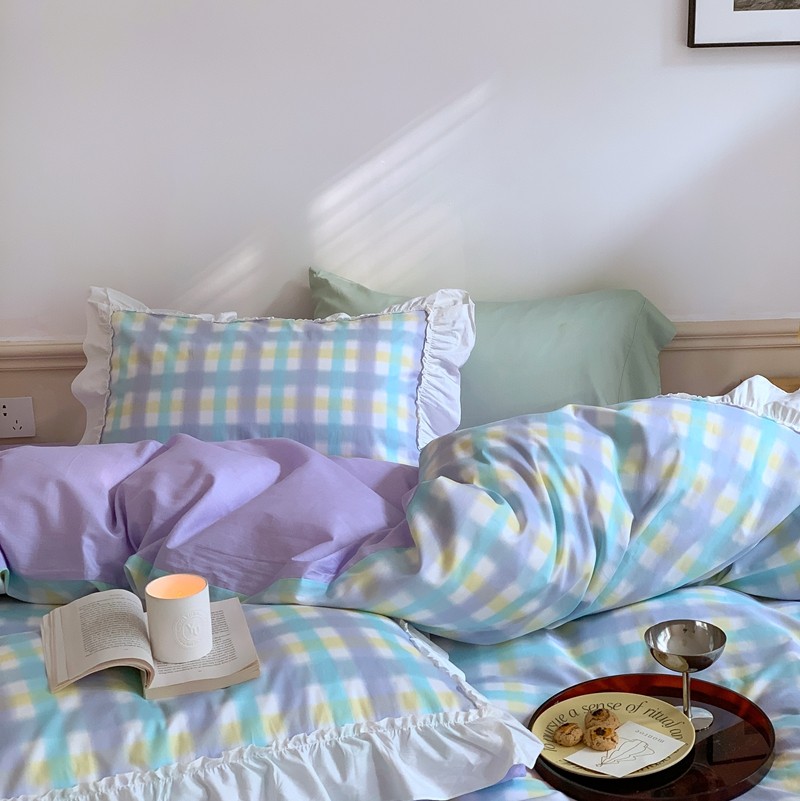 昔可2022新款花边格子系列四件套 罗马假日紫
