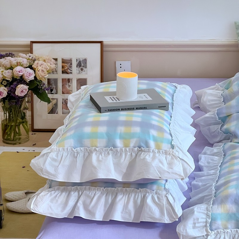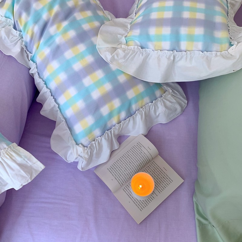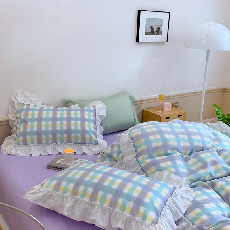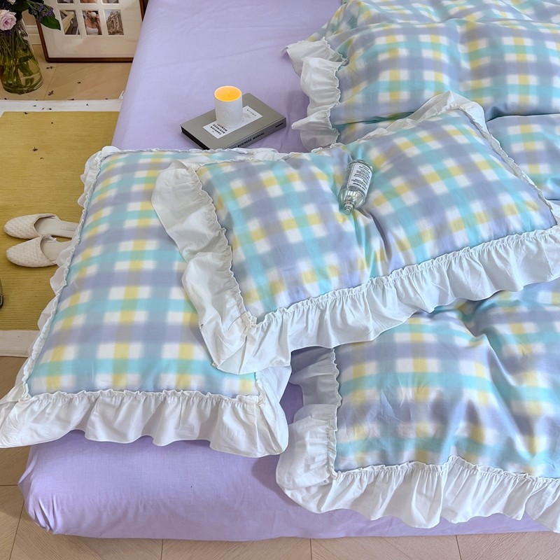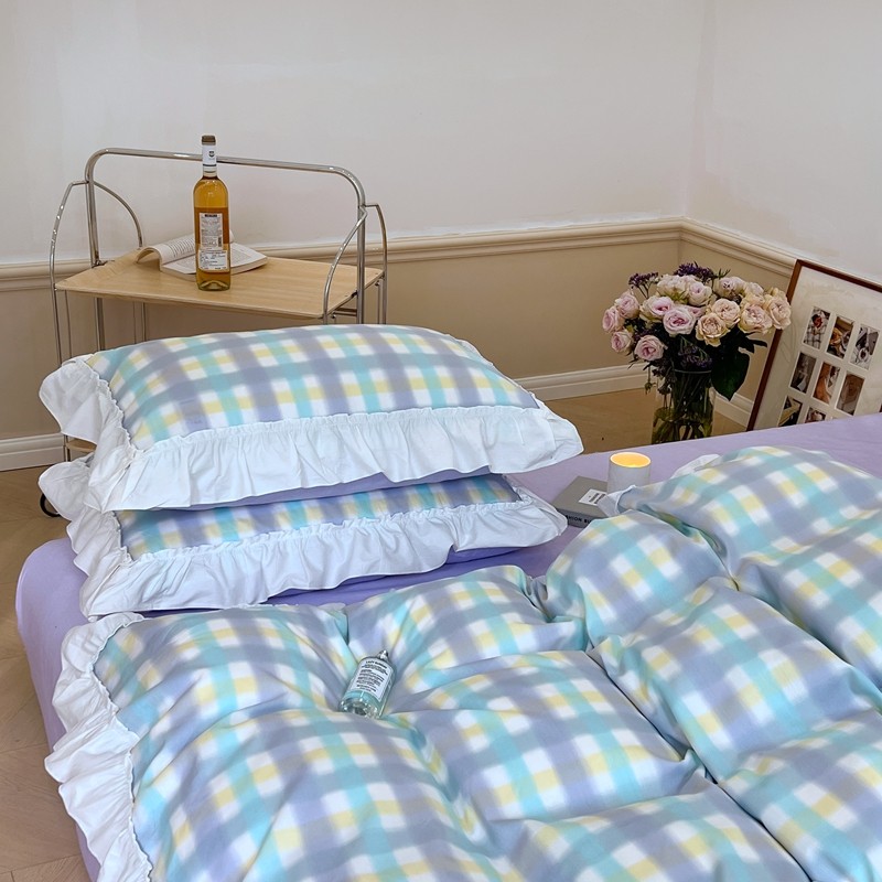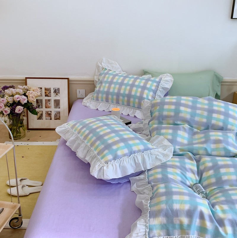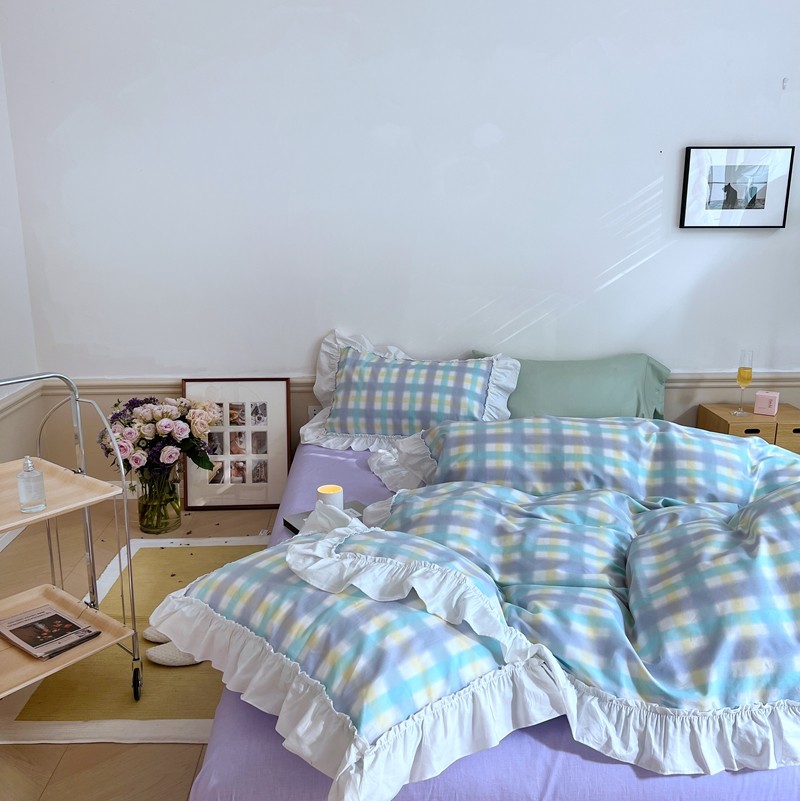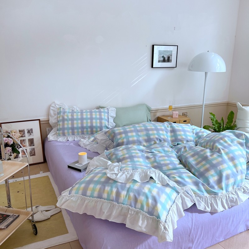 昔可2022新款花边格子系列四件套 罗马假日紫