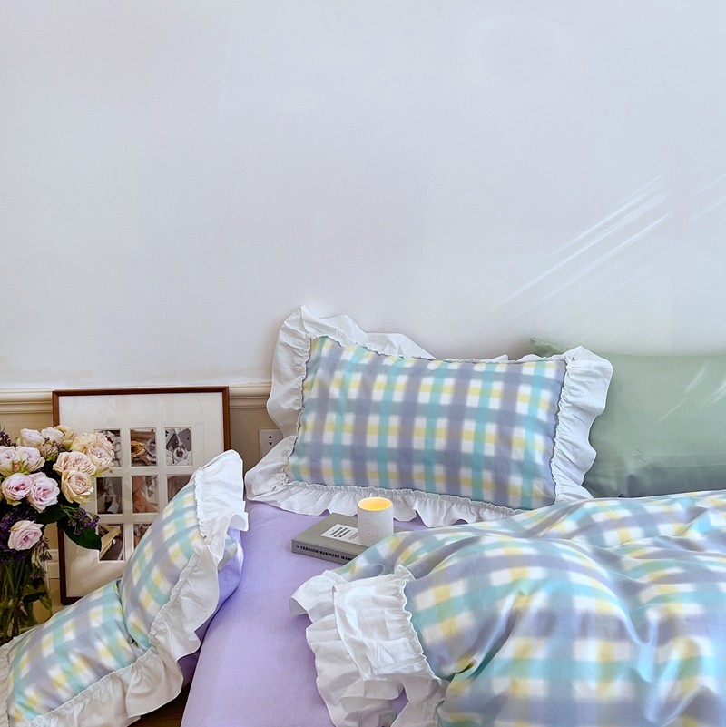 商品名称:昔可2022新款花边格子系列四件套 罗马假日紫
