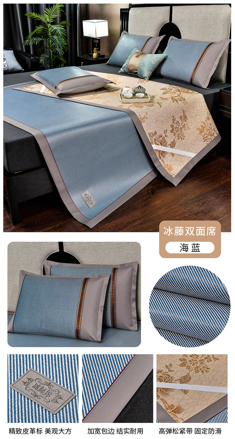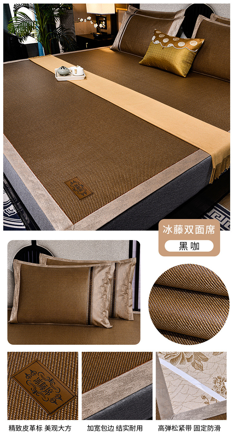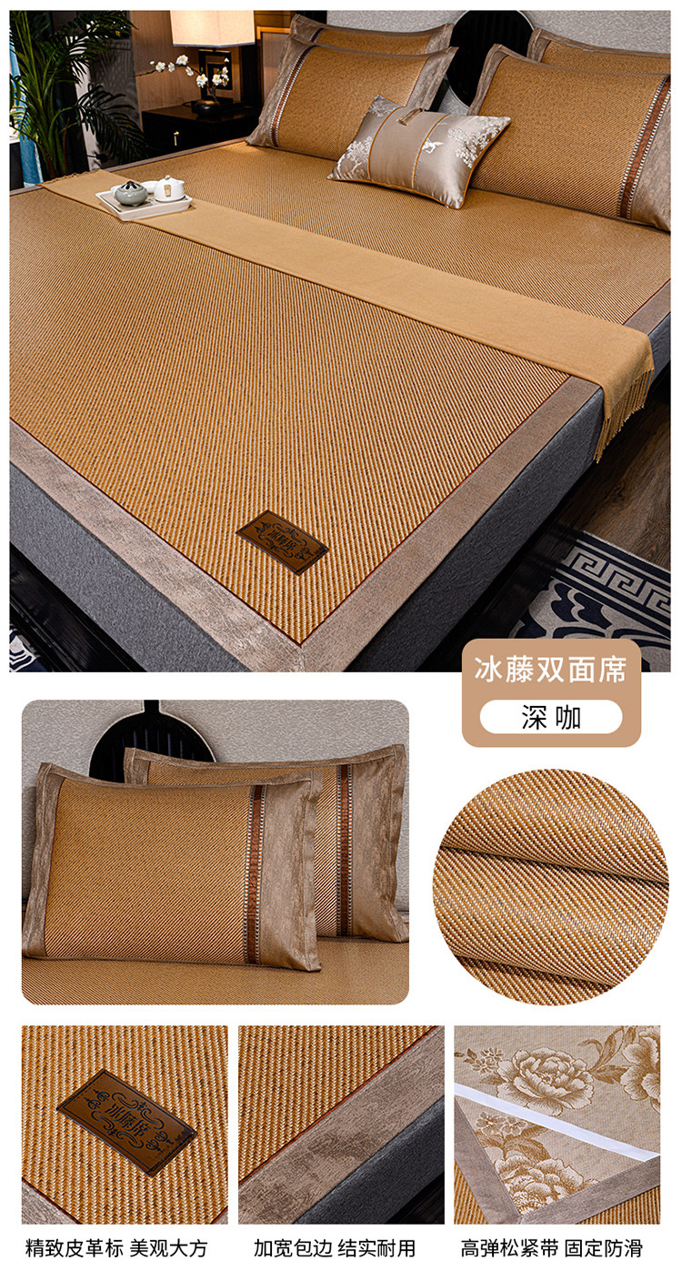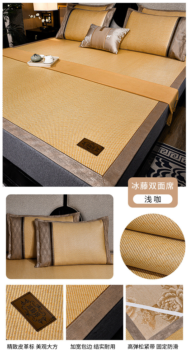 2023新款夏日冰点-冰藤双面席凉席藤席竹席冰丝席乳胶席,咖色,蓝色,绿色,香槟