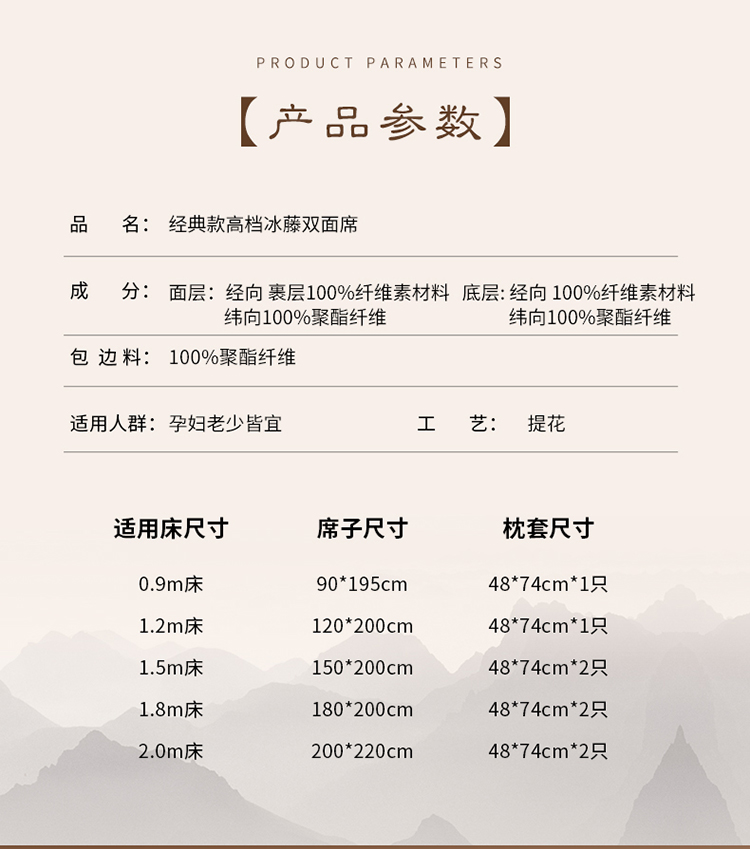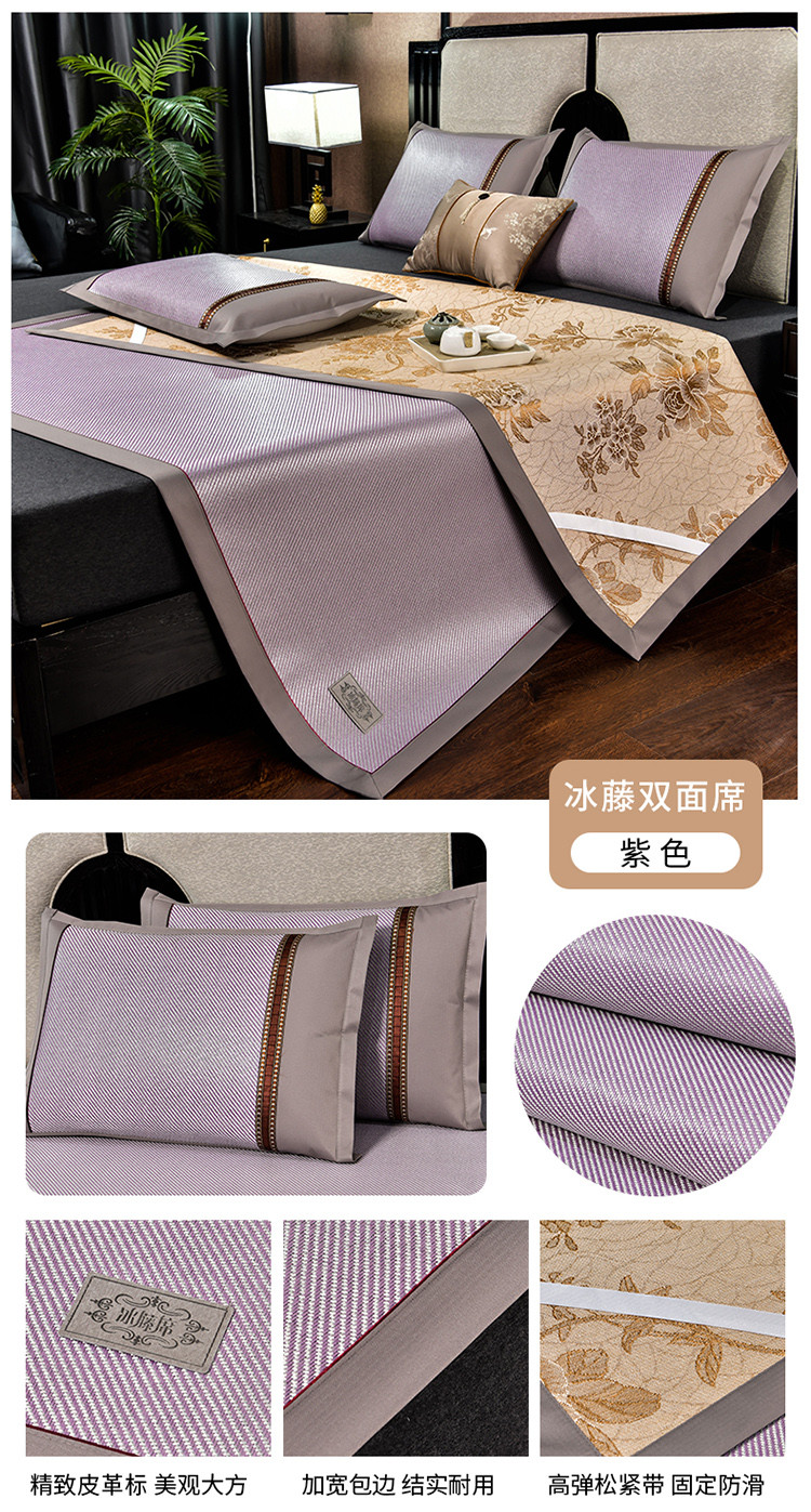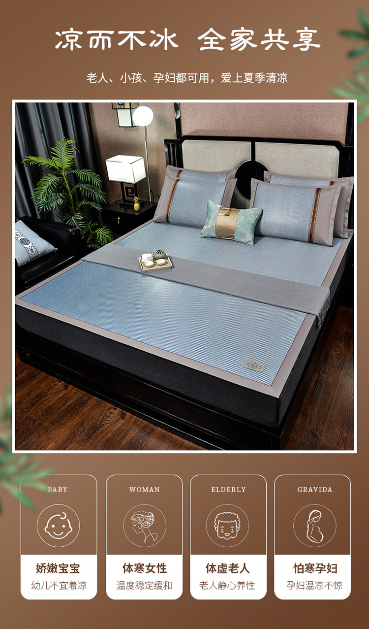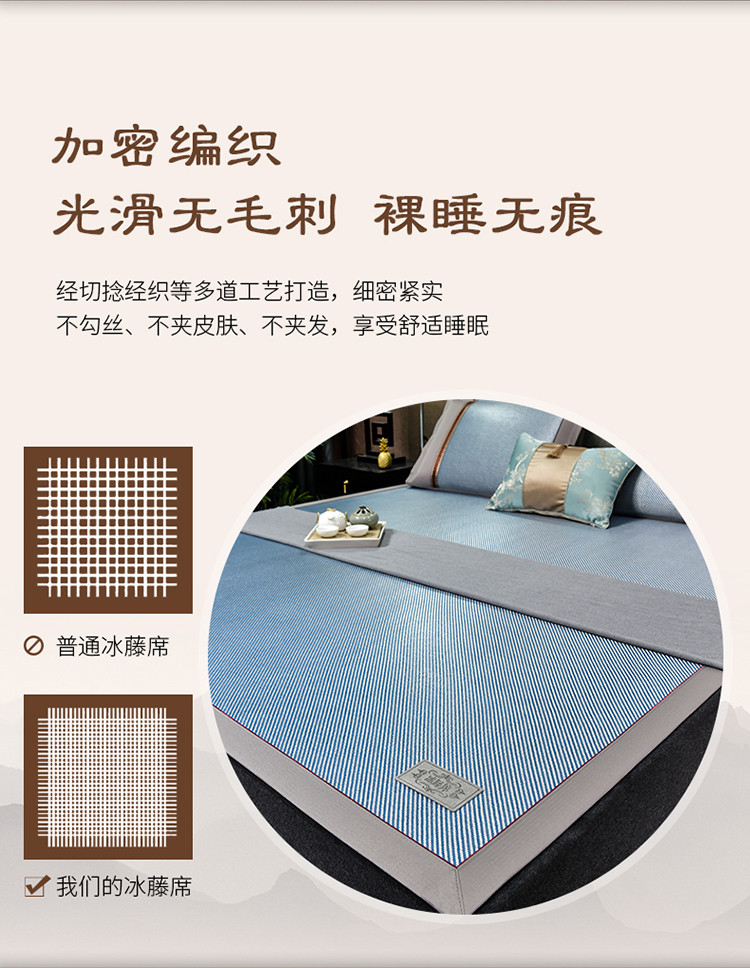 2023新款夏日冰点-冰藤双面席凉席藤席竹席冰丝席乳胶席,咖色,蓝色,绿色,香槟