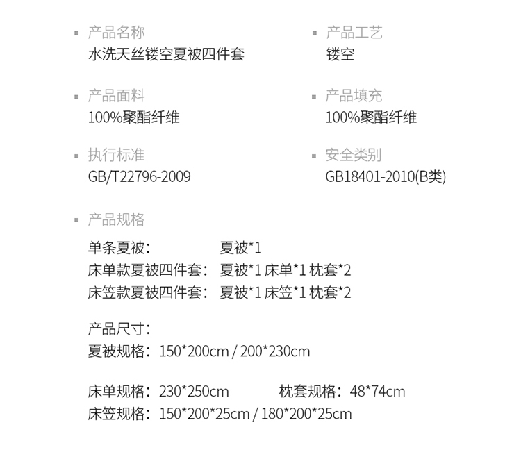 商品名称:(总) 2022新款 镂空水洗天丝夏被四件套