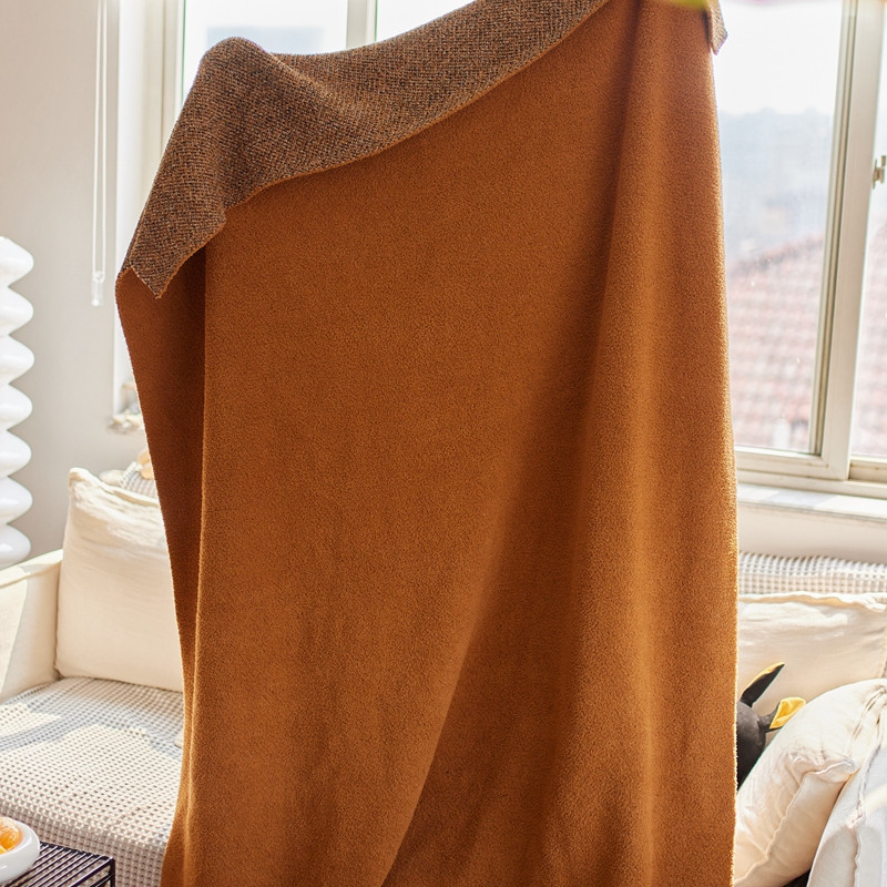安莱 2022新款设计师太阳花A类半边绒针织毯子午睡毯秋冬 苍苍