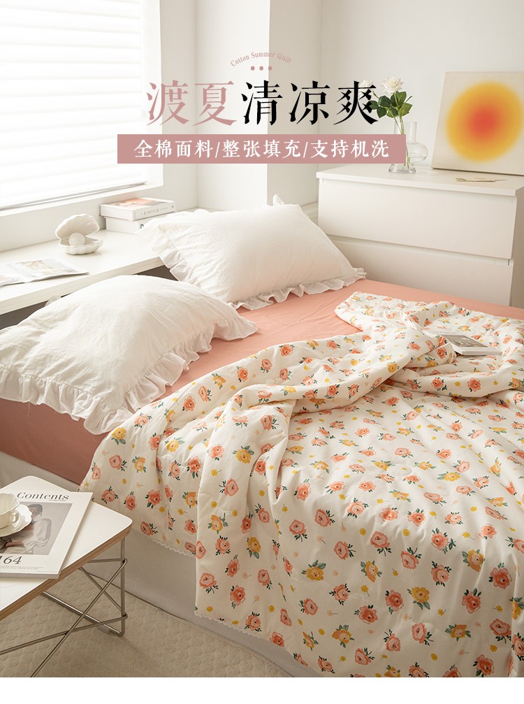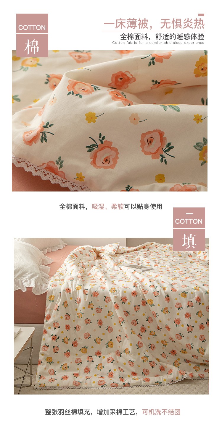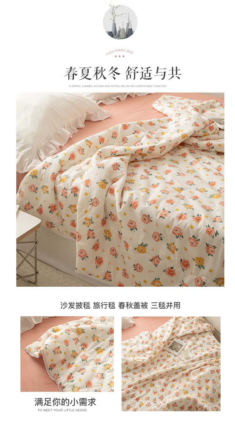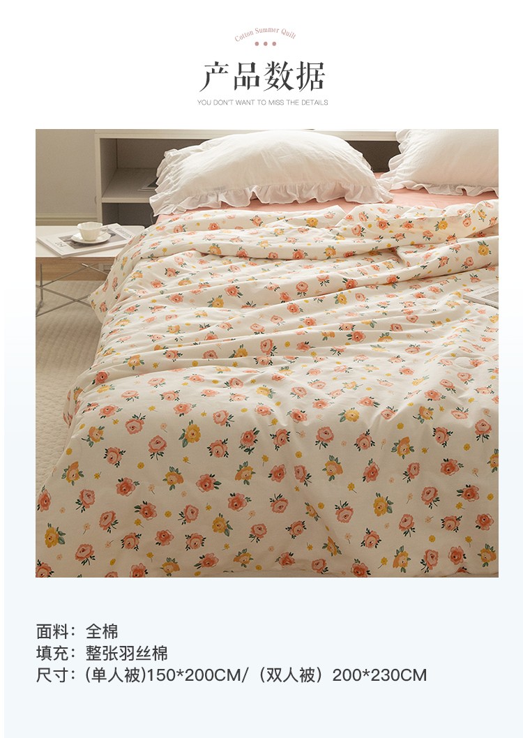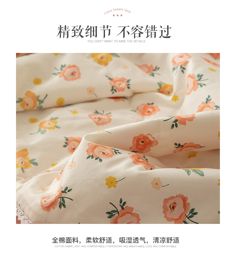 商品名称:绫韵 2022新款田园小碎花花边全棉空调被夏被 花香伴雨