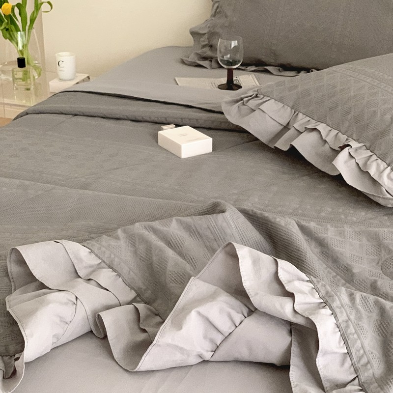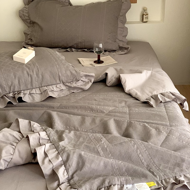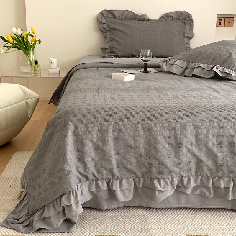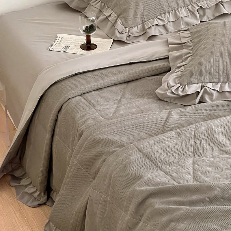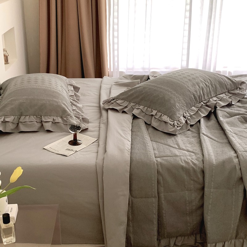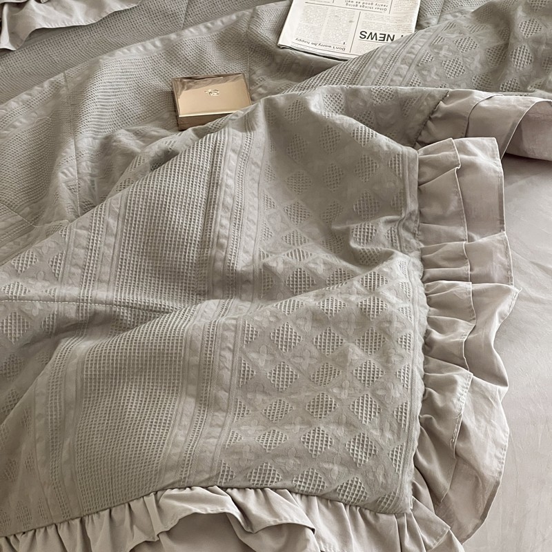 昔可 2022新款60支水洗棉华夫格夏被 四花格灰