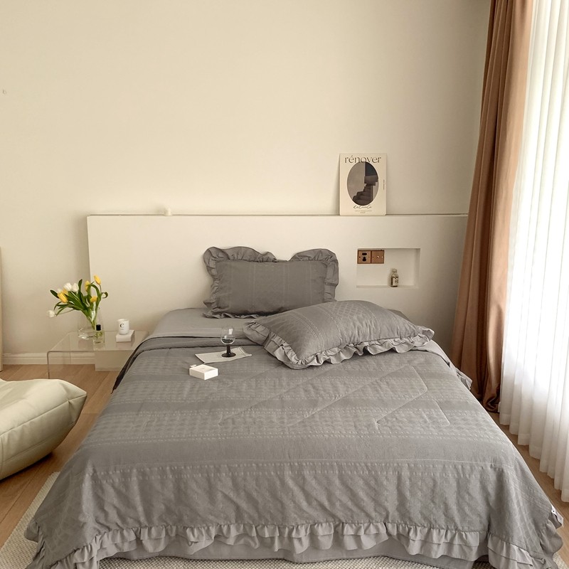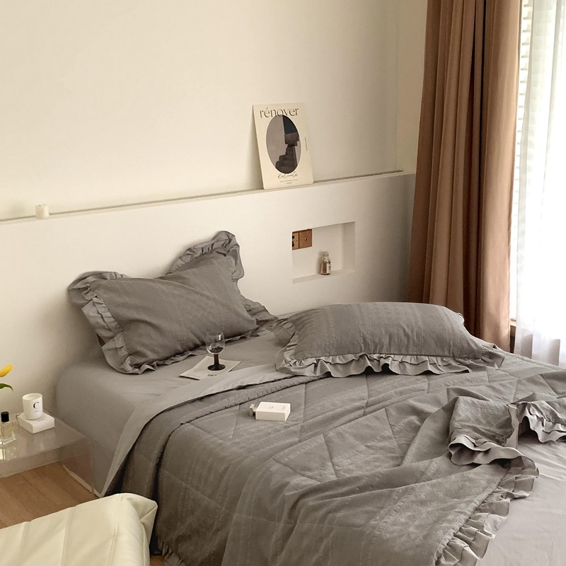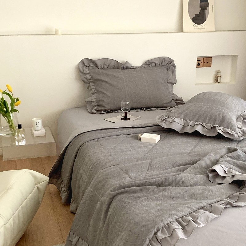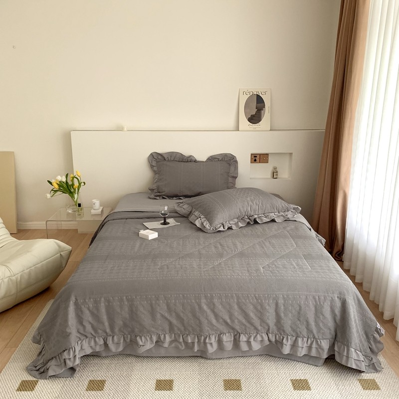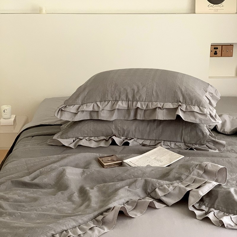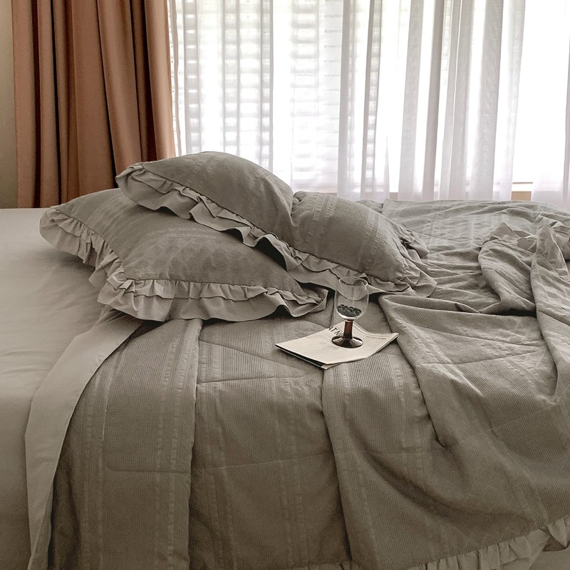 昔可 2022新款60支水洗棉华夫格夏被 四花格灰