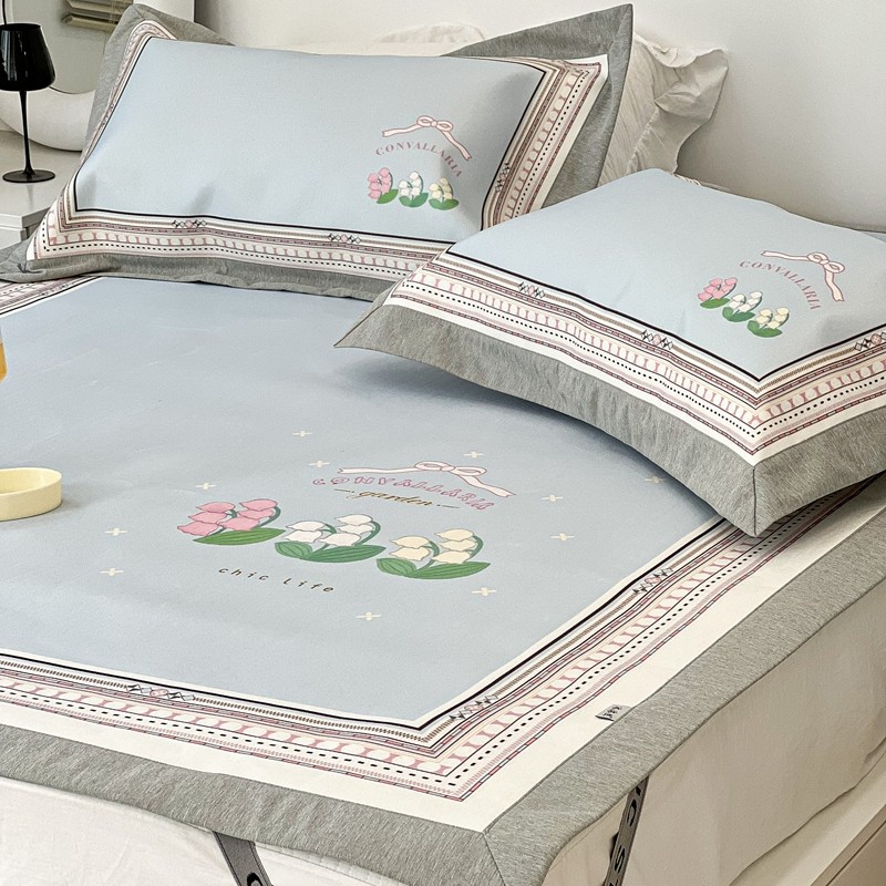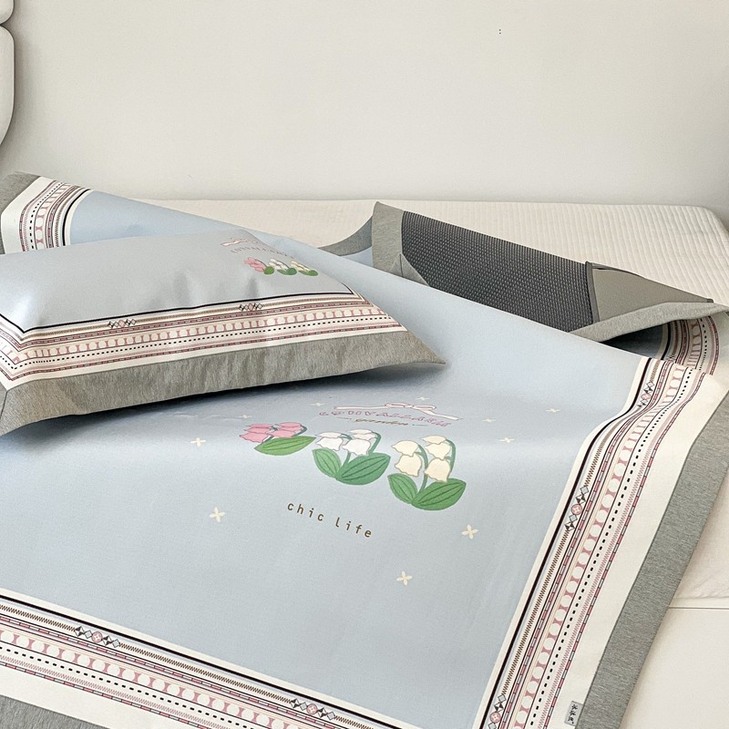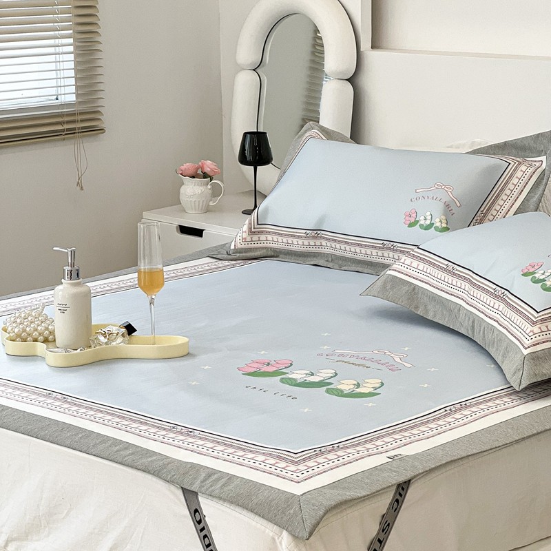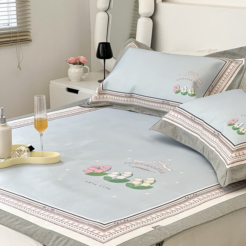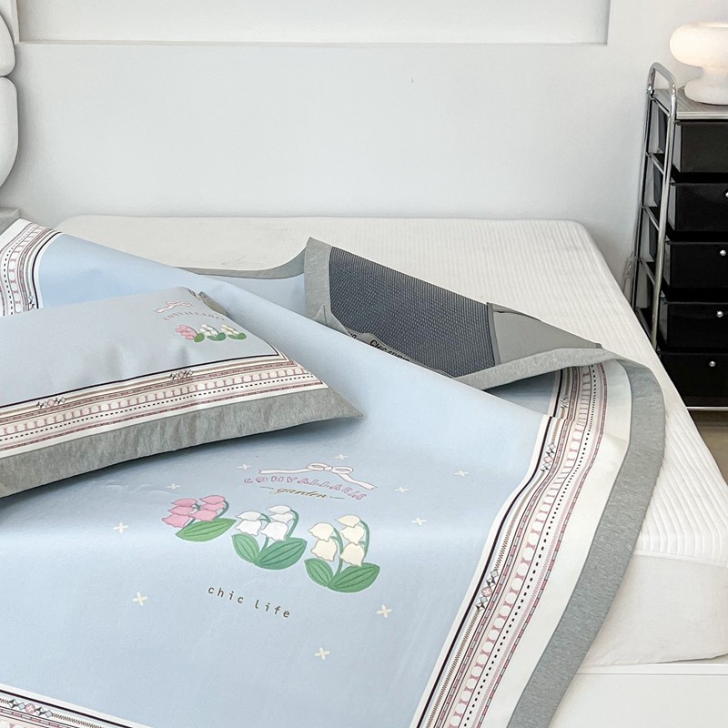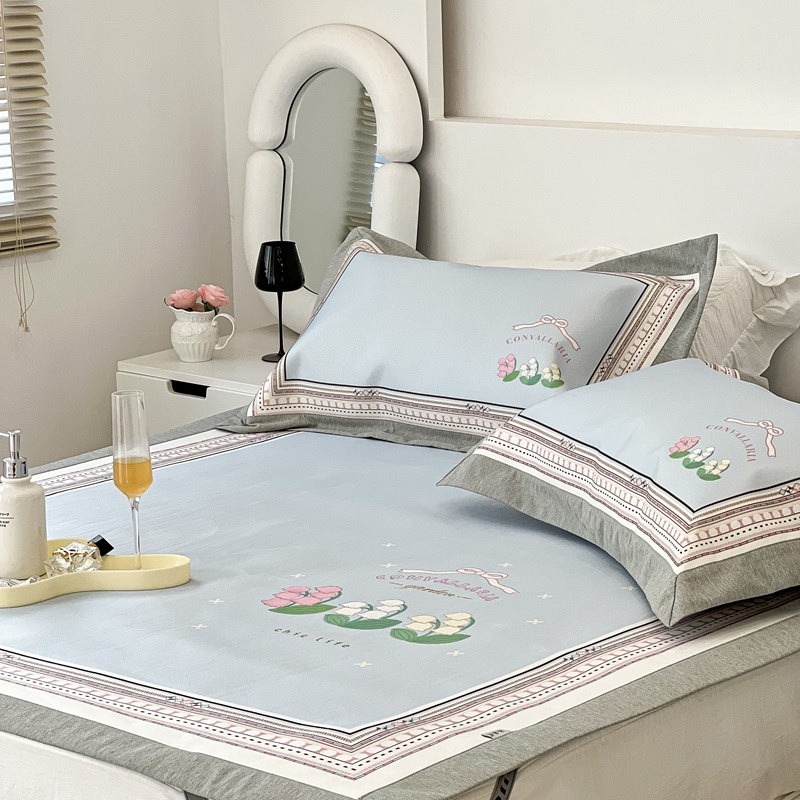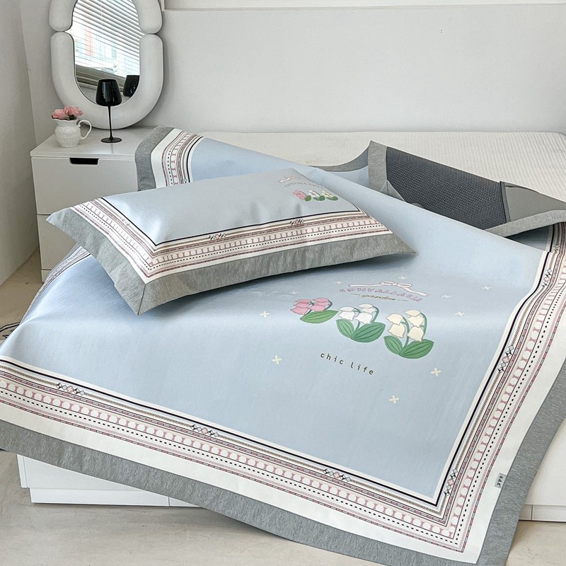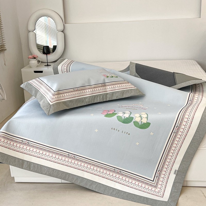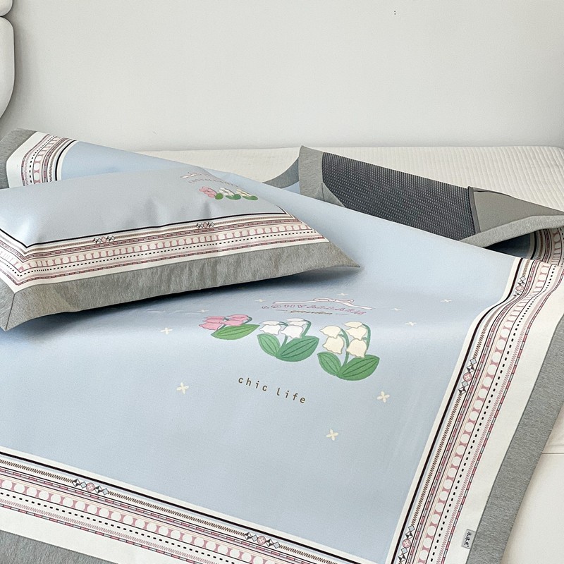 昔可 2022新款大版数码水洗冰沐丝凉席 铃兰季节蓝