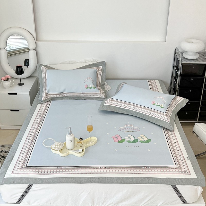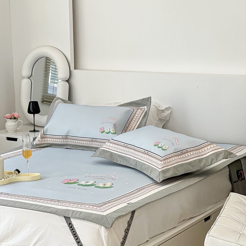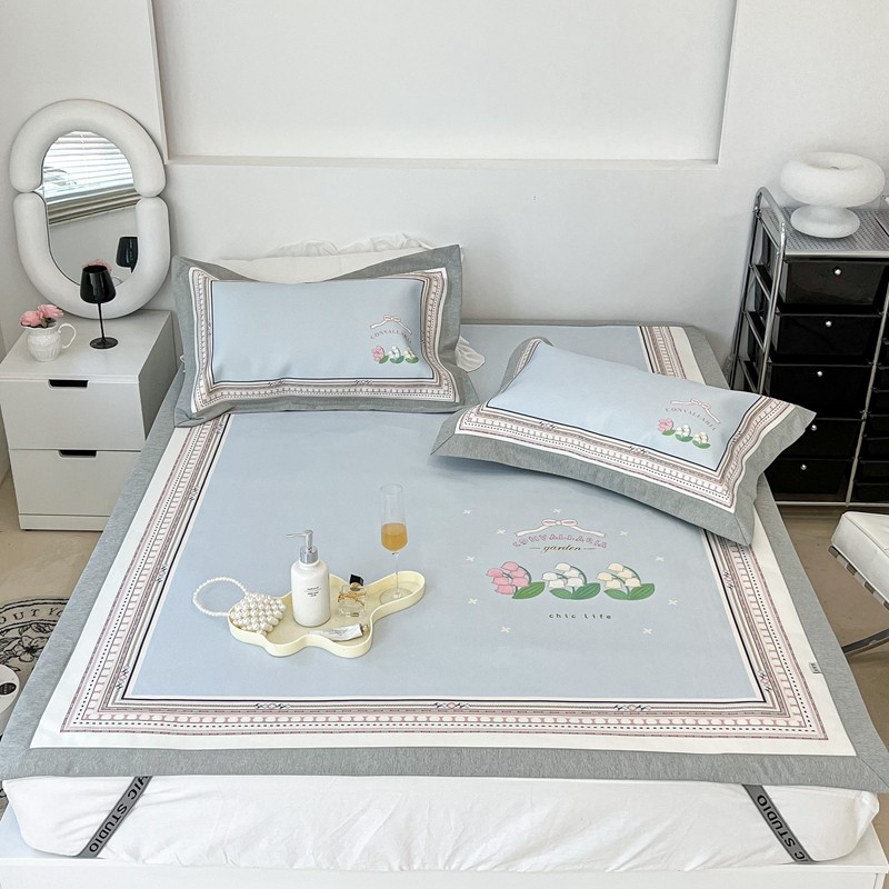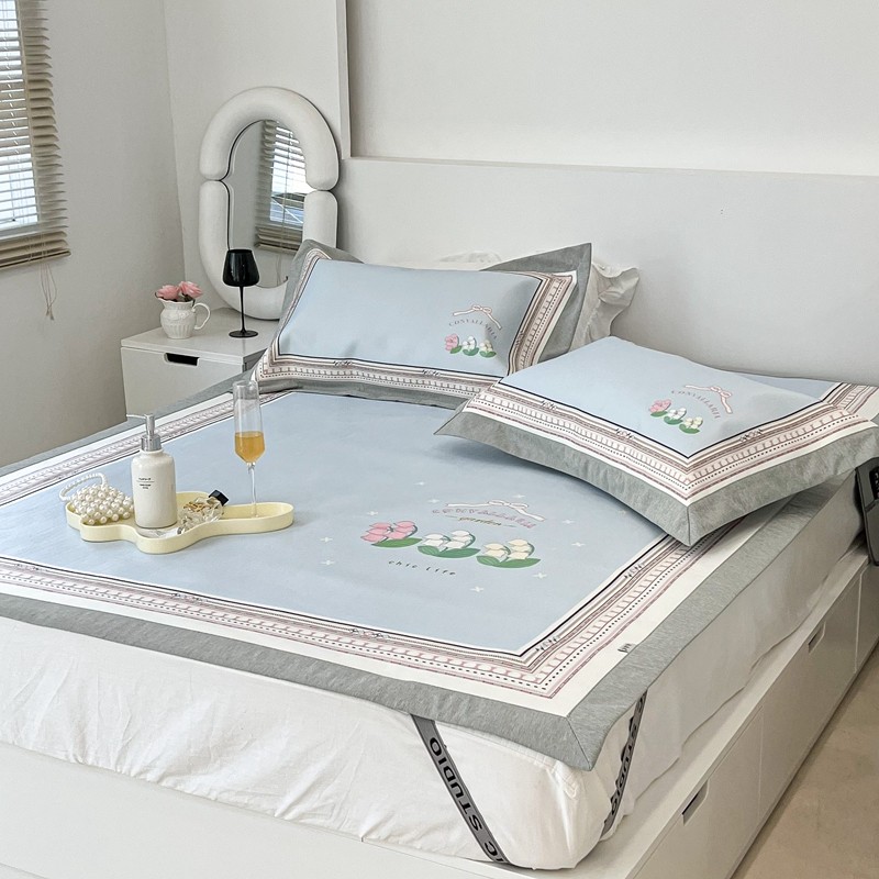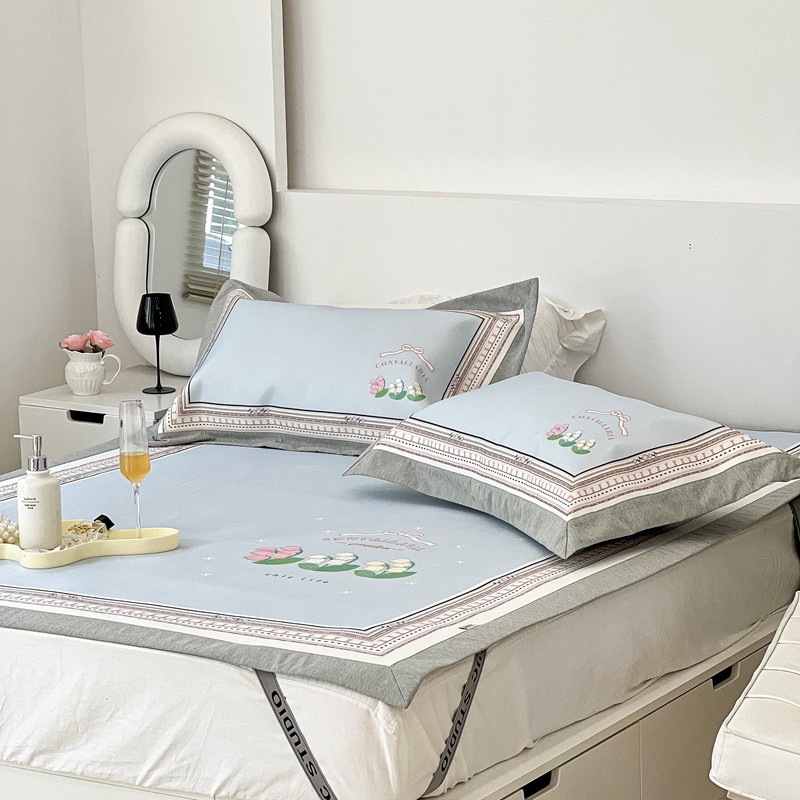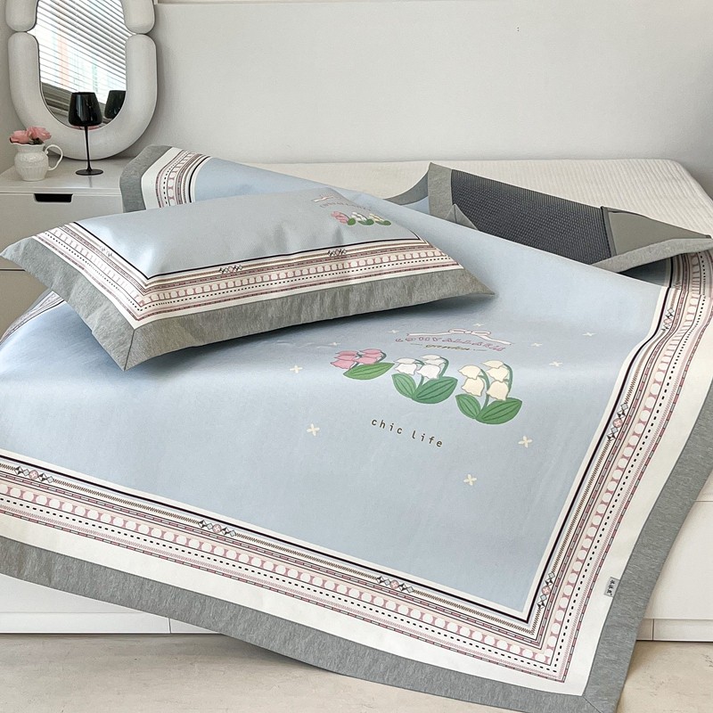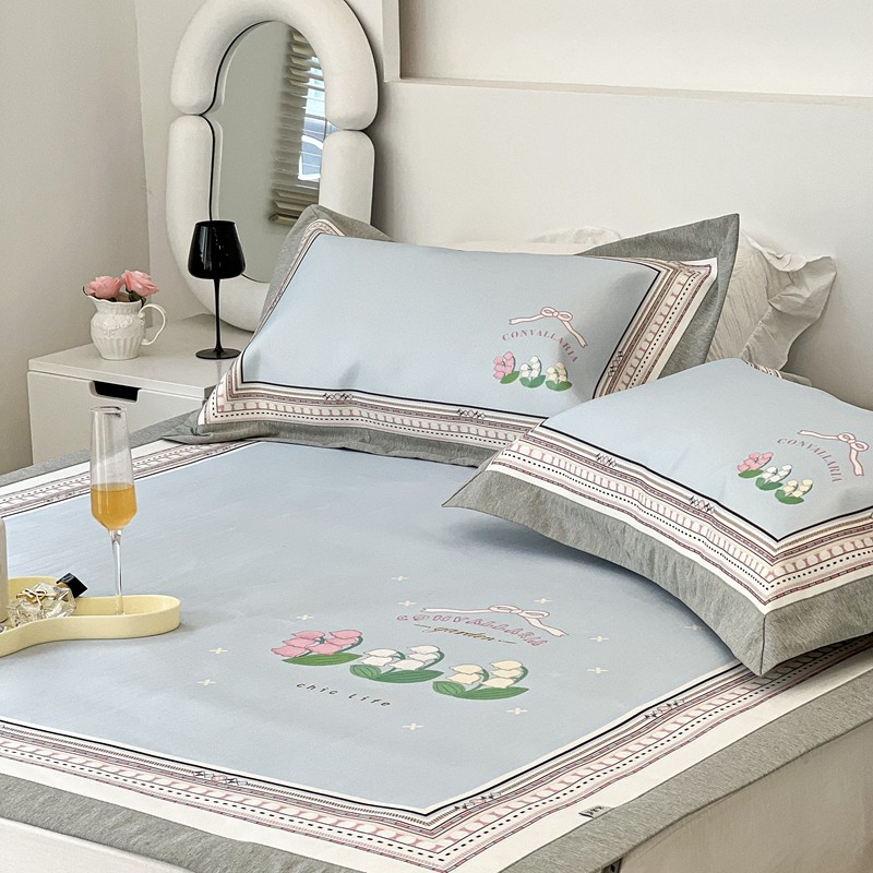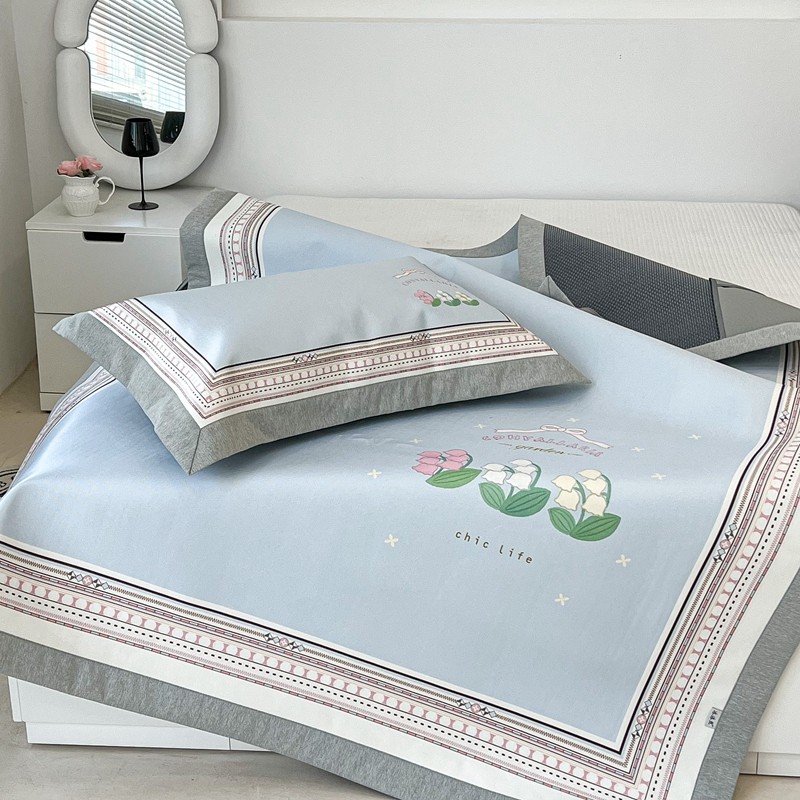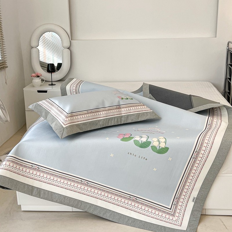 昔可 2022新款大版数码水洗冰沐丝凉席 铃兰季节蓝
