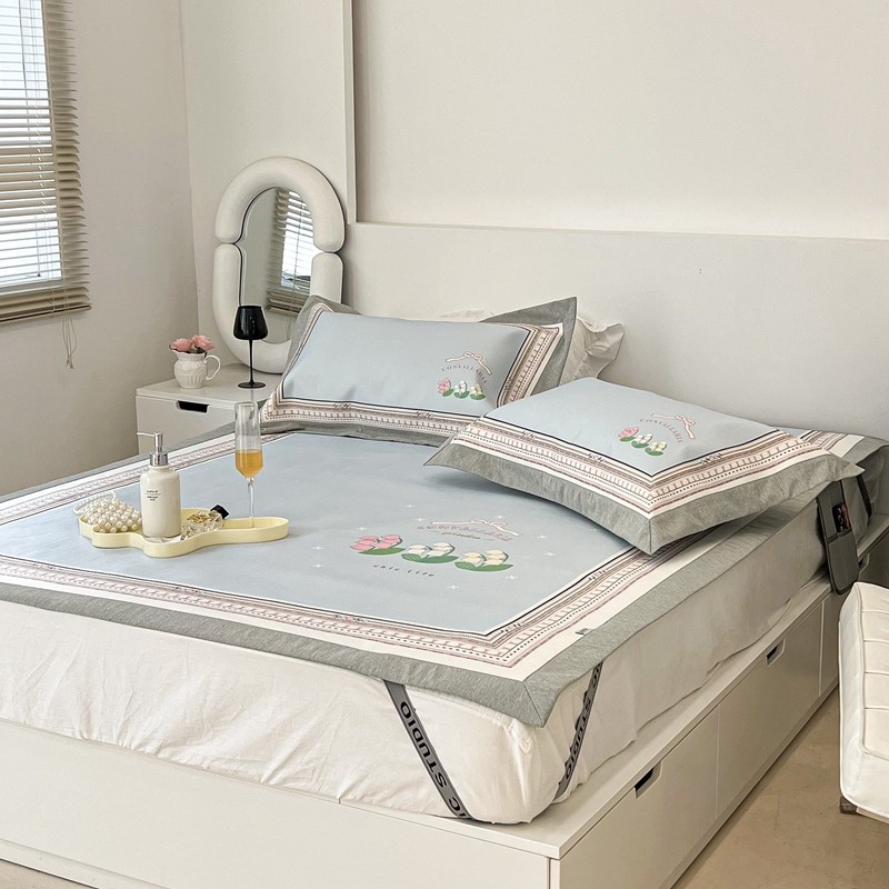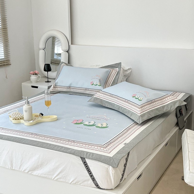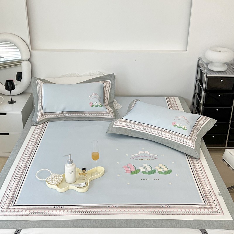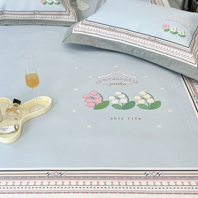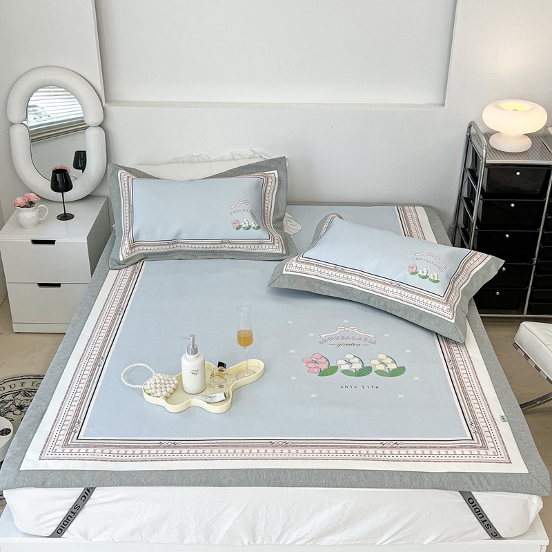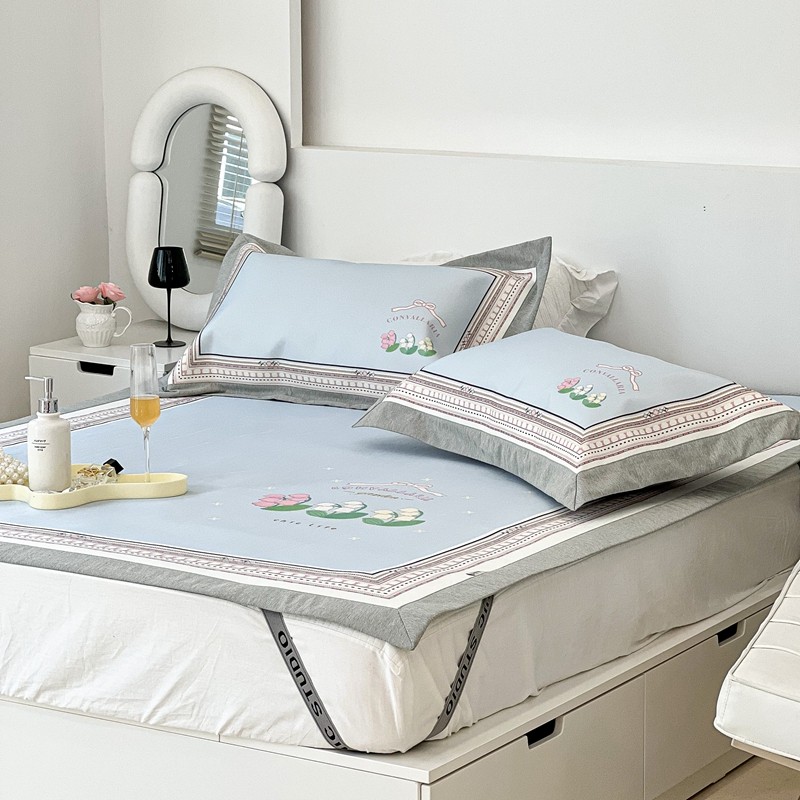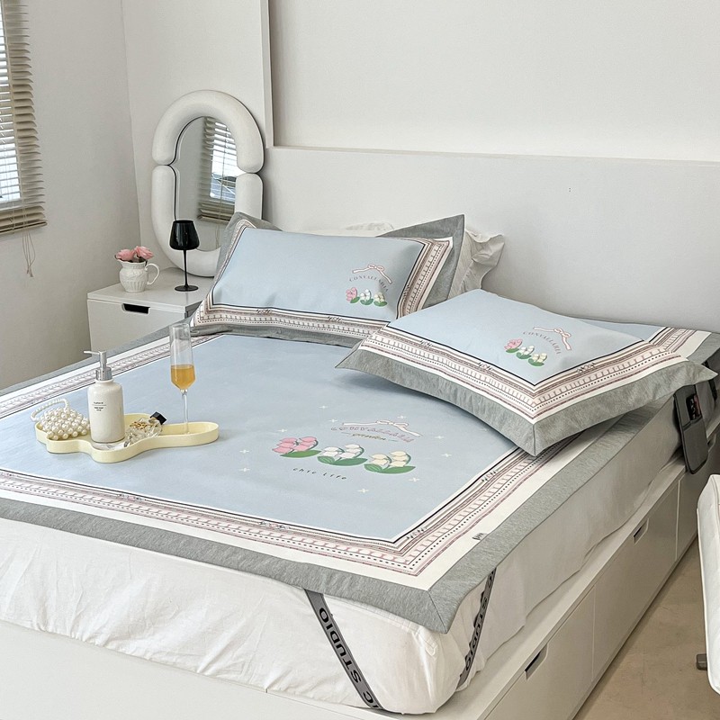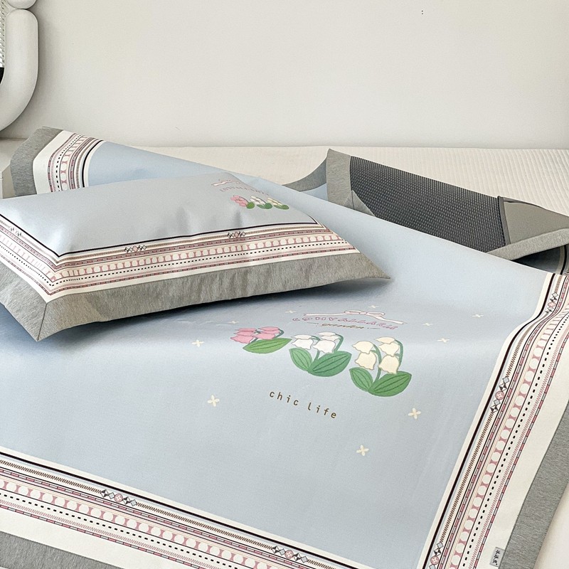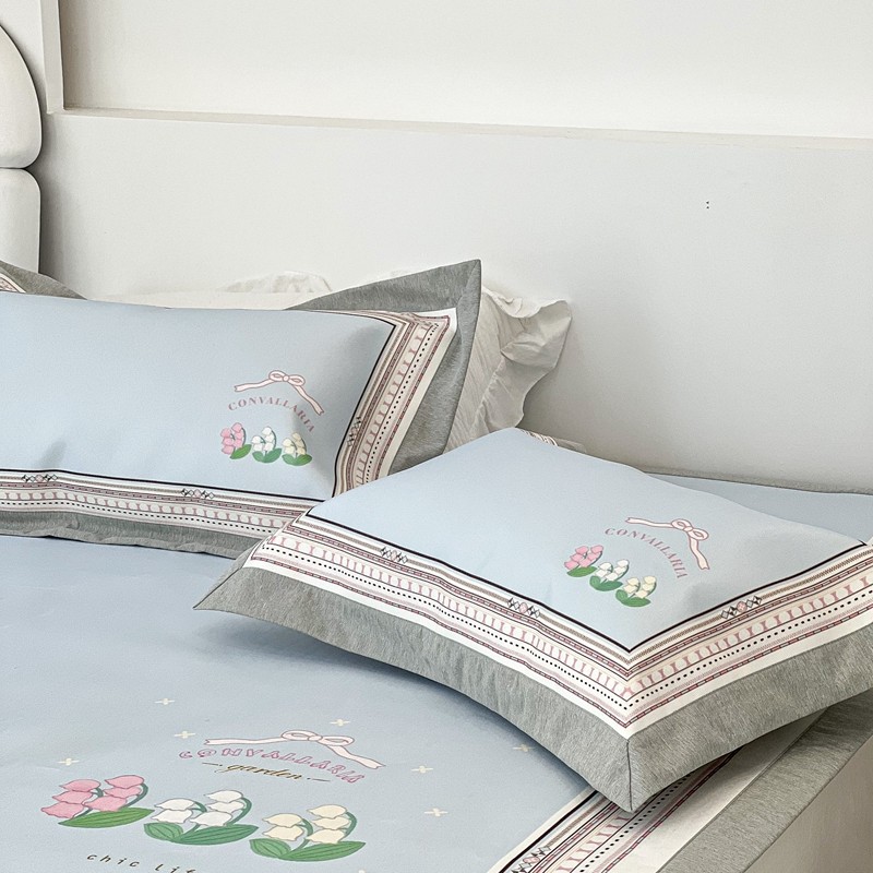 昔可 2022新款大版数码水洗冰沐丝凉席 铃兰季节蓝