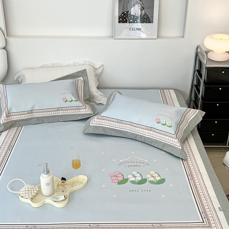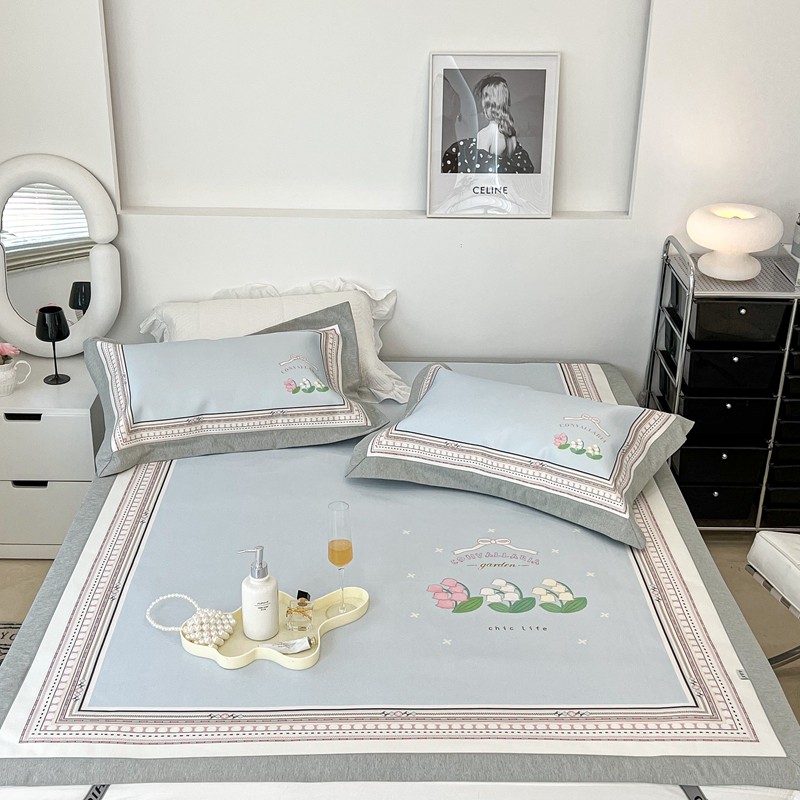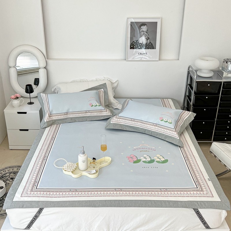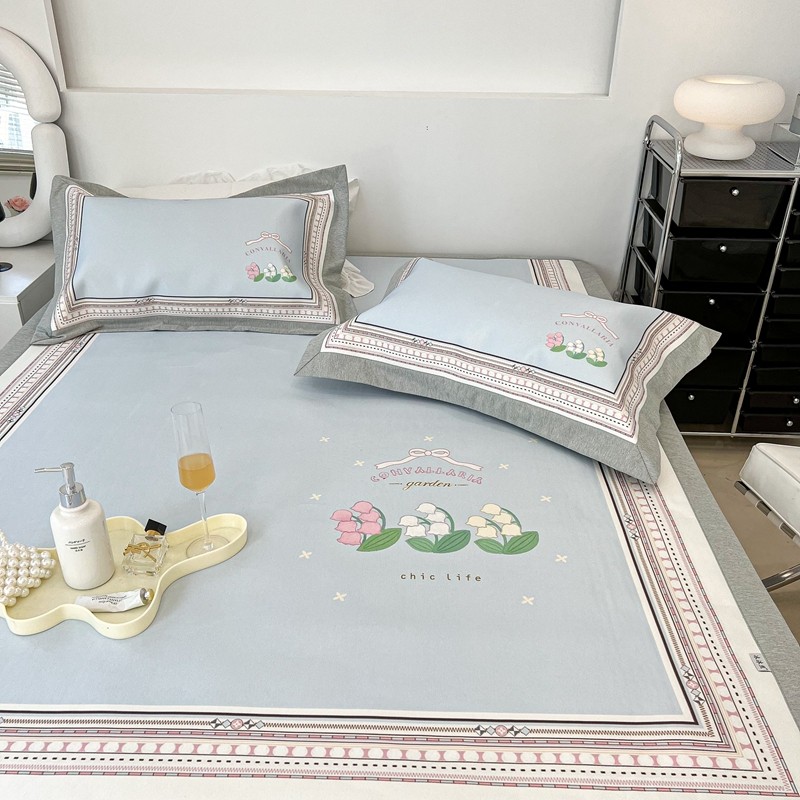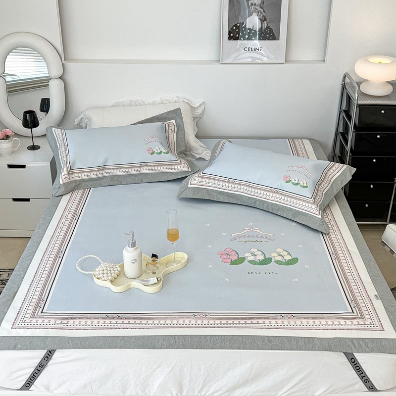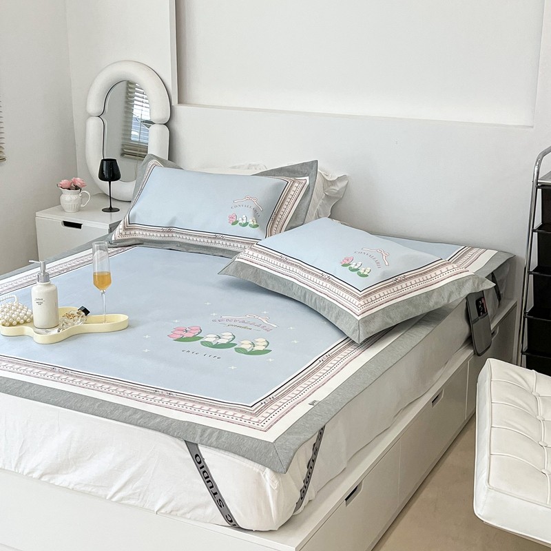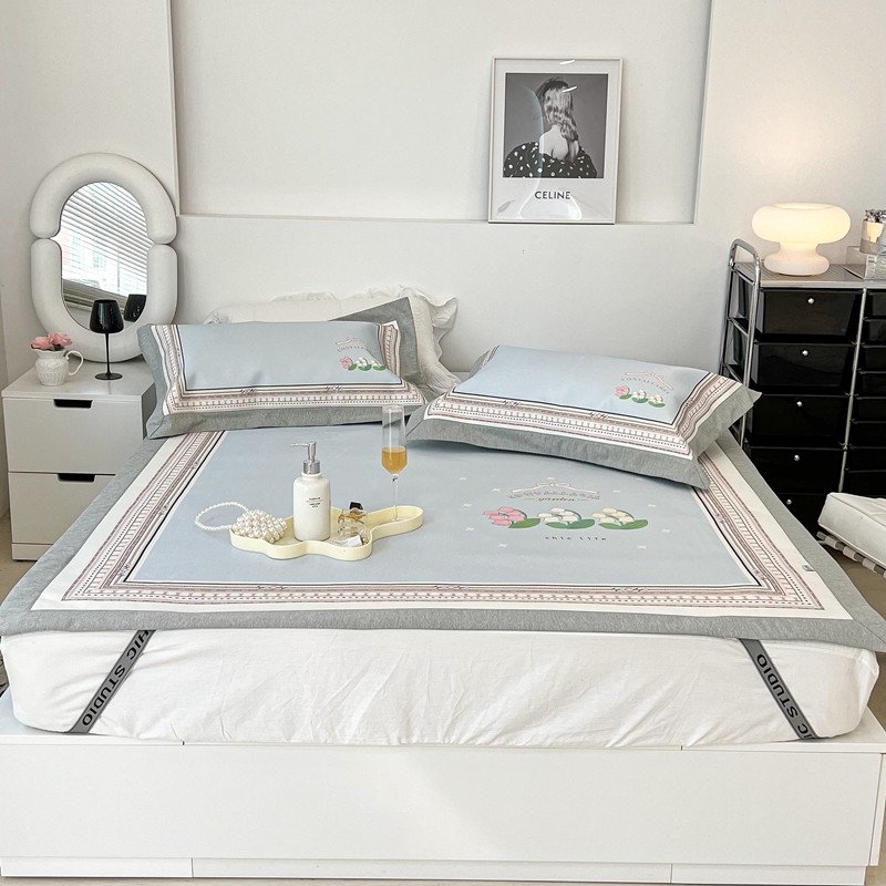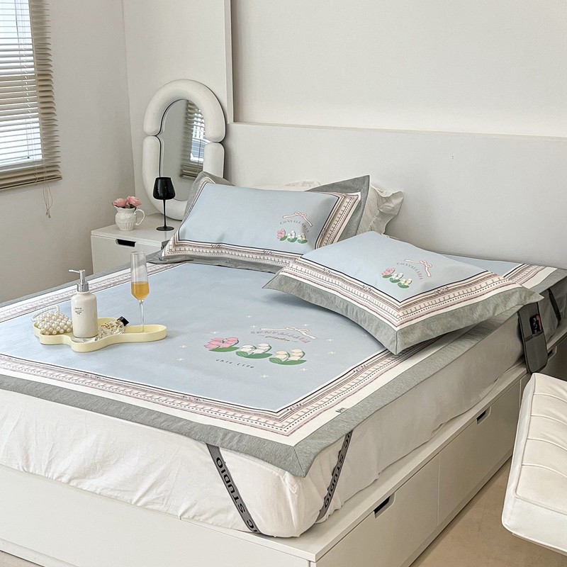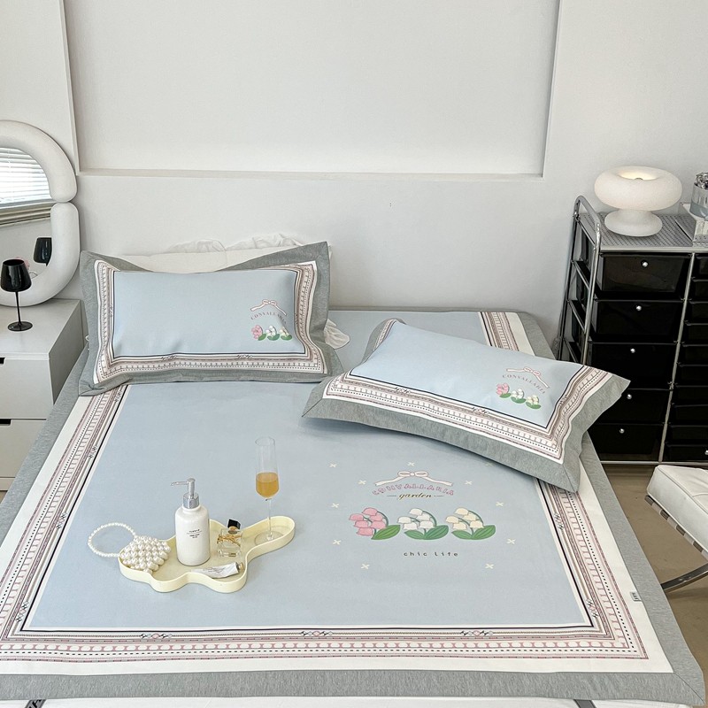 昔可 2022新款大版数码水洗冰沐丝凉席 铃兰季节蓝