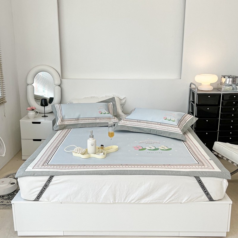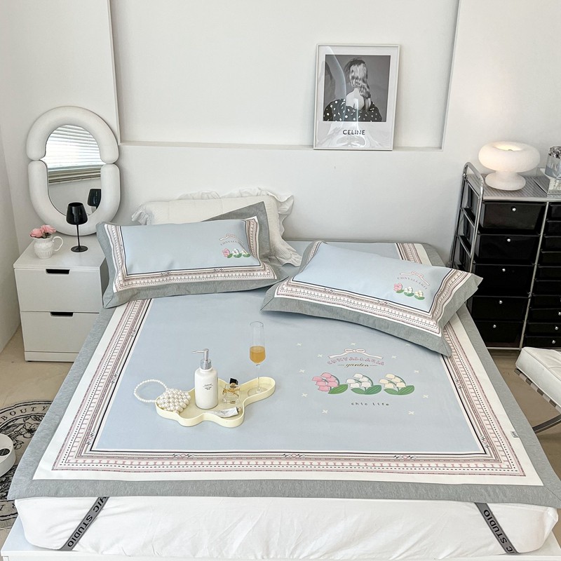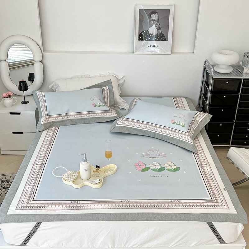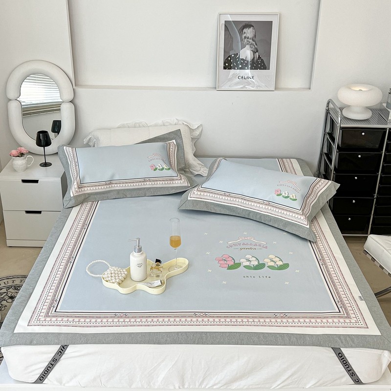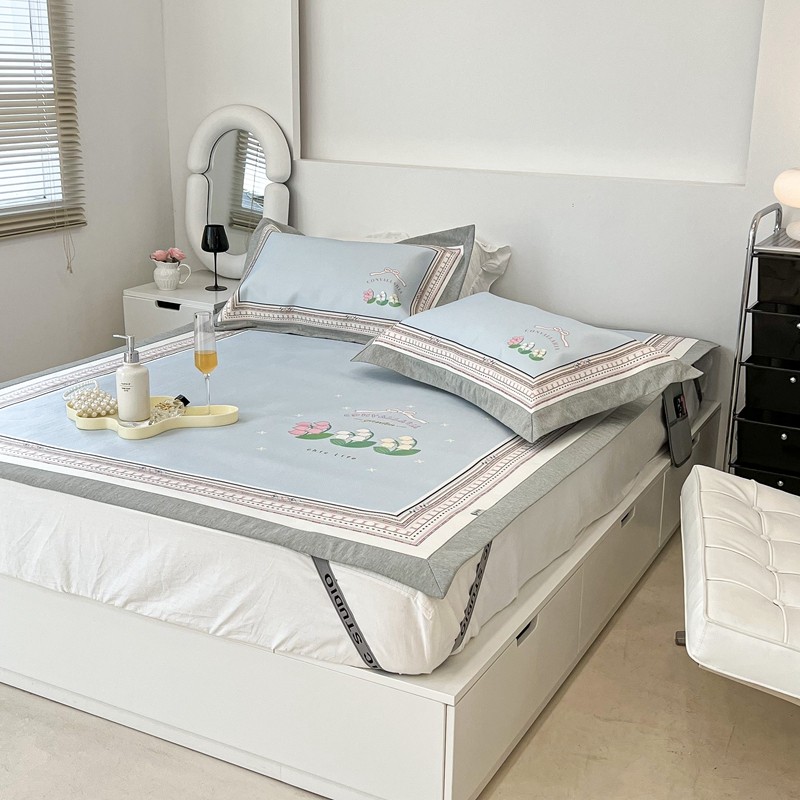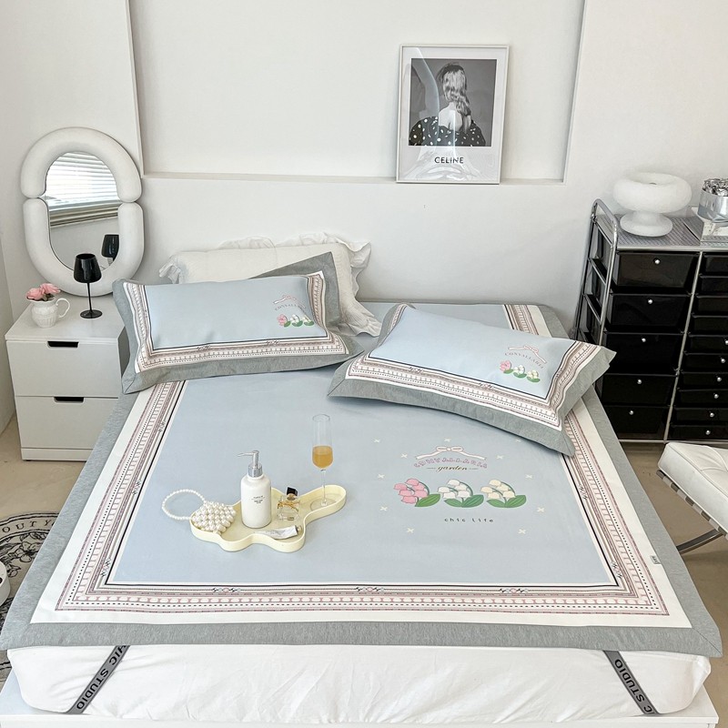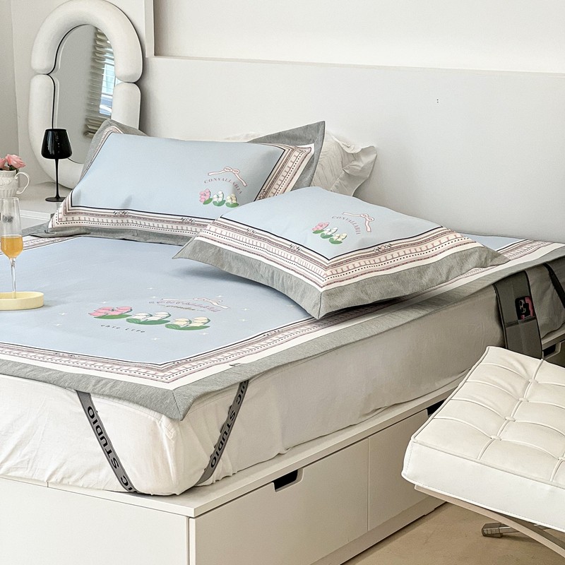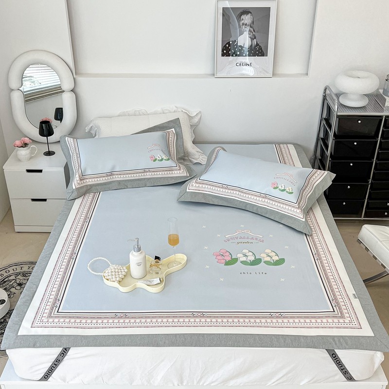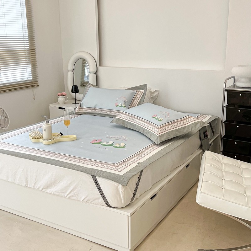 昔可 2022新款大版数码水洗冰沐丝凉席 铃兰季节蓝