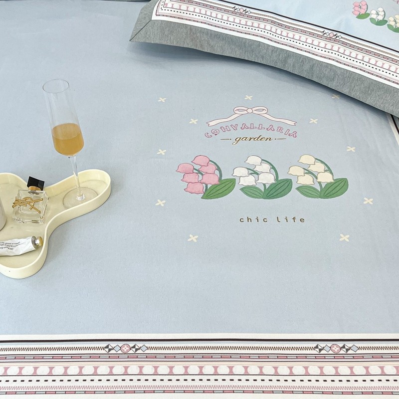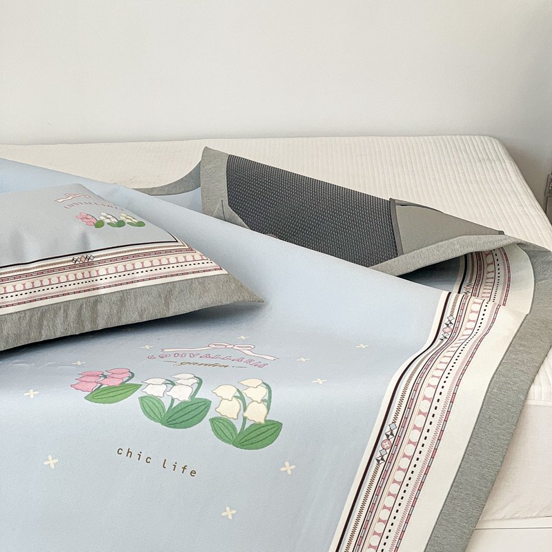 商品名称:昔可 2022新款大版数码水洗冰沐丝凉席 铃兰季节蓝