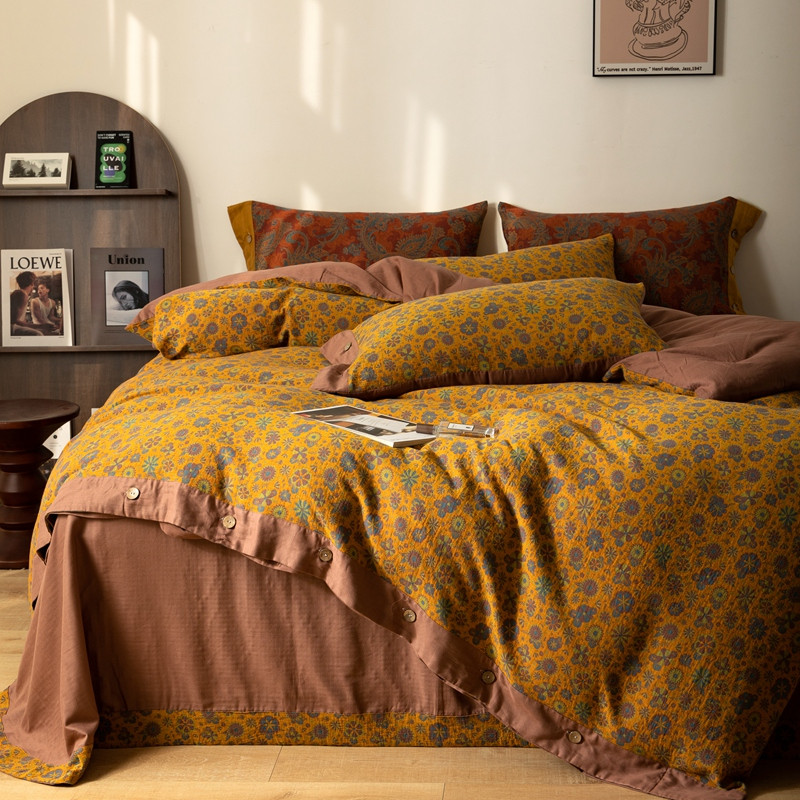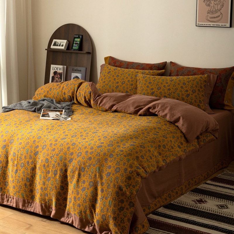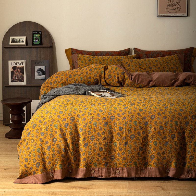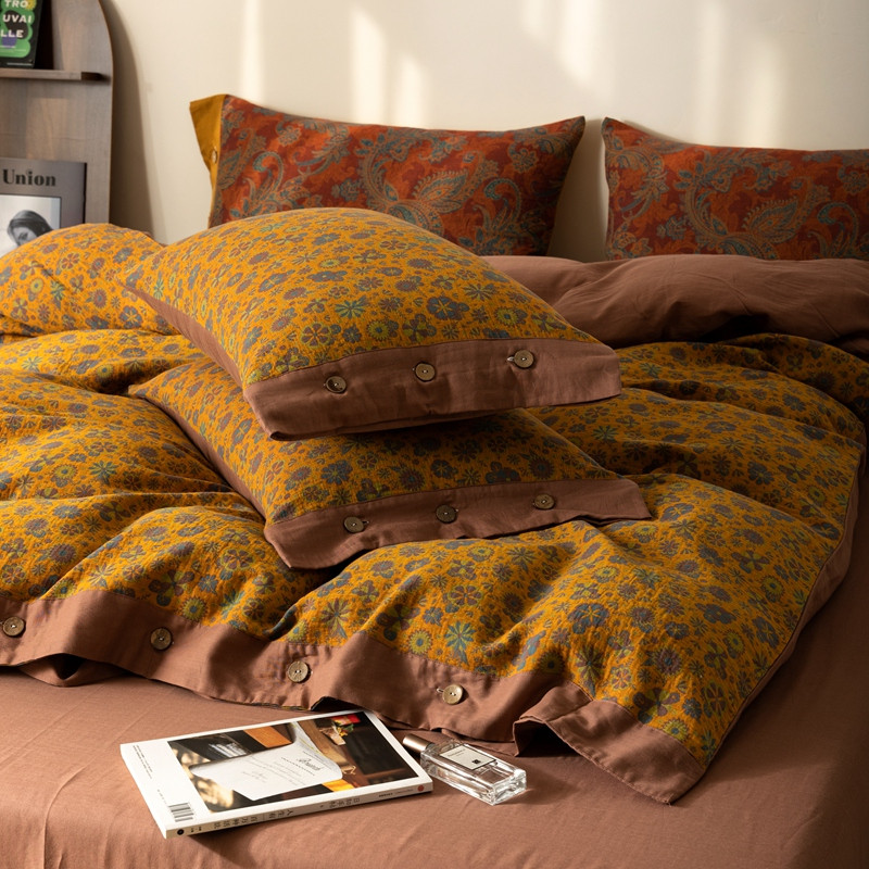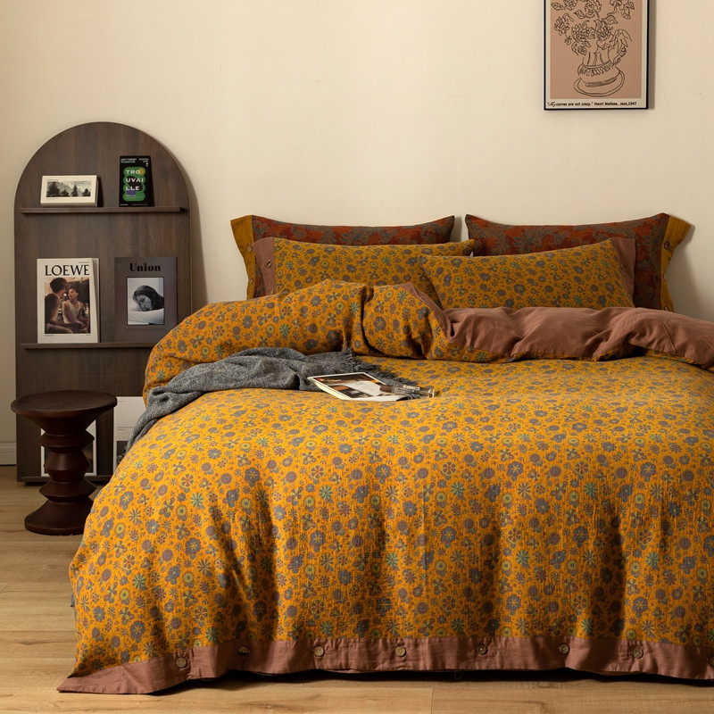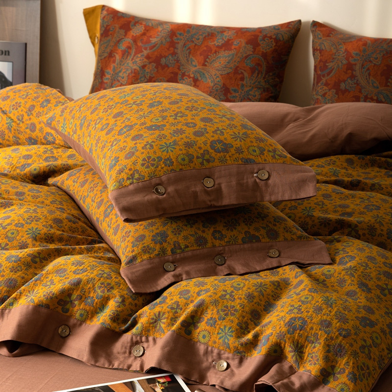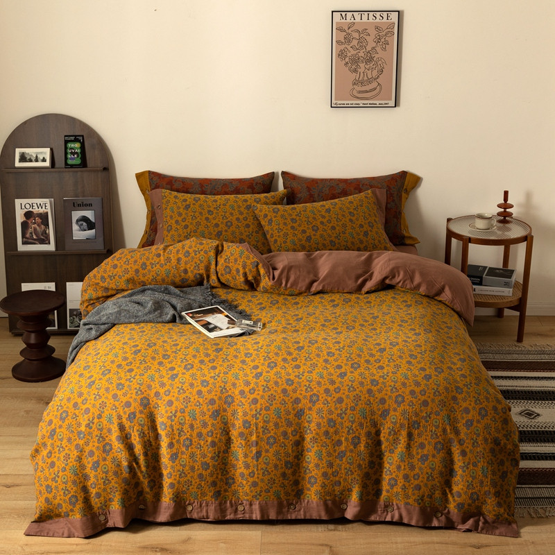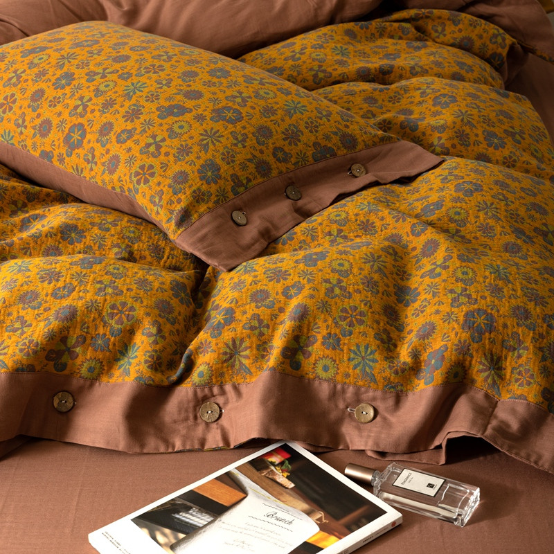 凡客 2022新款全棉A类色织双层纱纽扣款四件套 希尔芙
