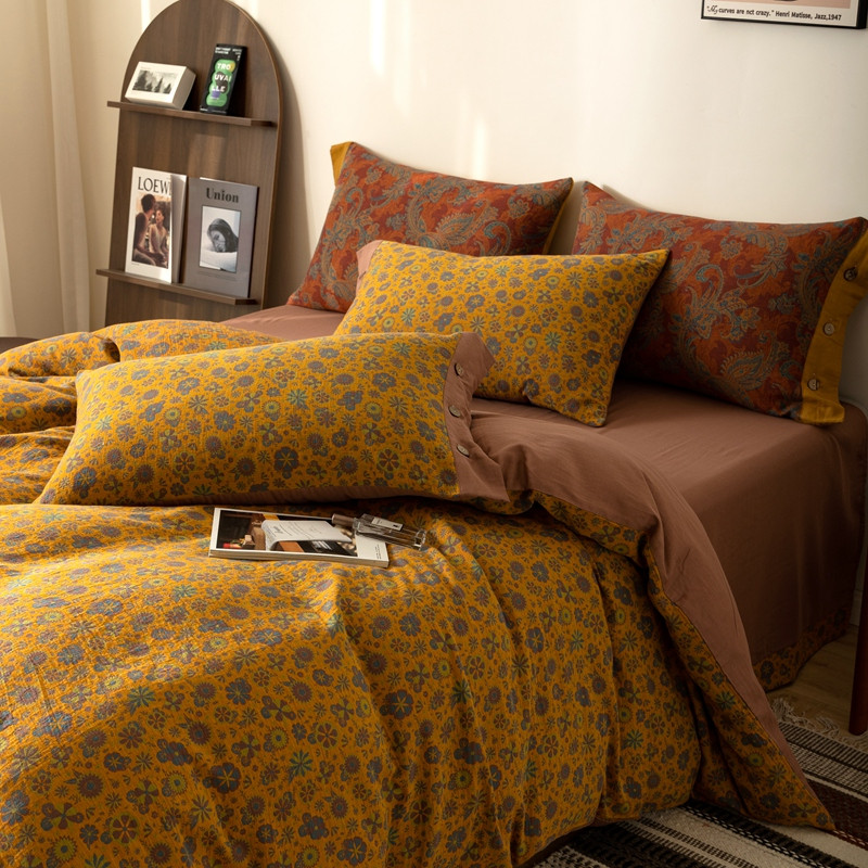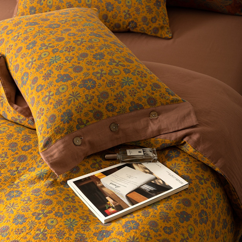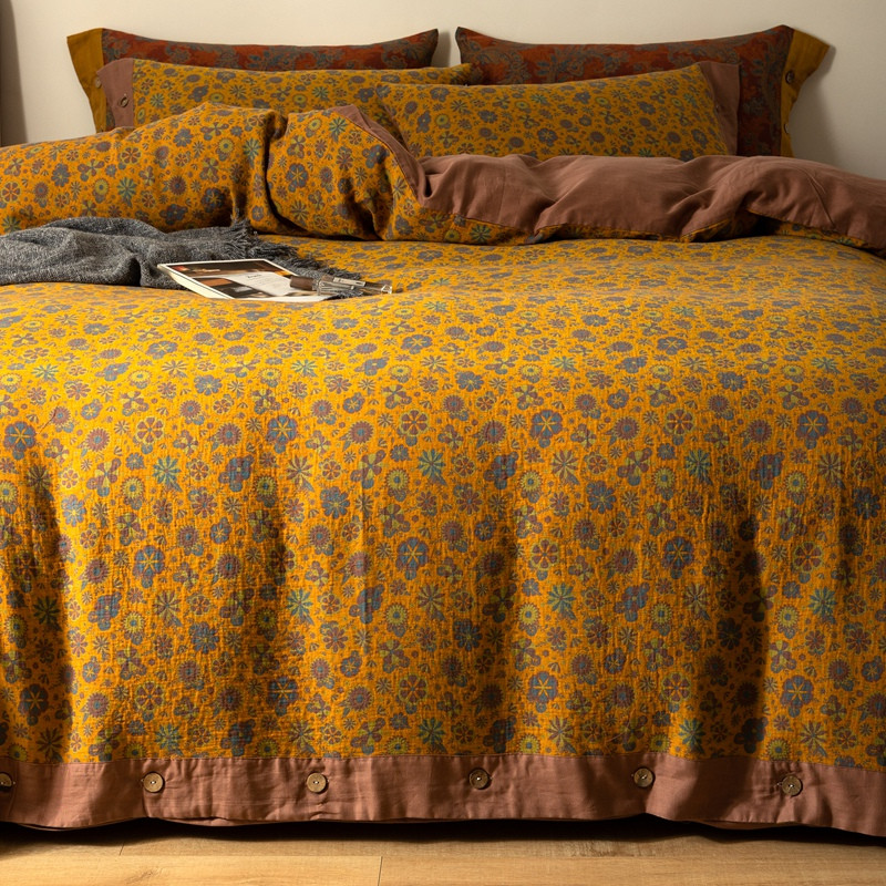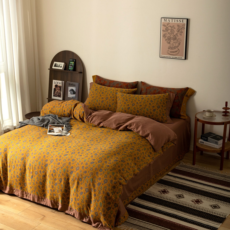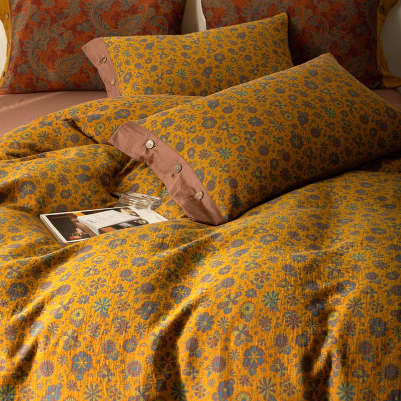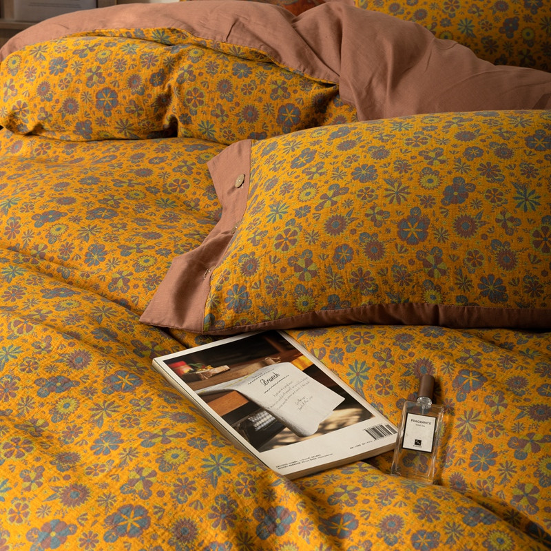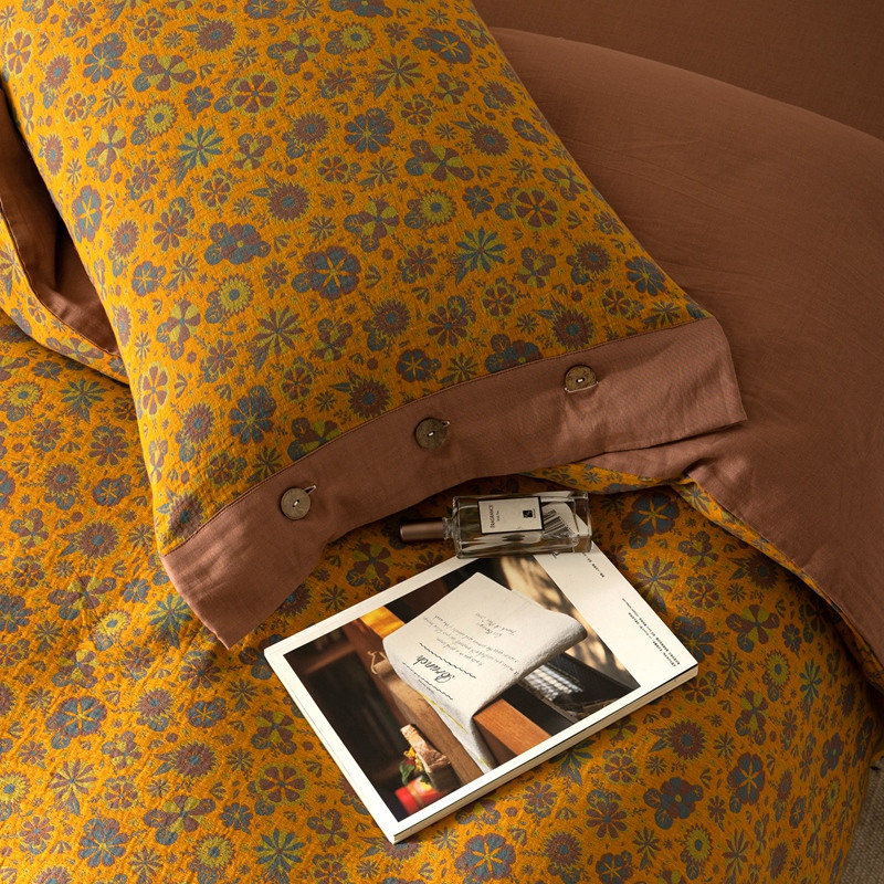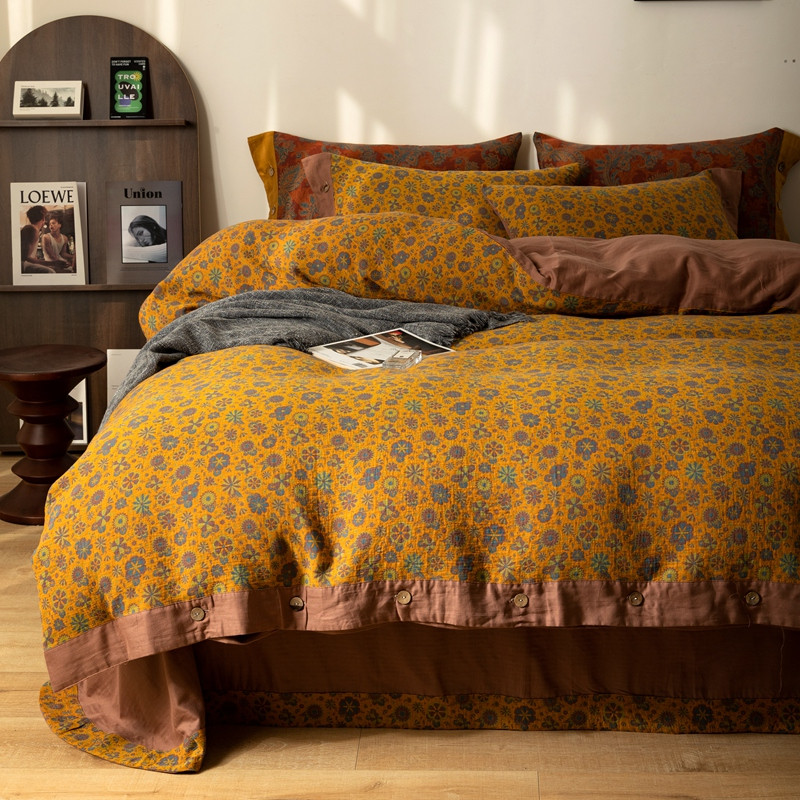 凡客 2022新款全棉A类色织双层纱纽扣款四件套 希尔芙