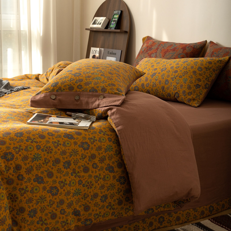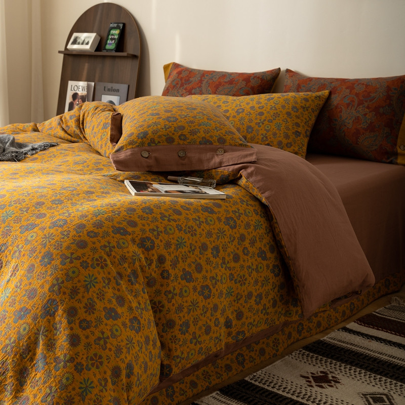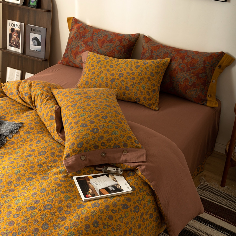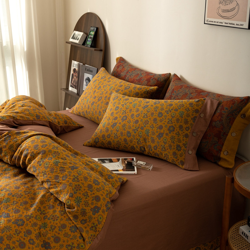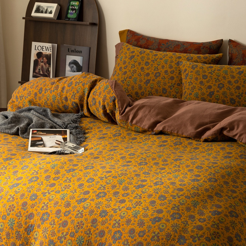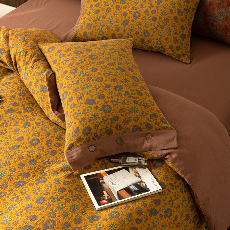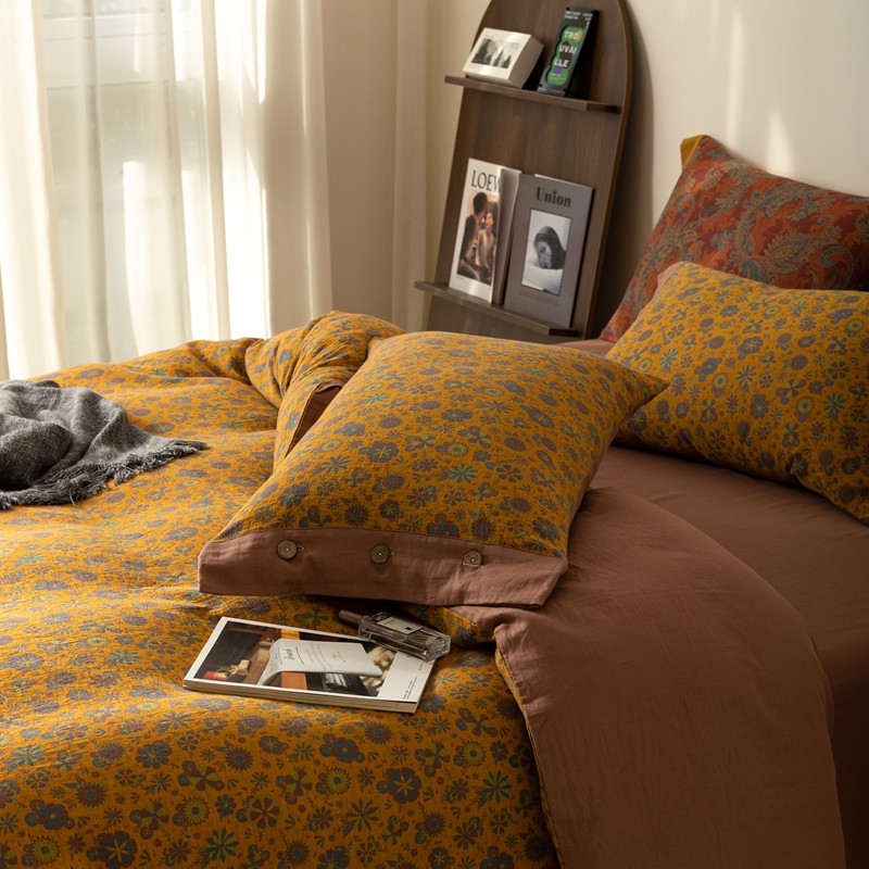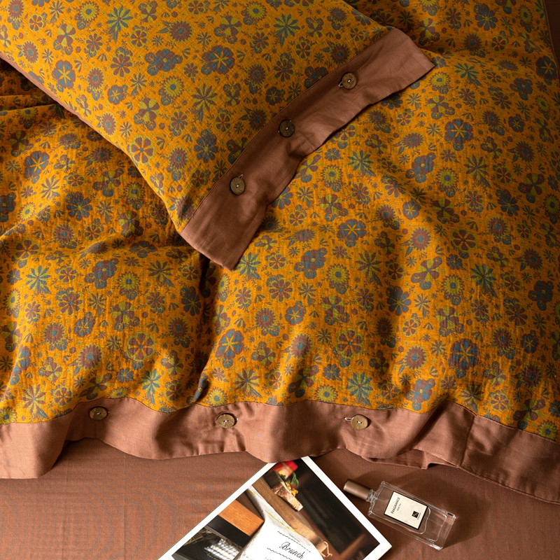 凡客 2022新款全棉A类色织双层纱纽扣款四件套 希尔芙