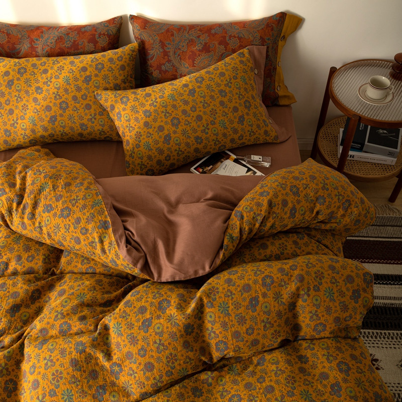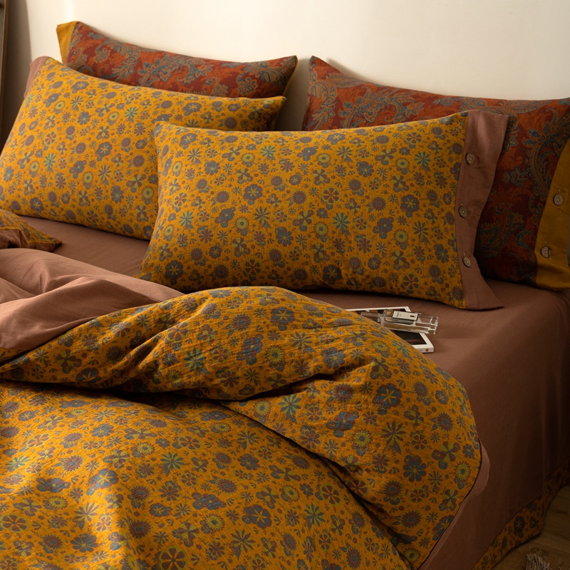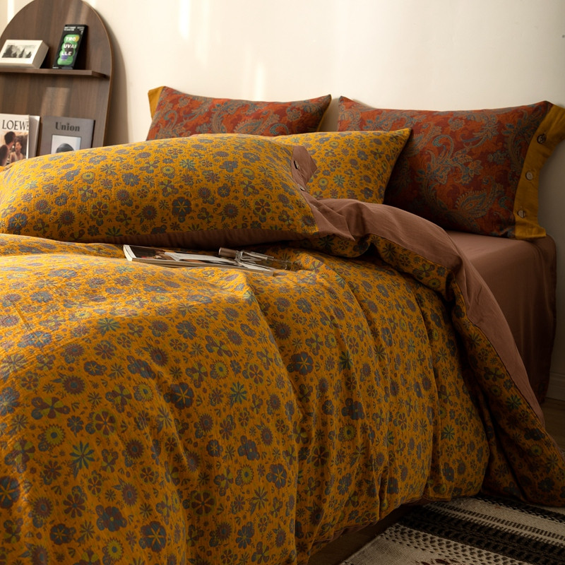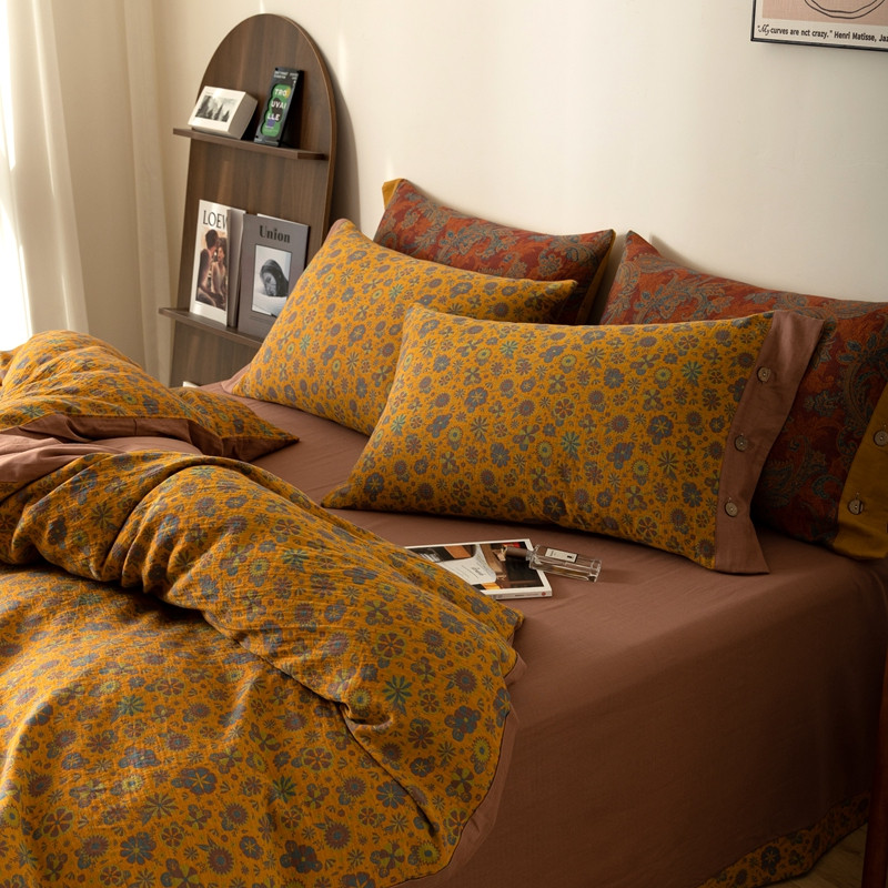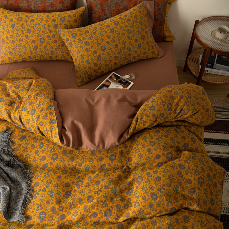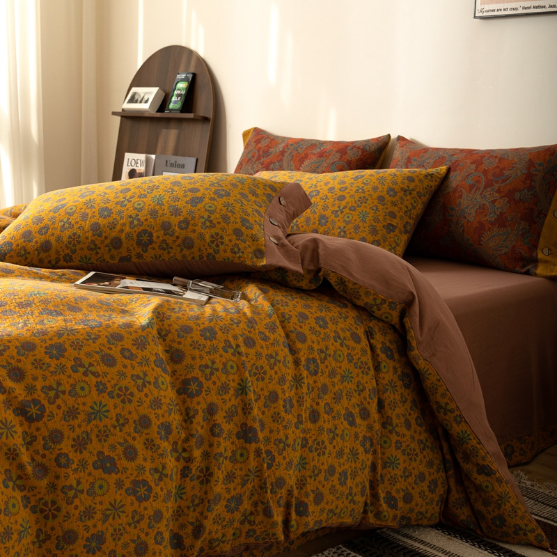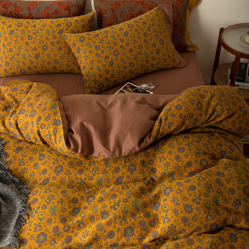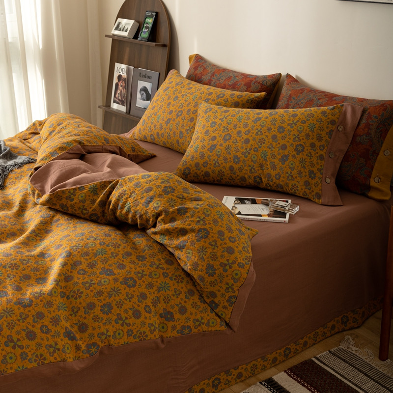 凡客 2022新款全棉A类色织双层纱纽扣款四件套 希尔芙