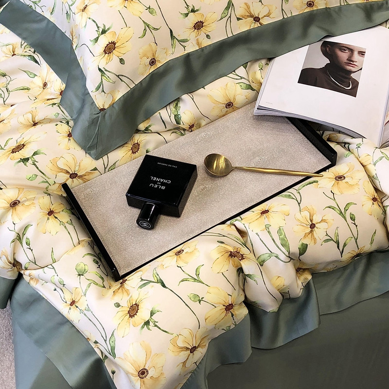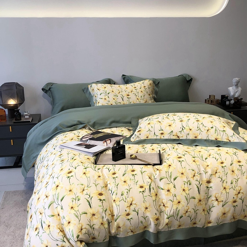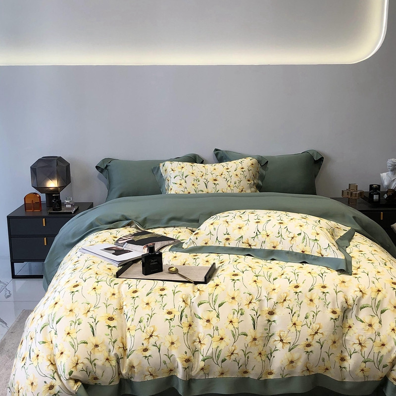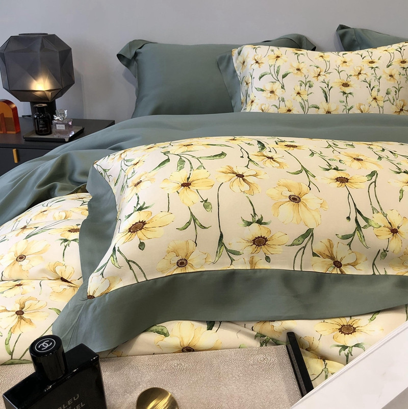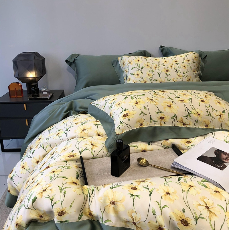 商品名称:太古汇家居 2022新款60兰精天丝数码印花四件套 卢米娜-黄