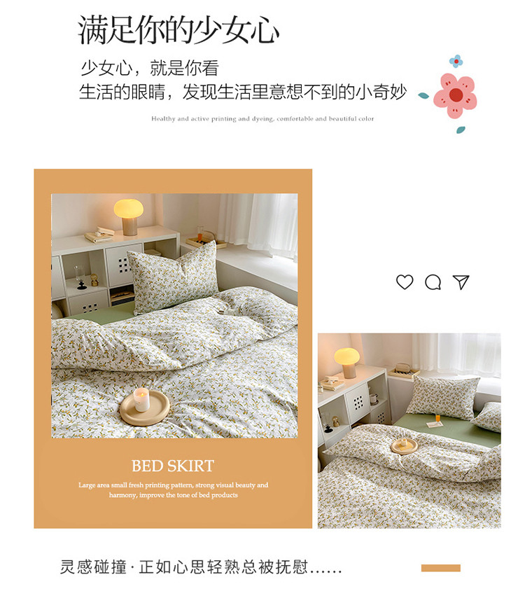 (总)田野 2022新款水洗棉小清新小碎花全棉四件套,花丛,花涧,绿婉,曼舞,桃夭,甜馨草莓,兔兔,银杏