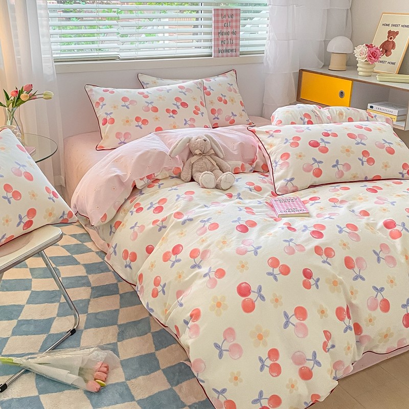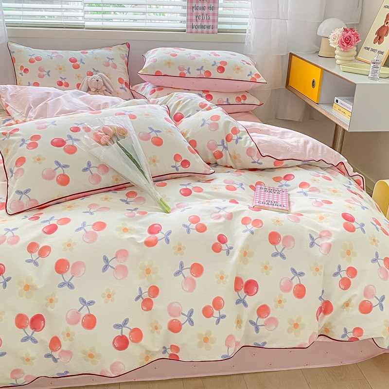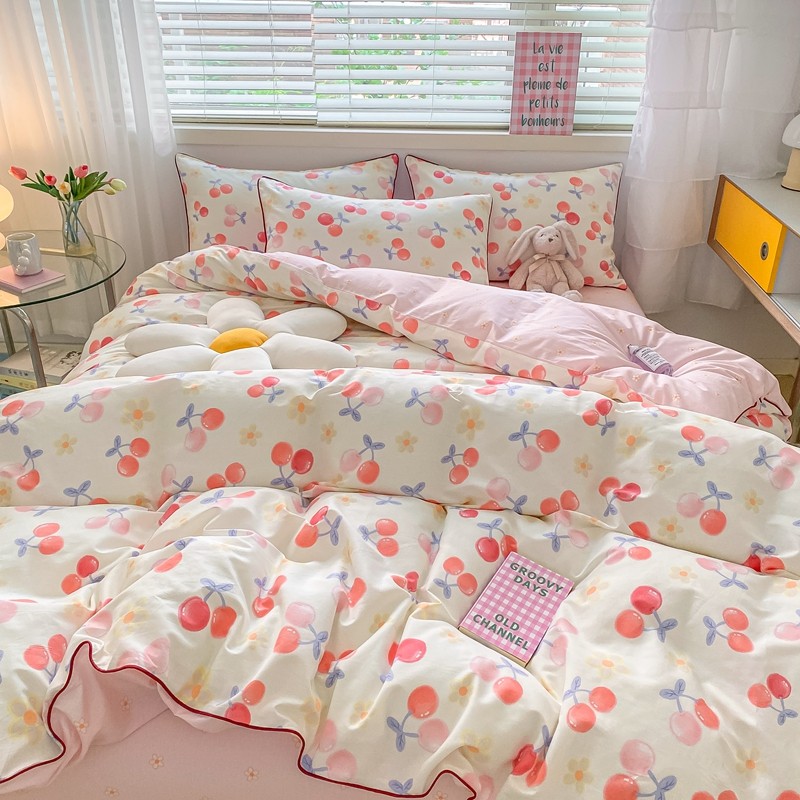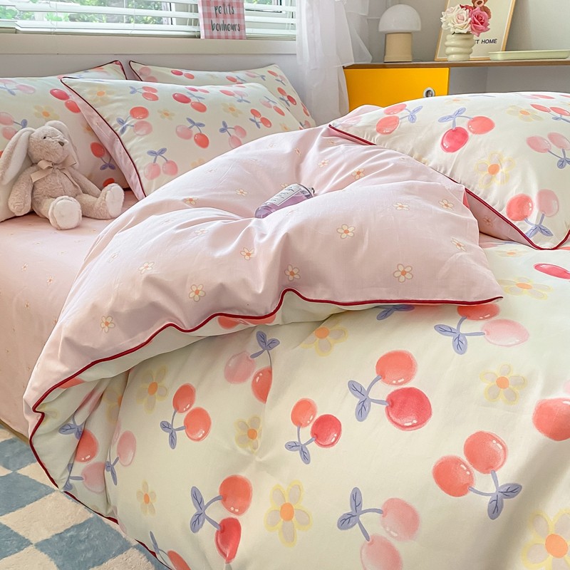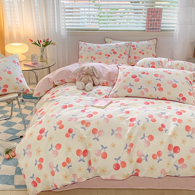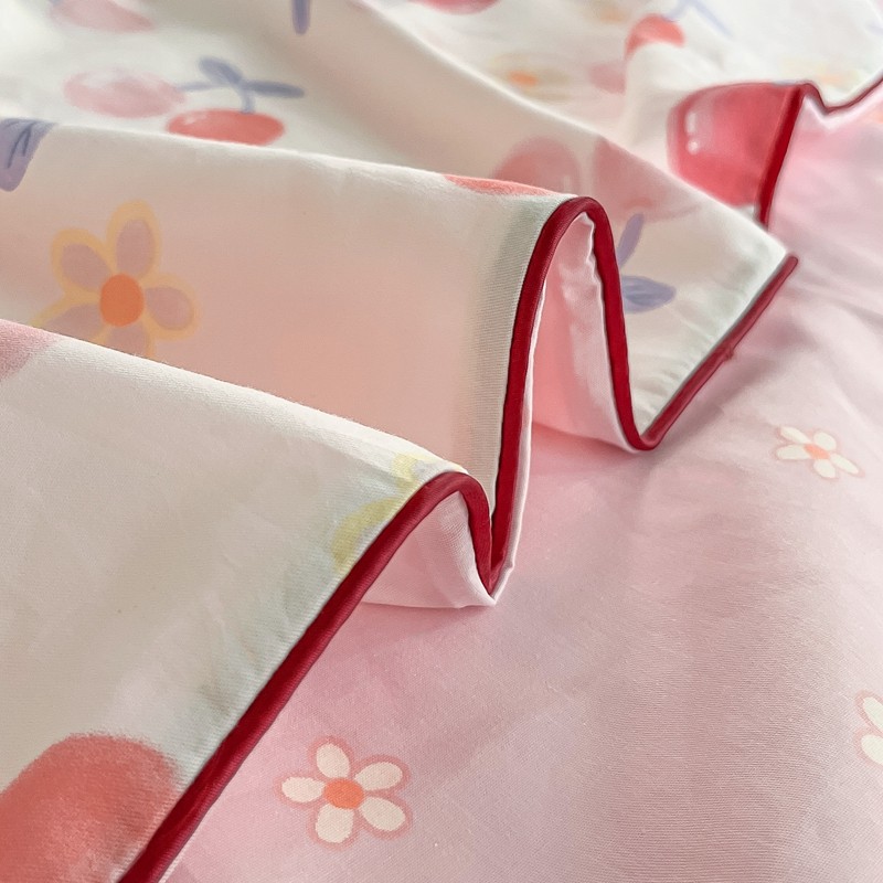 金丝鸟 2022新款全棉麻绳款四件套 花朵樱桃