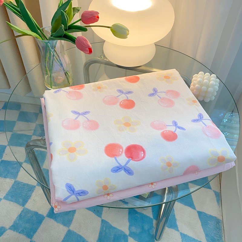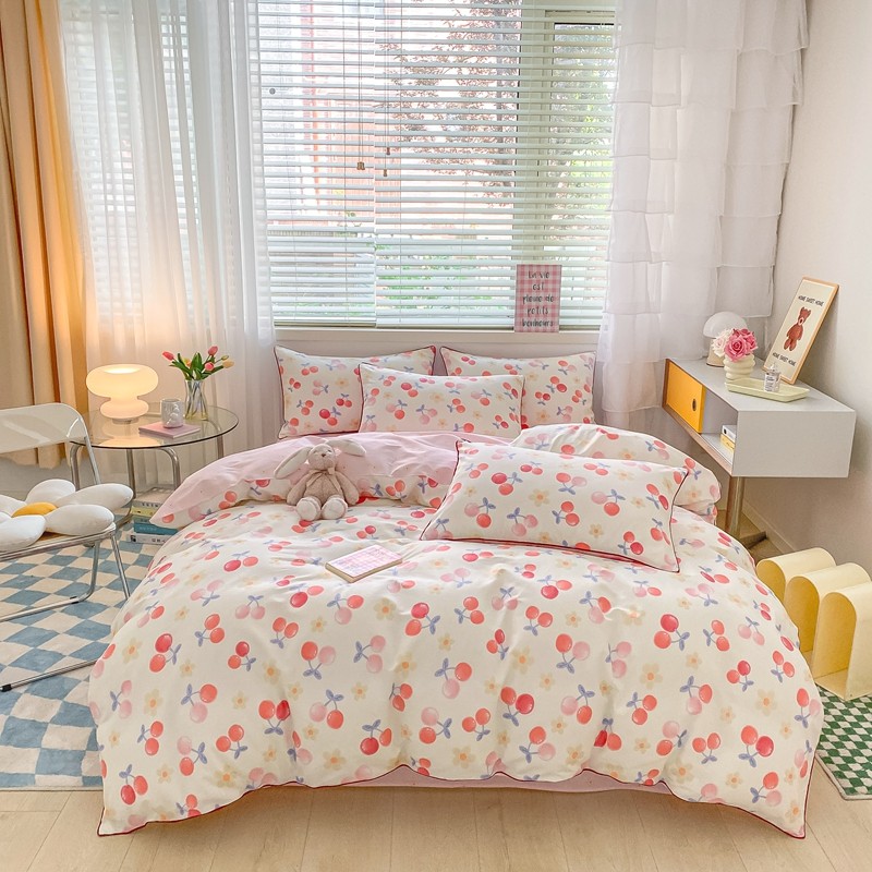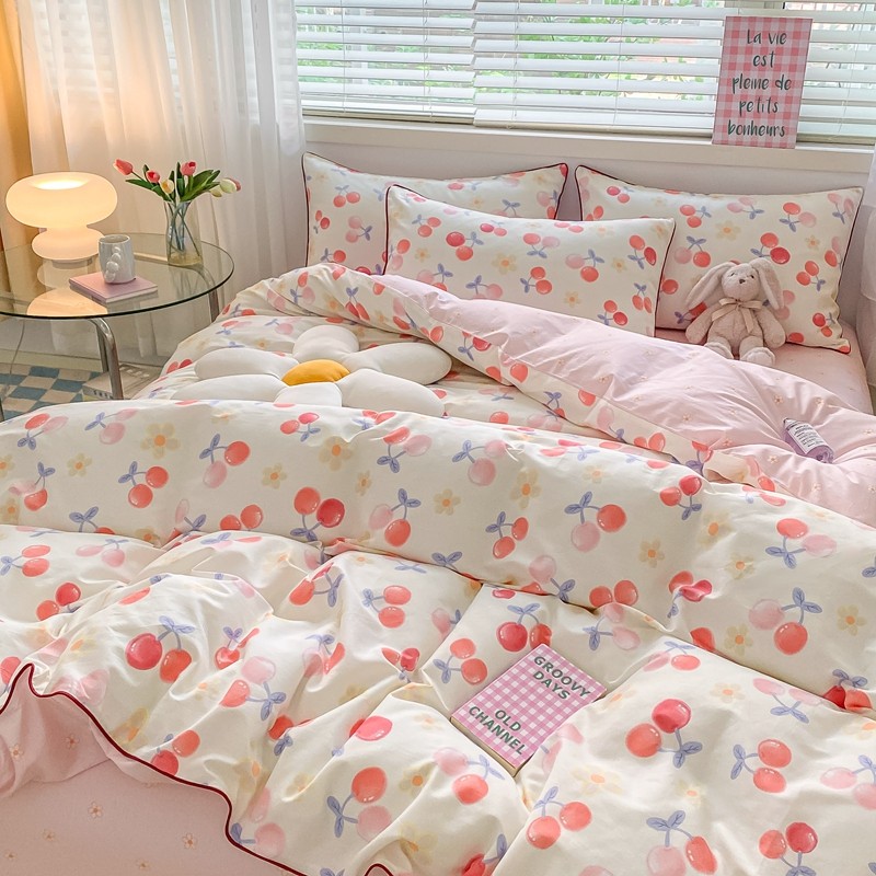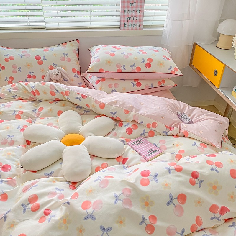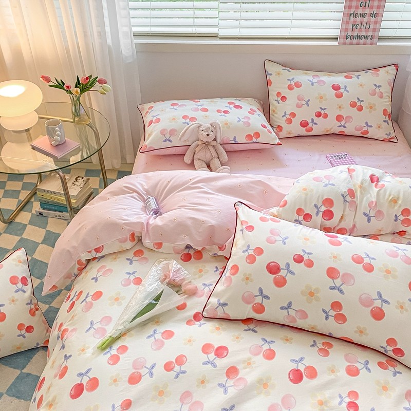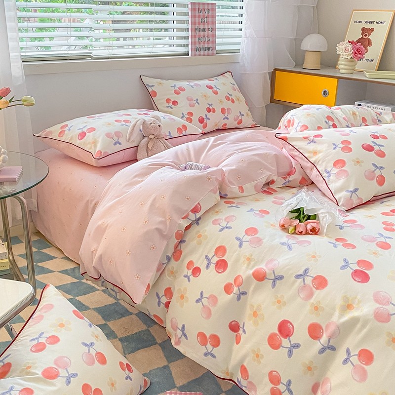 金丝鸟 2022新款全棉麻绳款四件套 花朵樱桃