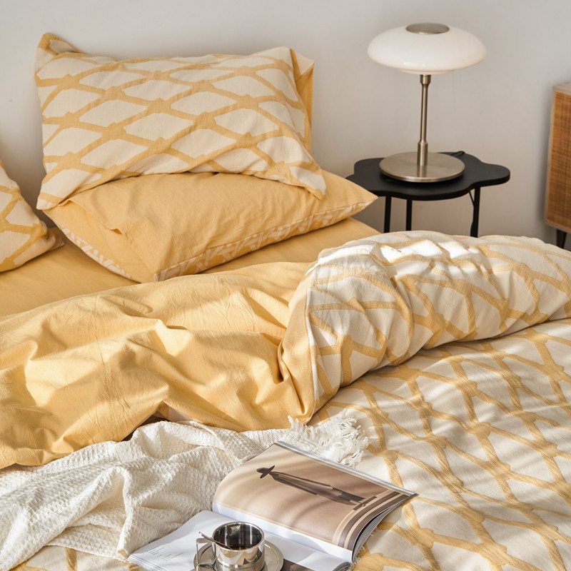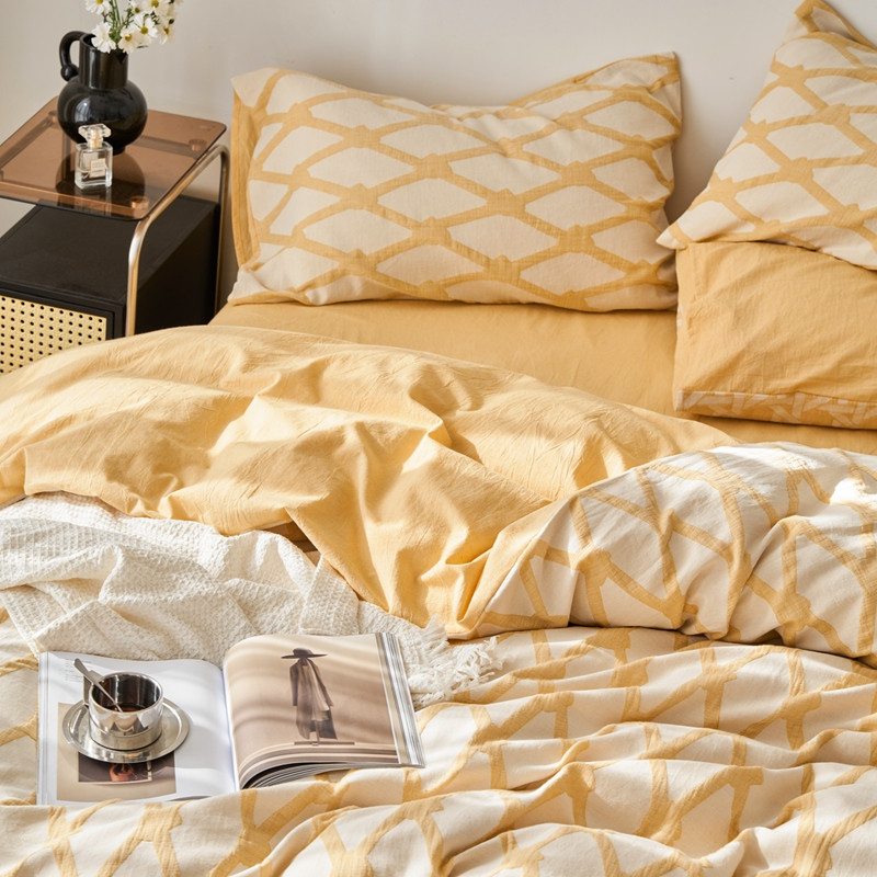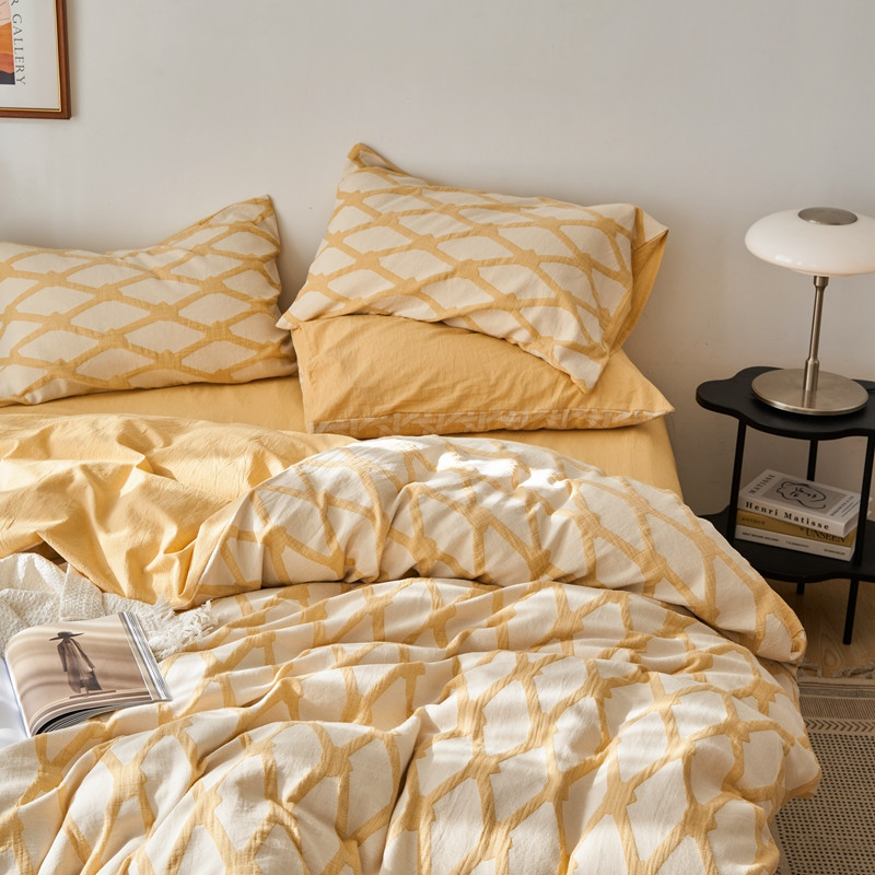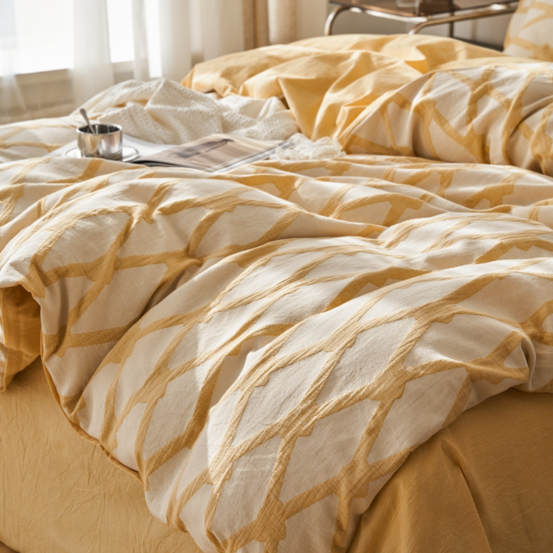 商品名称:简家居 2022新款全棉色织大提花帛格系列四件套 帛格-黄