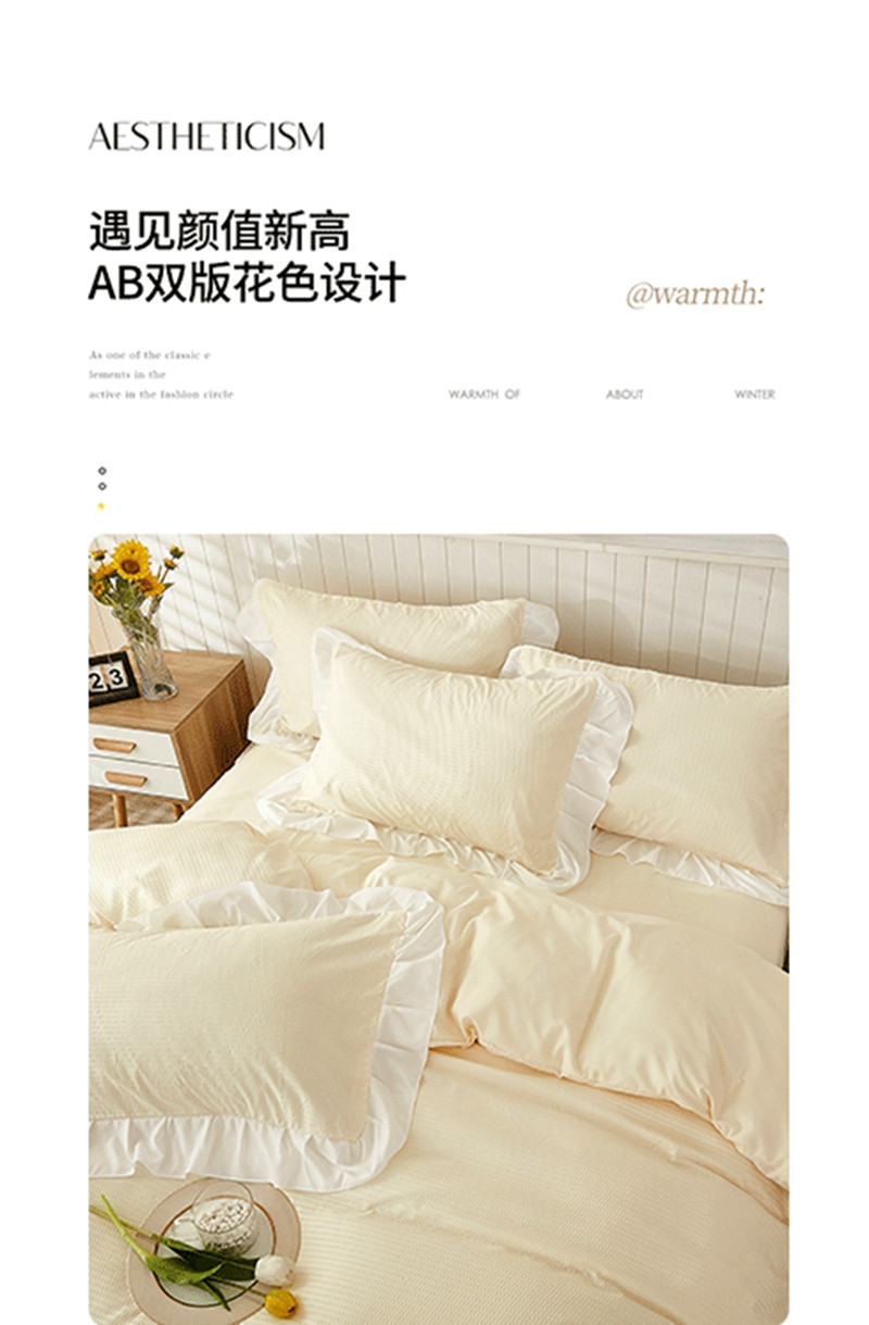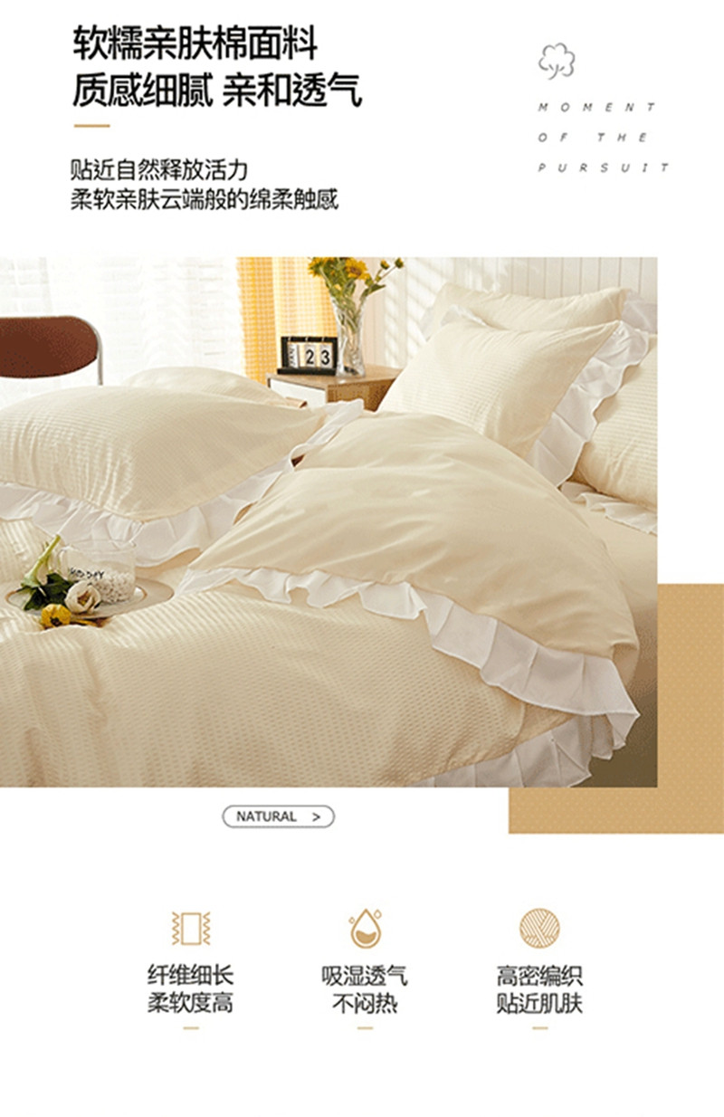 当前位置: 91家纺网 > 商品网购 > 床品套件 > 四件套 > 化纤活性四件套 > 啊雅家居 2025新款轻奢韩式花边华夫格四件套 梦幻黄