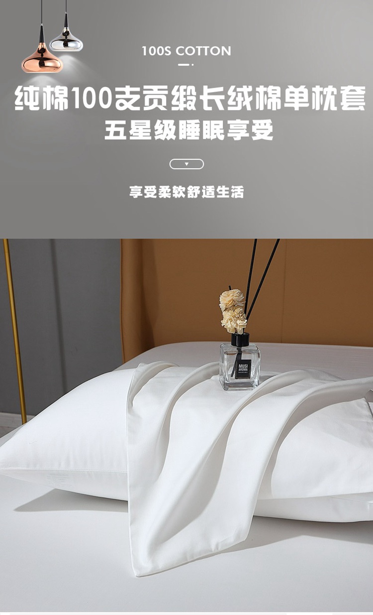 商品名称:晶缦2022新纯棉50支双股贡缎长绒棉纯色单枕套-纯沐-绅士白