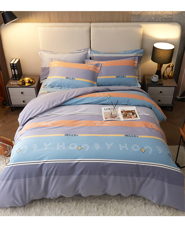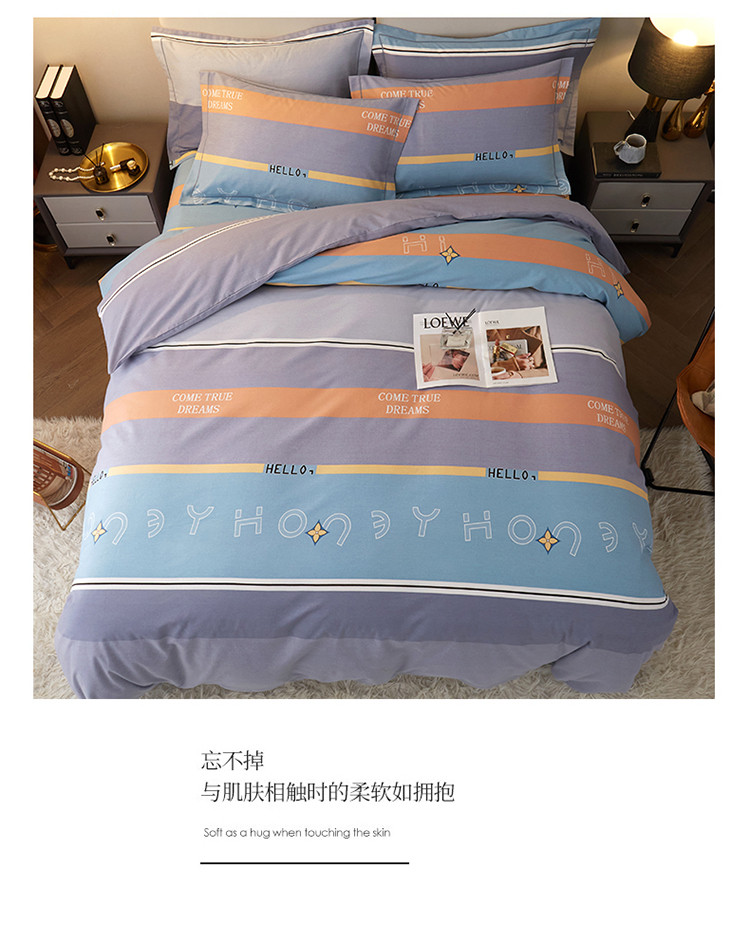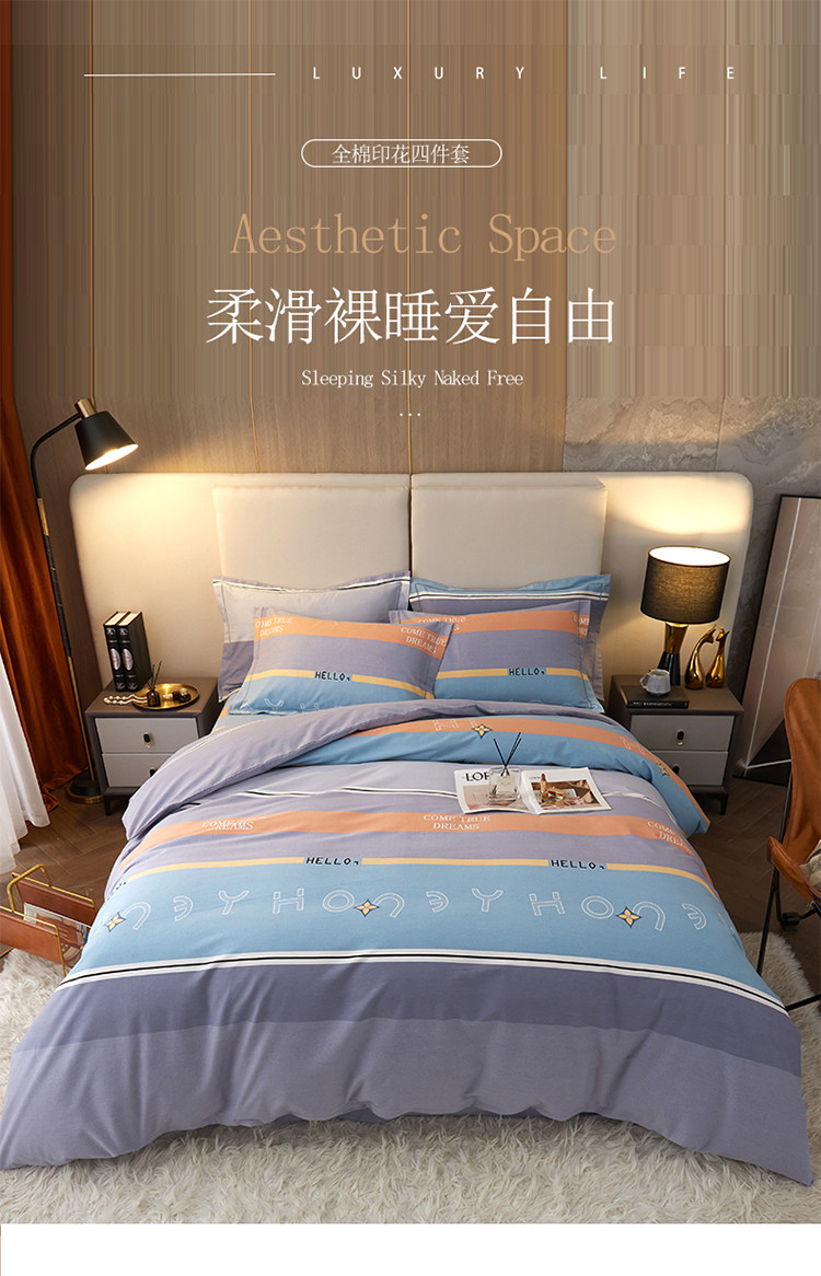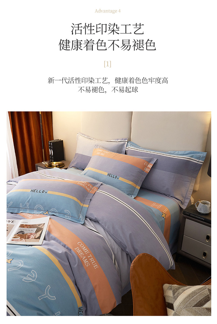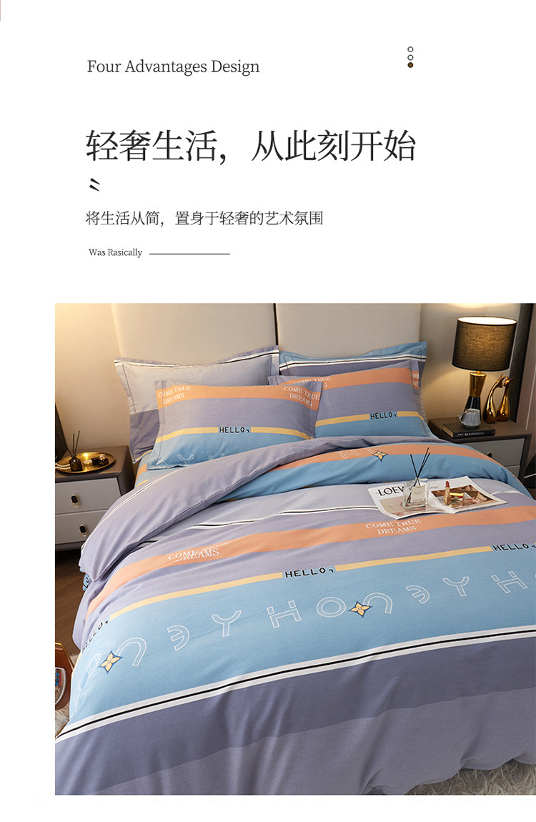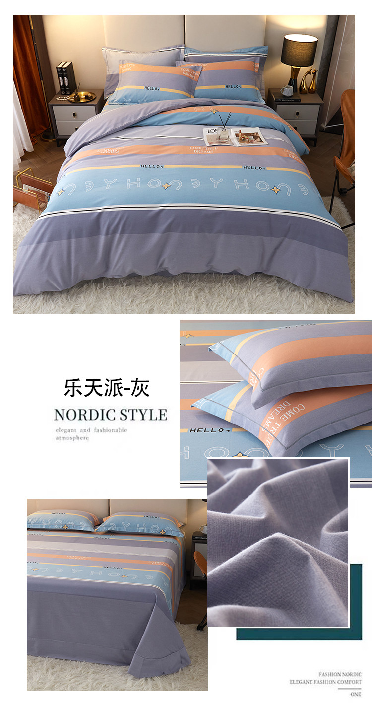 商品名称:金纱玉纺 2022新款全棉印花加厚磨毛四件套 乐天派-灰