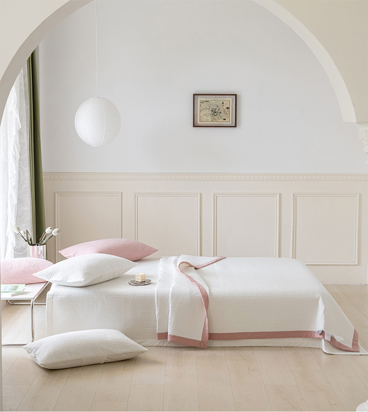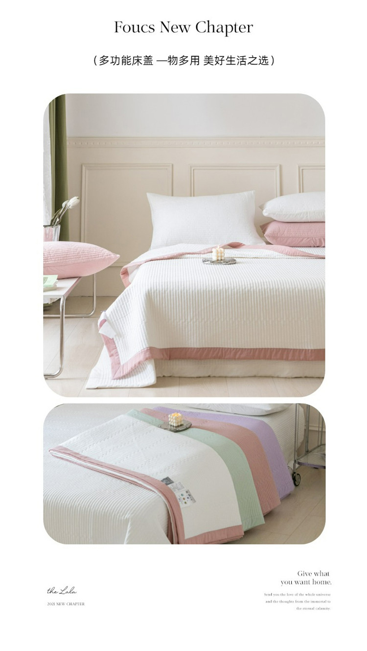 久典家居 2022新款A类双面色织全棉水洗棉床盖 白