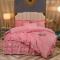 • 91家纺网 家纺一手货源 找家纺 青竹苑 水晶绒绗缝床裙绗缝被套款四件套牛奶绒加厚保暖被罩床罩 樱花粉