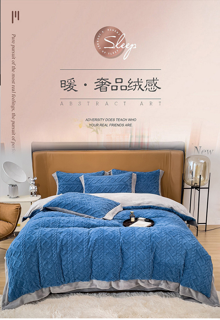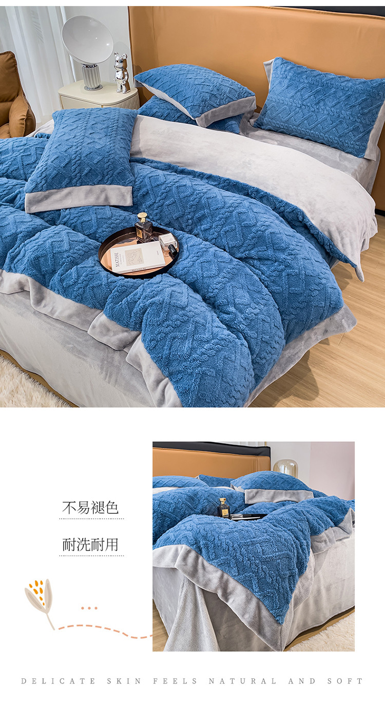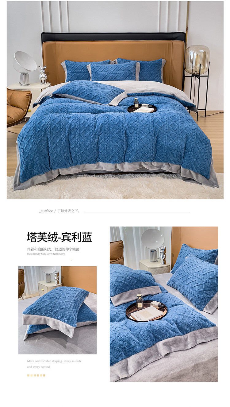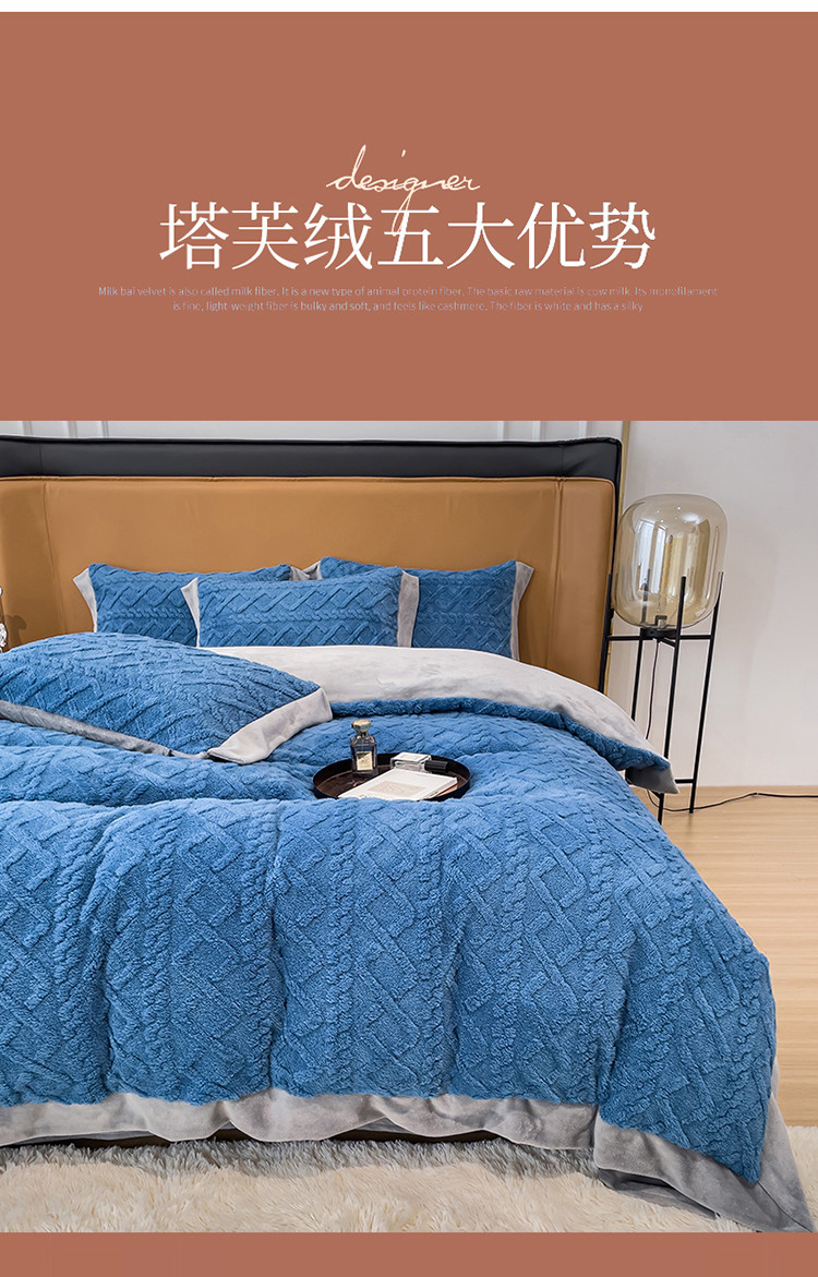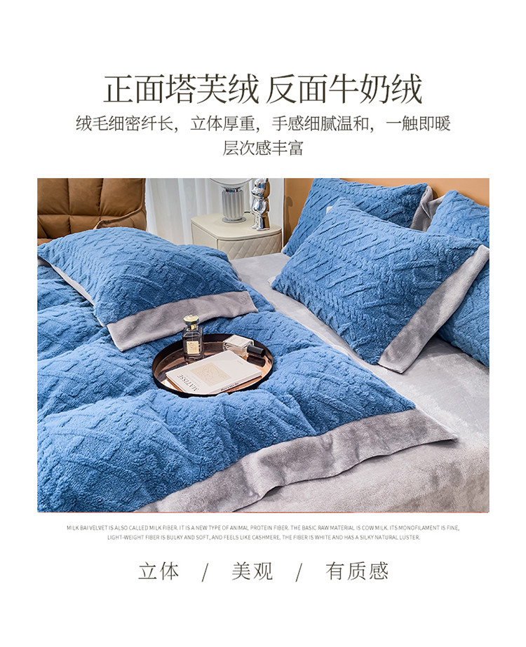 商品名称:2022冬季新款大拼角牛奶绒塔芙绒四件套 塔芙绒-宾利蓝