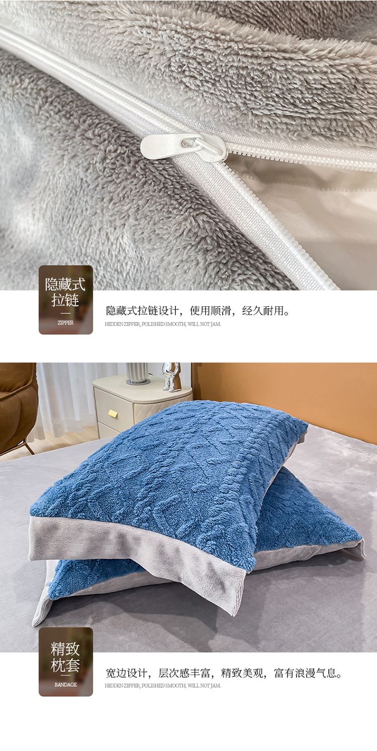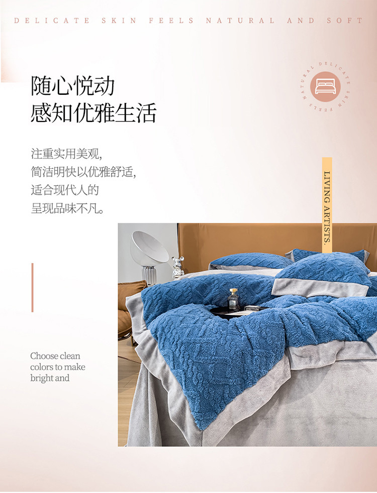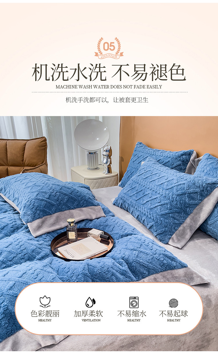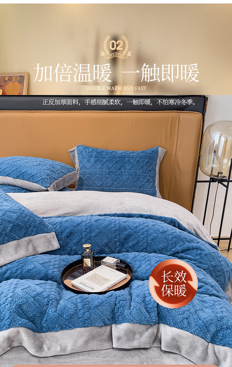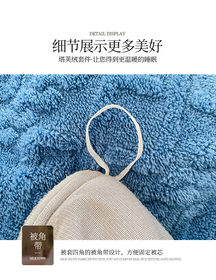 商品名称:2022冬季新款大拼角牛奶绒塔芙绒四件套 塔芙绒-宾利蓝