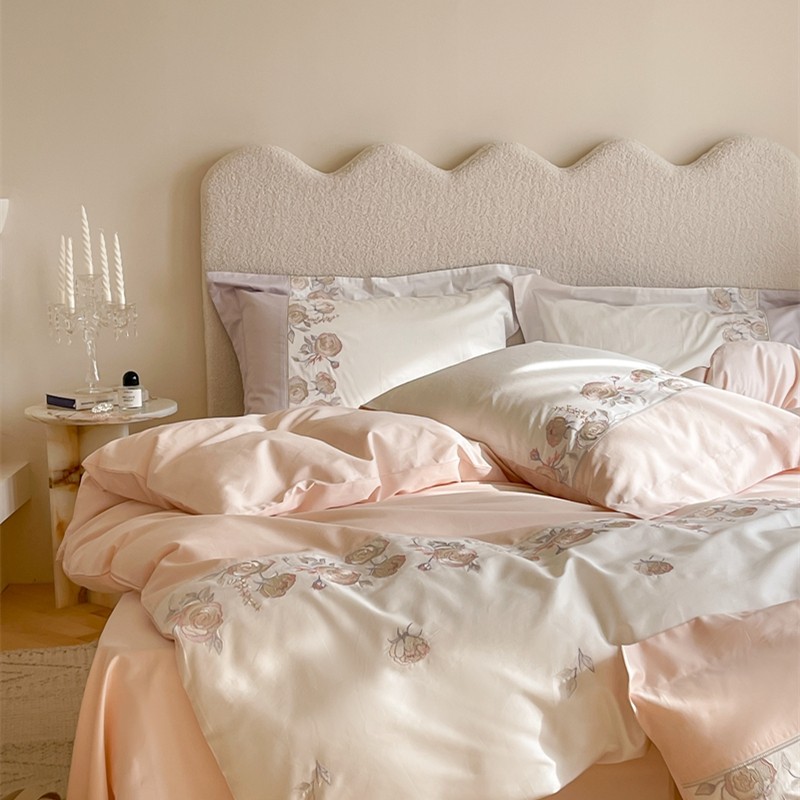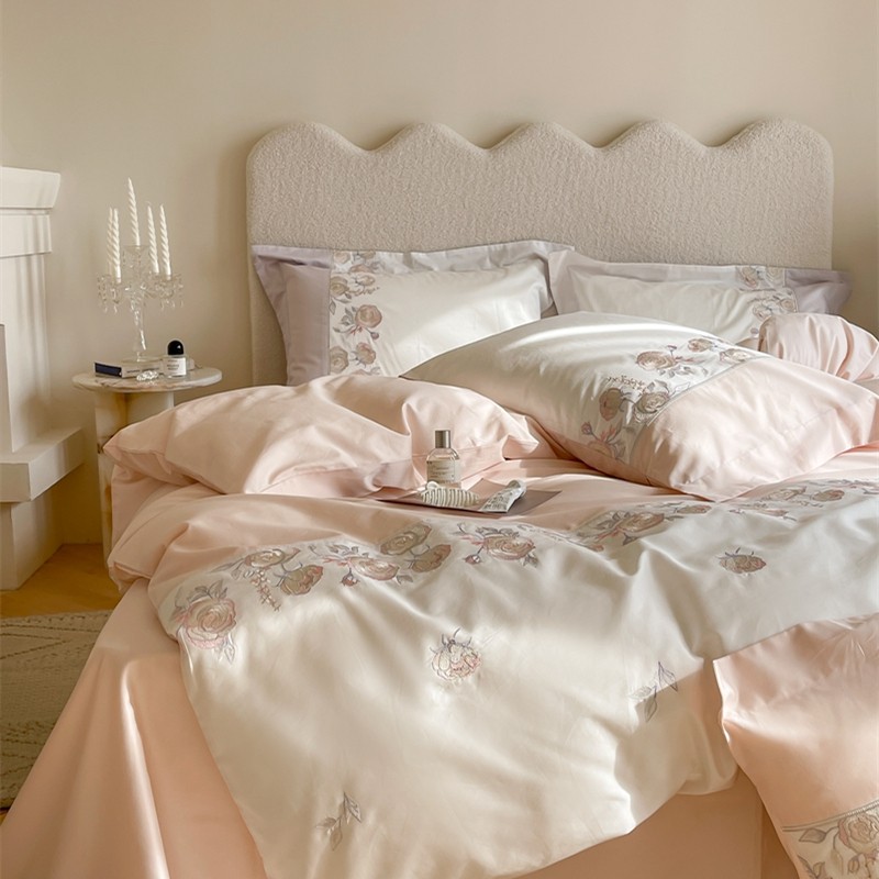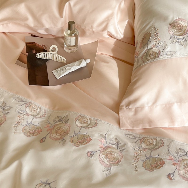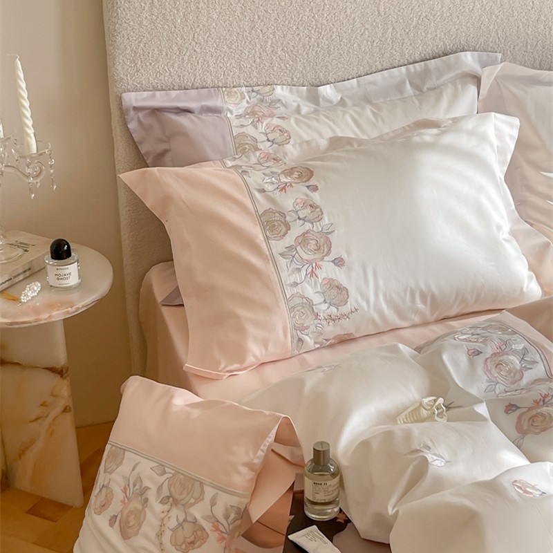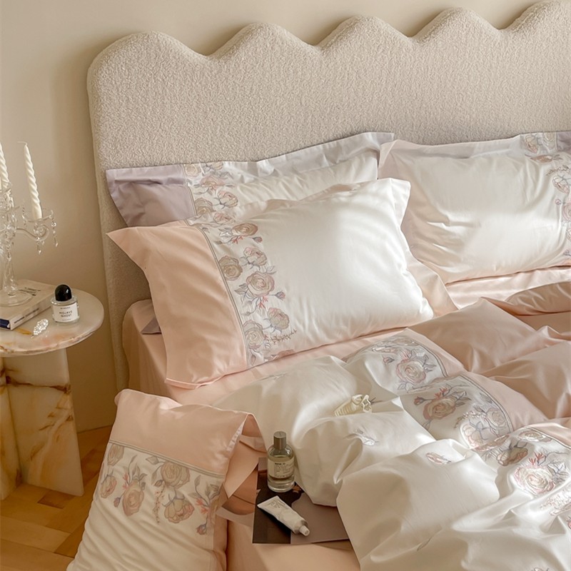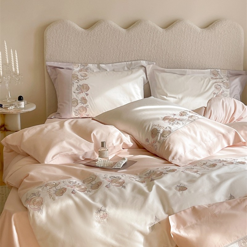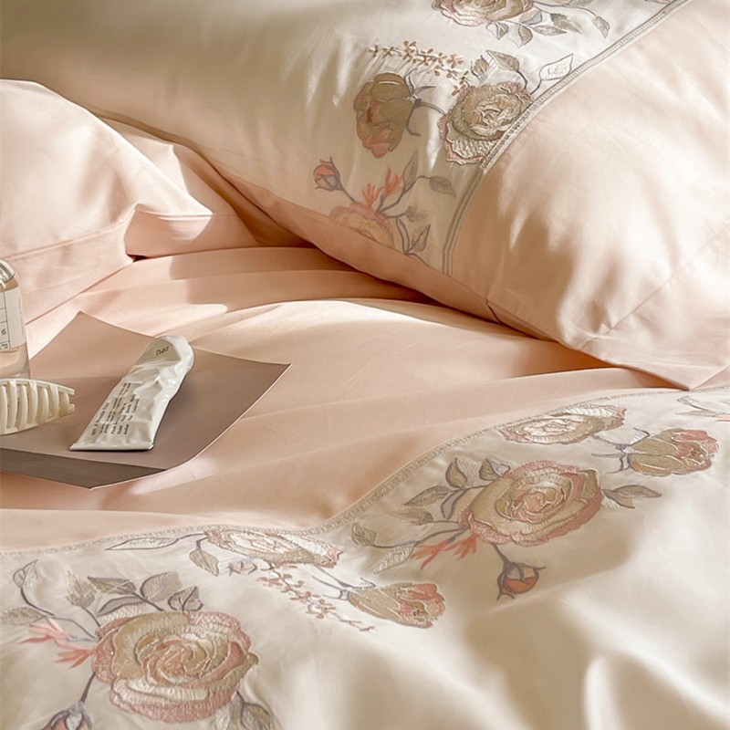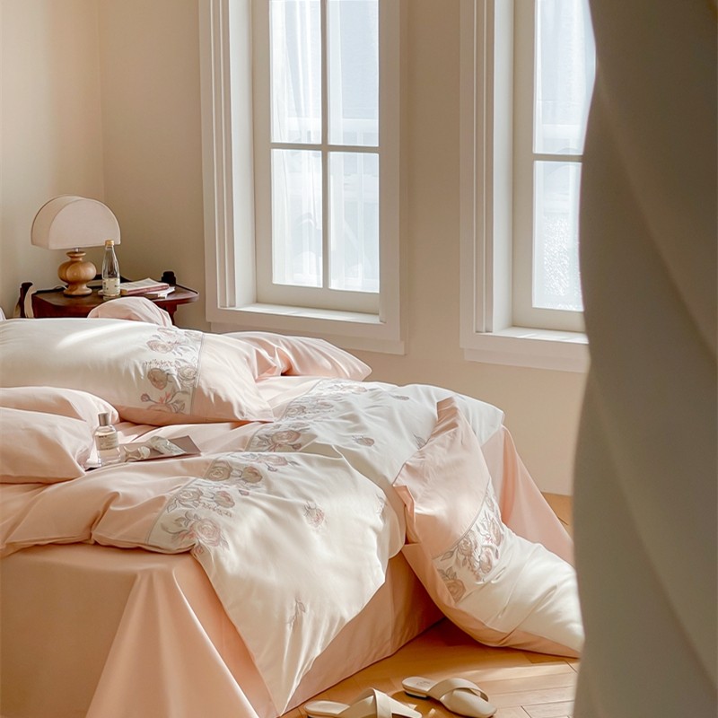 (总)鹿班 2024新款100支长绒棉精致刺绣四件套-情迷莫斯科 标准会员-20,情迷莫斯科-粉色,情迷莫斯科-黄柚色