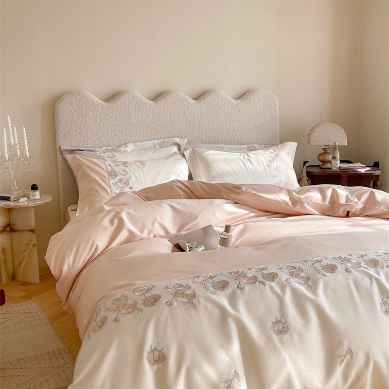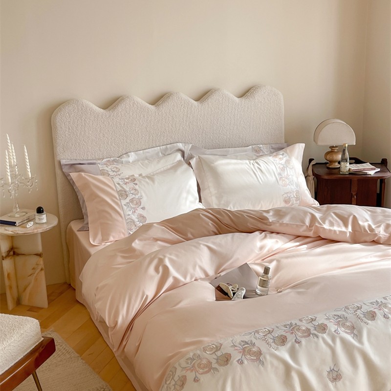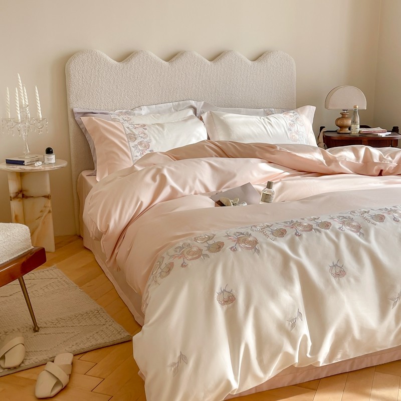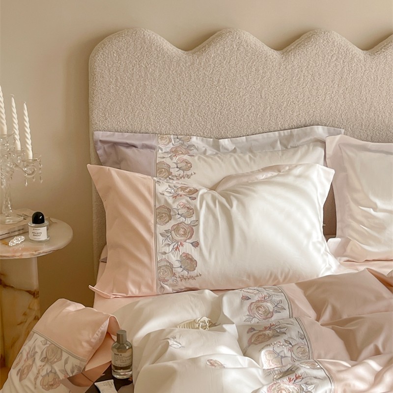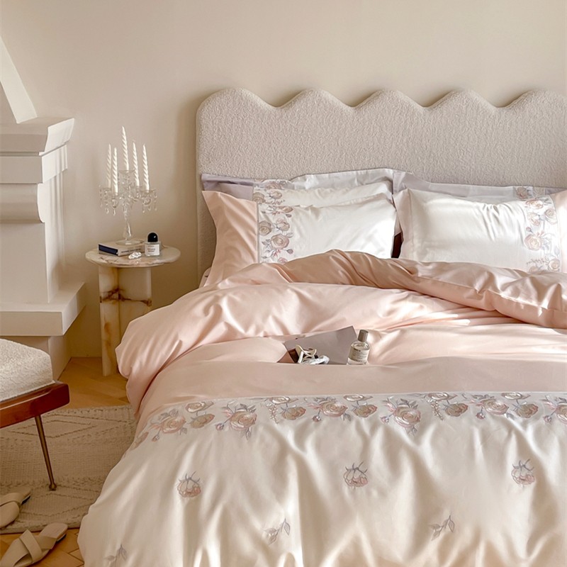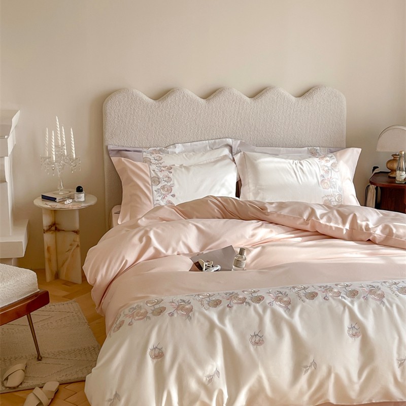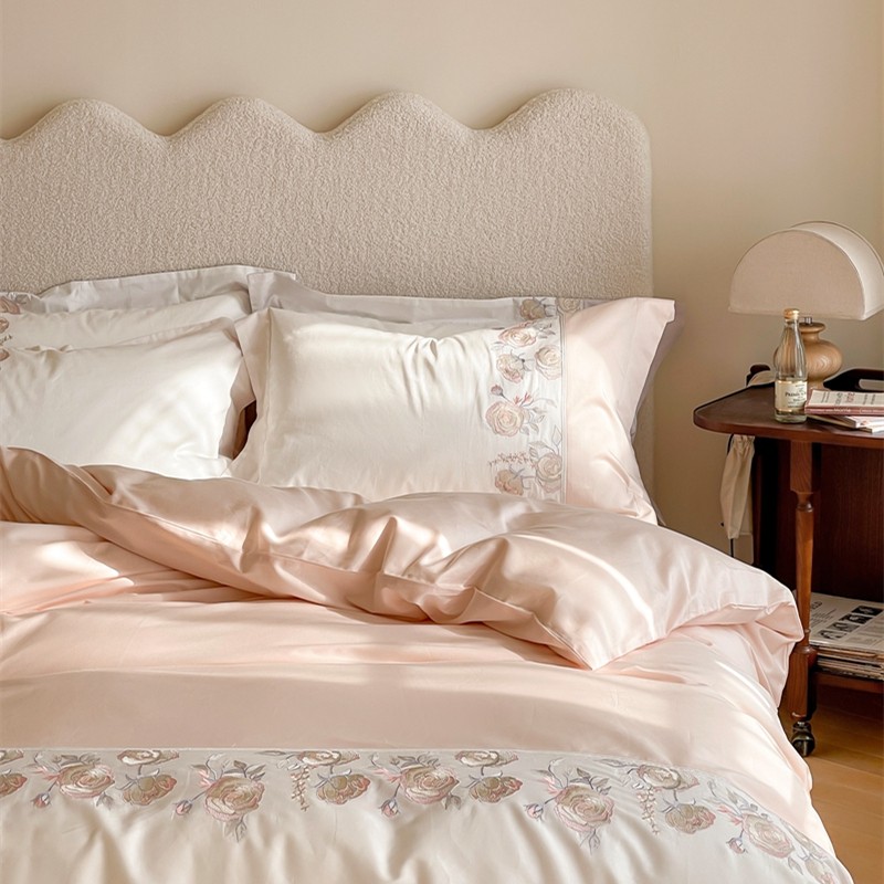 (总)鹿班 2024新款100支长绒棉精致刺绣四件套-情迷莫斯科 标准会员-20,情迷莫斯科-粉色,情迷莫斯科-黄柚色