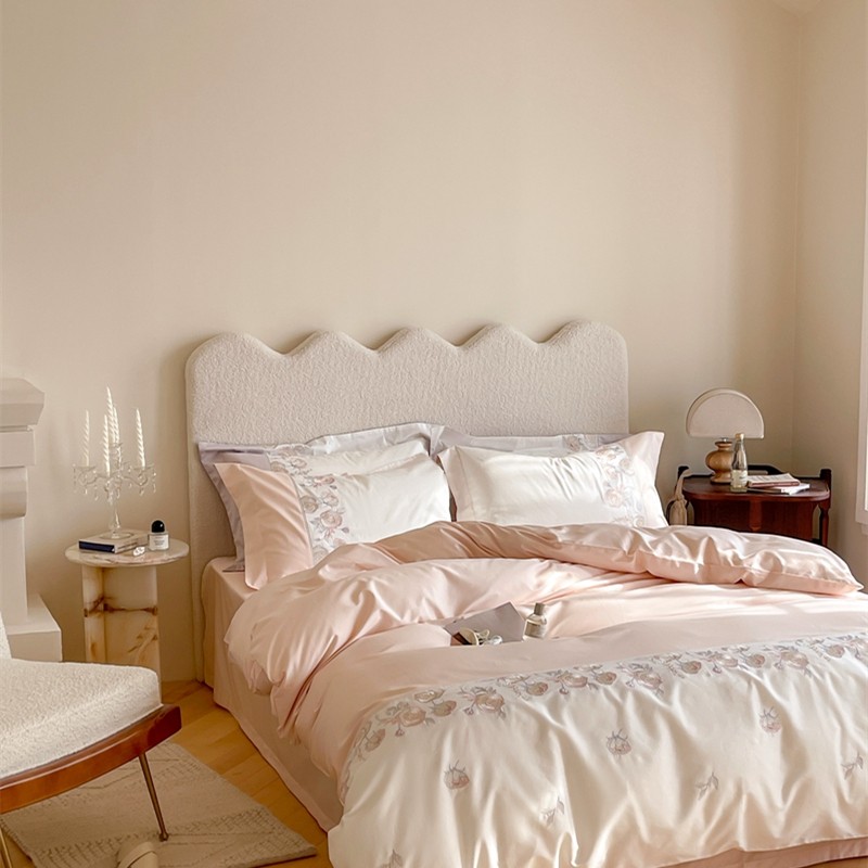 (总)鹿班2024新款100支长绒棉四件套提花系列-甜心 标准会员-20,甜心-粉
