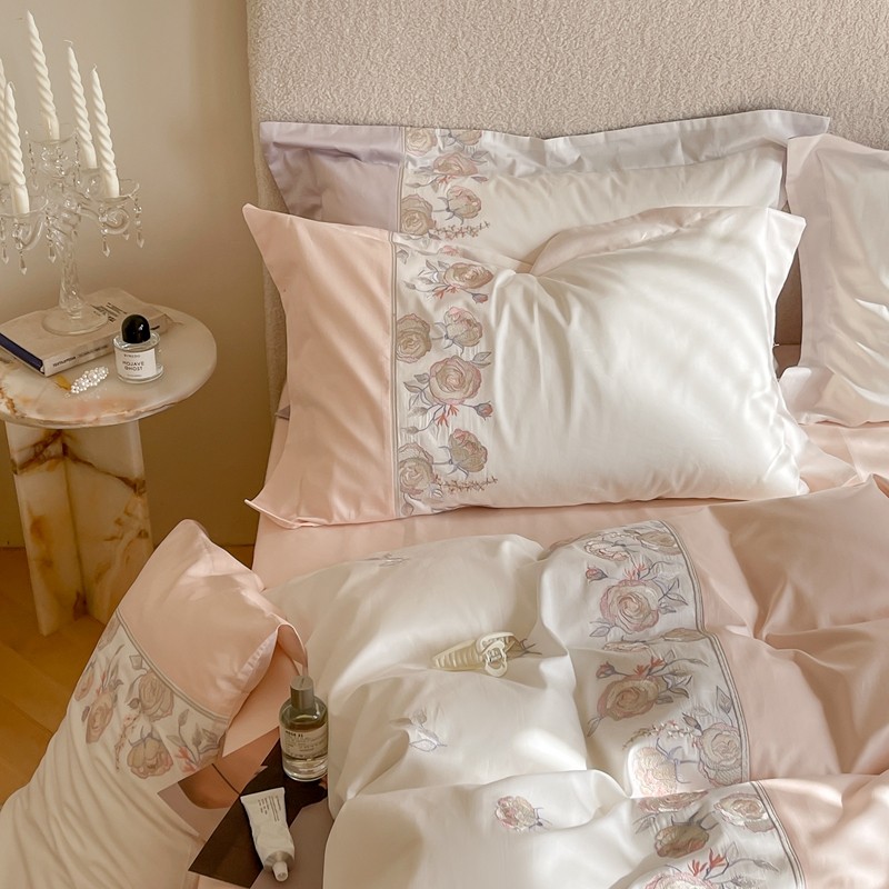 (总)鹿班家居 2026新款100S长绒棉纯棉精密刺绣系列四件套-花影摇曳(标准会员-20元),花影摇曳-粉色,花影摇曳-紫色