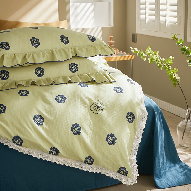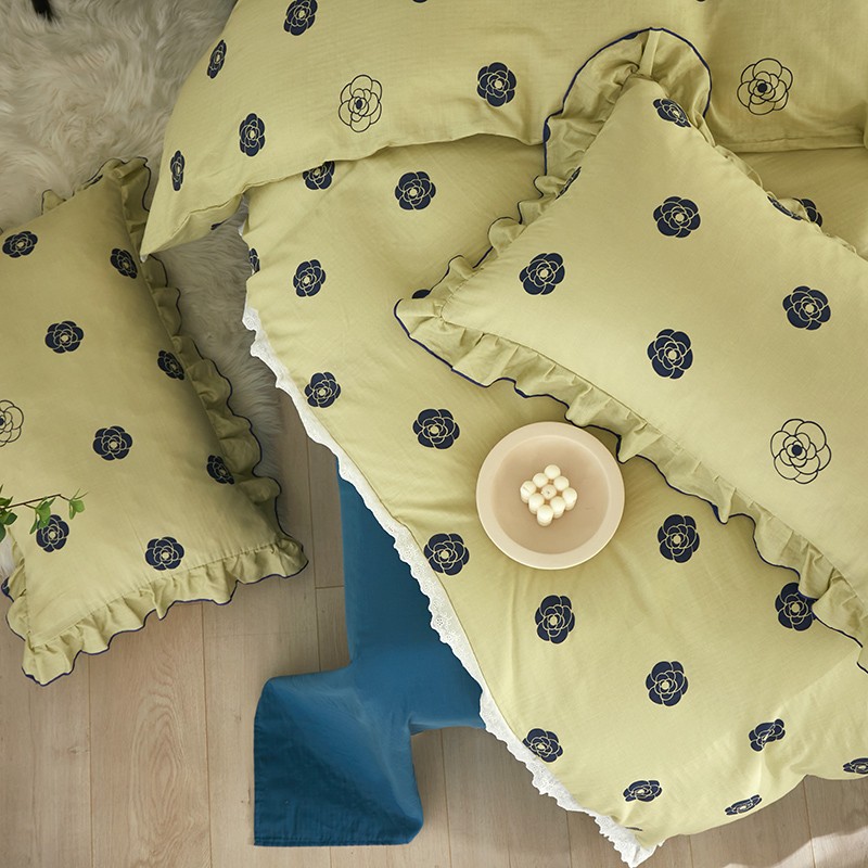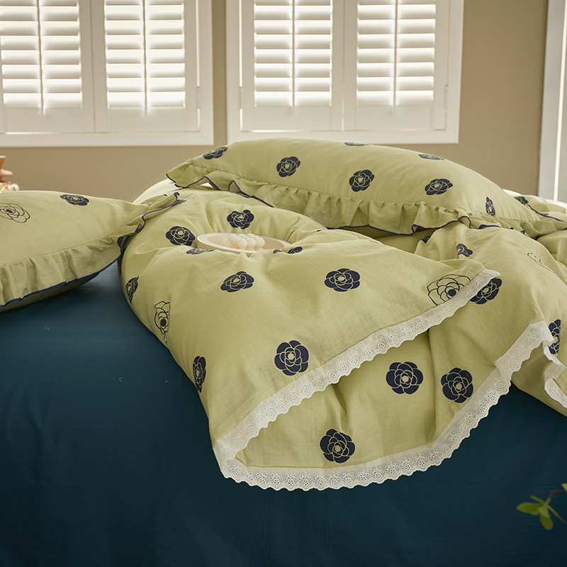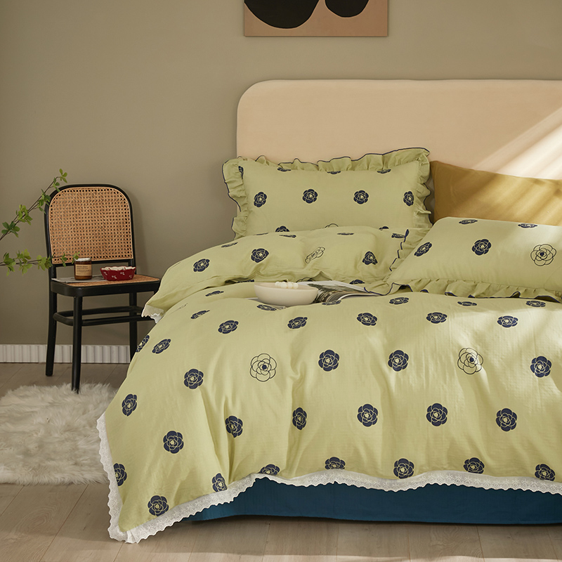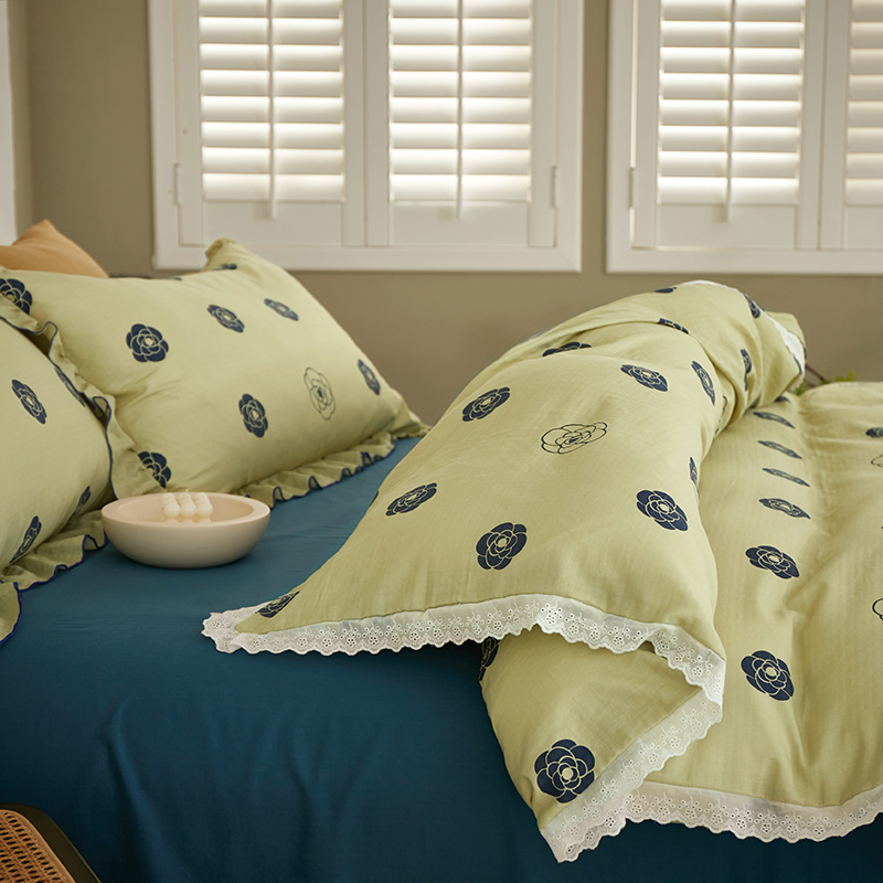 怡家居 2022新款全棉A类双层纱韩版四件套 山茶花