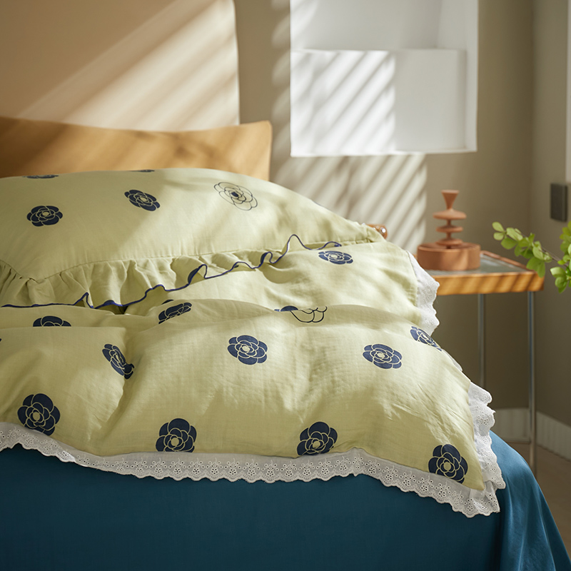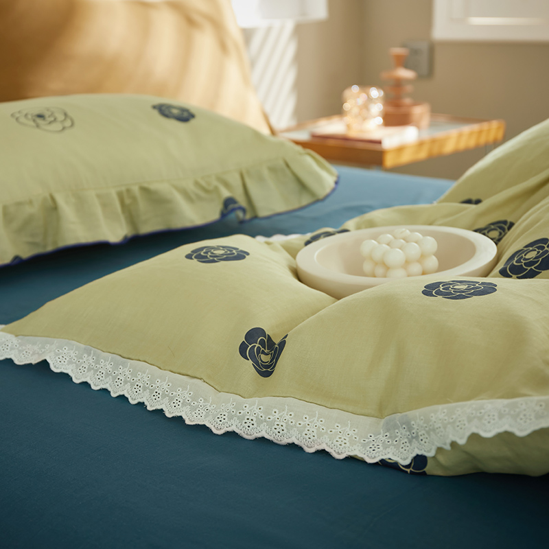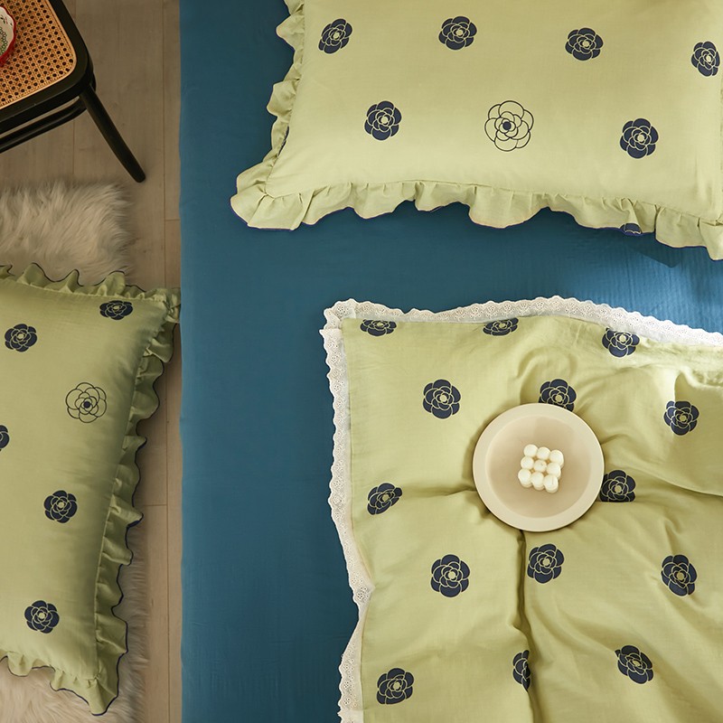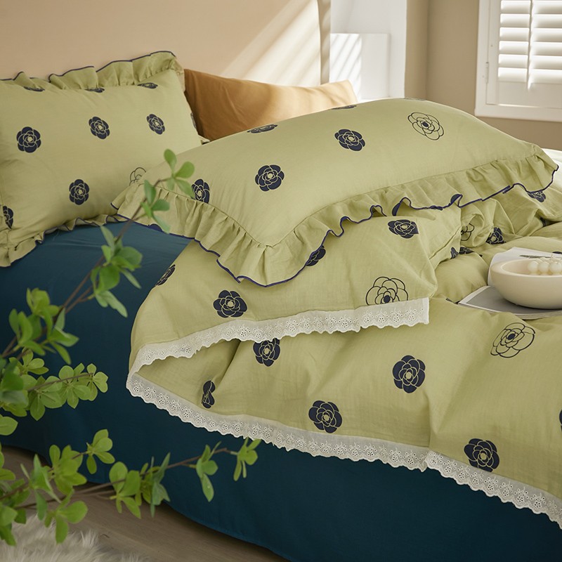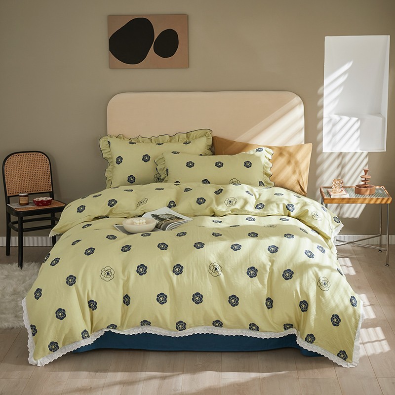 怡家居 2022新款全棉A类双层纱韩版四件套 山茶花