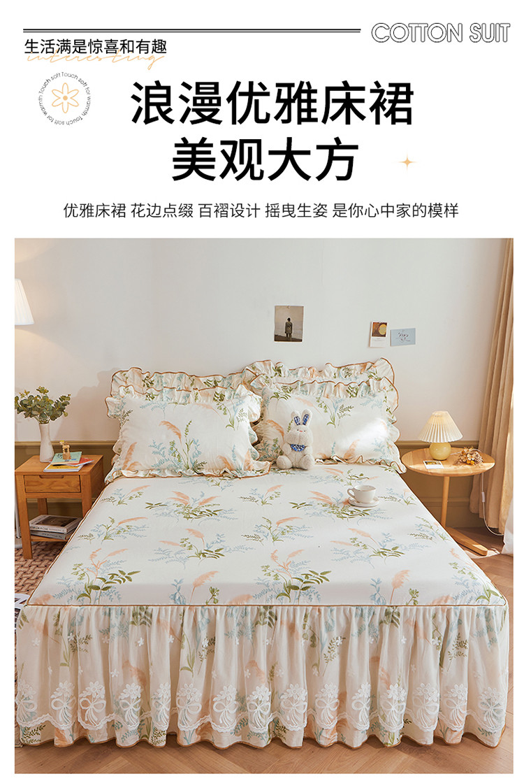 (总)宜凡家纺 2025新款全棉数码印花床裙三件套系列一,静若幽兰,浮云织梦,梦幻花园,陌上花开