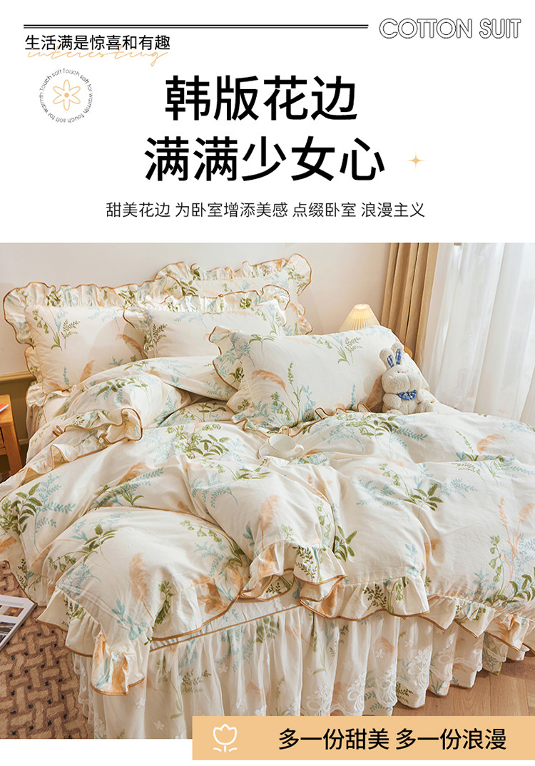 (总)宜凡家纺 2025新款全棉数码印花床裙四件套系列一,静若幽兰,浮云织梦,梦幻花园,陌上花开