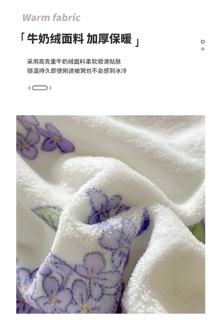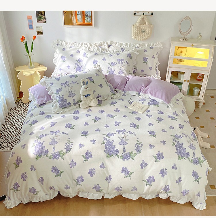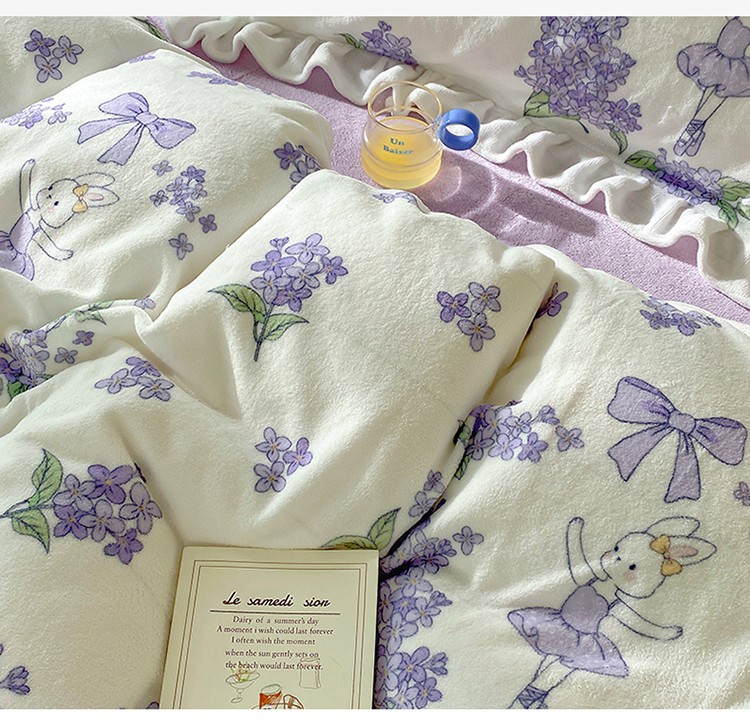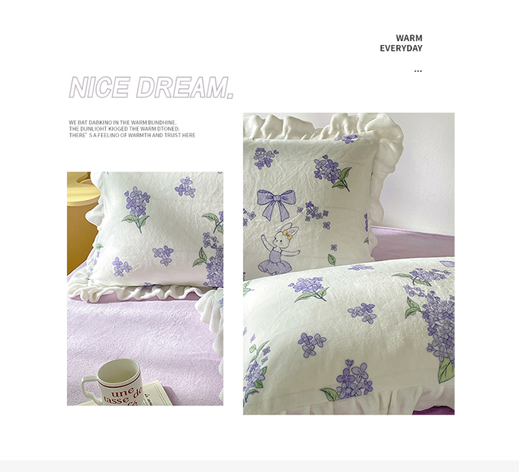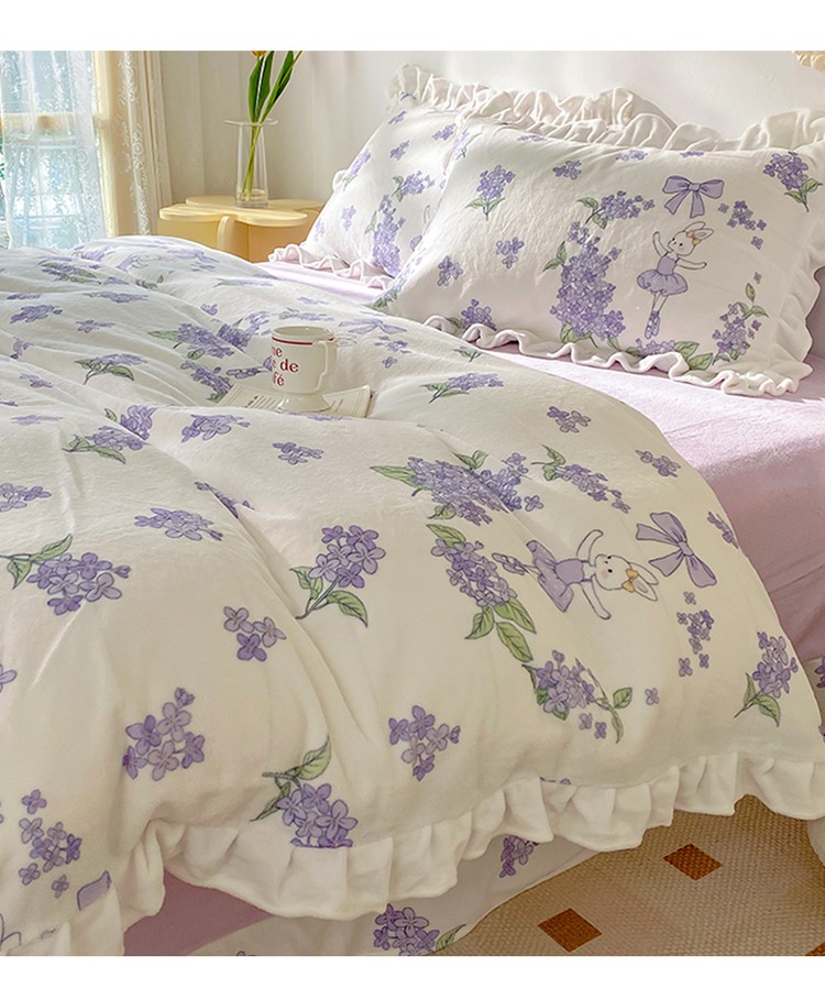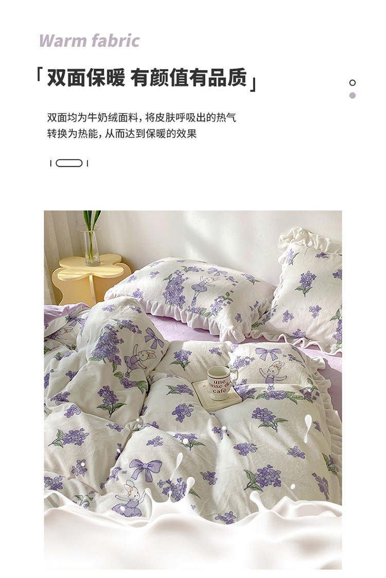 呗旺鹿2022新ykk拉链荷叶边印花牛奶绒四件套法莱绒 安妮